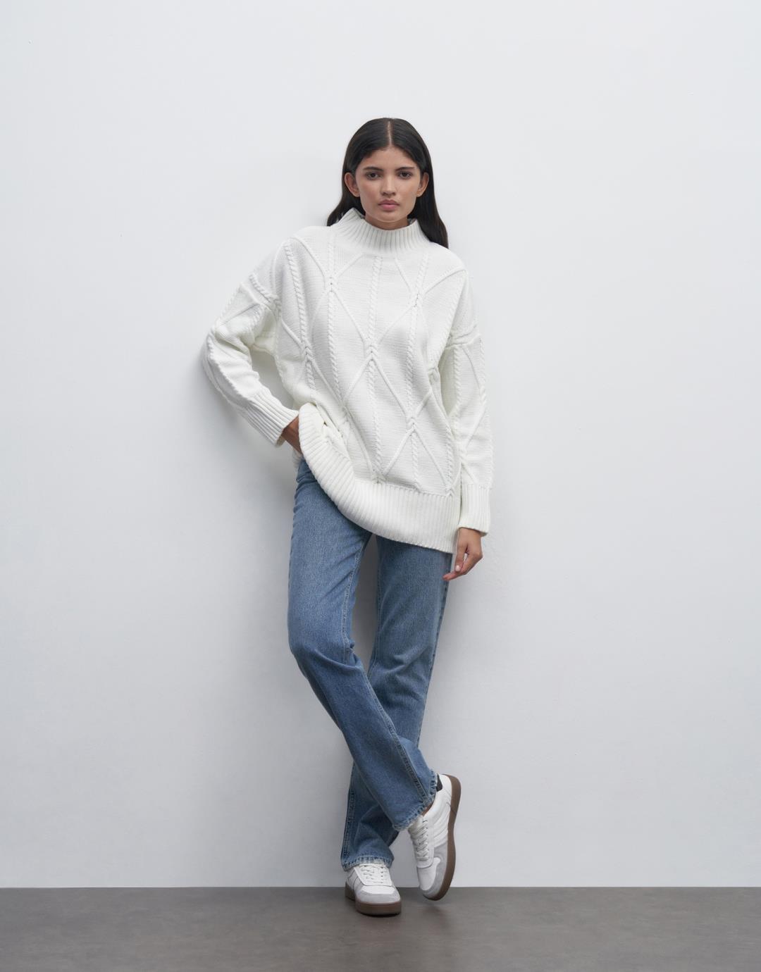 Fabric Content: 100% SOFT ACRYLIC Product Details: High collar. Long sleeve. Hair braided. Model Size: S/M Model Height: 1.74 The product on the mannequin is size S/M. Usage and Washing Instructions: – Dry clean. – Tumble drying is not done. – Bleach is not used. – Do not use with metal accessories. – It is a sensitive product.