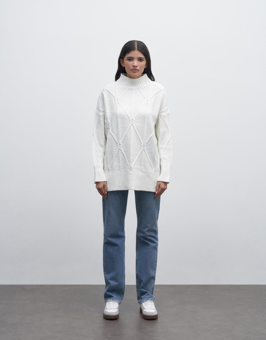 Fabric Content: 100% SOFT ACRYLIC Product Details: High collar. Long sleeve. Hair braided. Model Size: S/M Model Height: 1.74 The product on the mannequin is size S/M. Usage and Washing Instructions: – Dry clean. – Tumble drying is not done. – Bleach is not used. – Do not use with metal accessories. – It is a sensitive product.