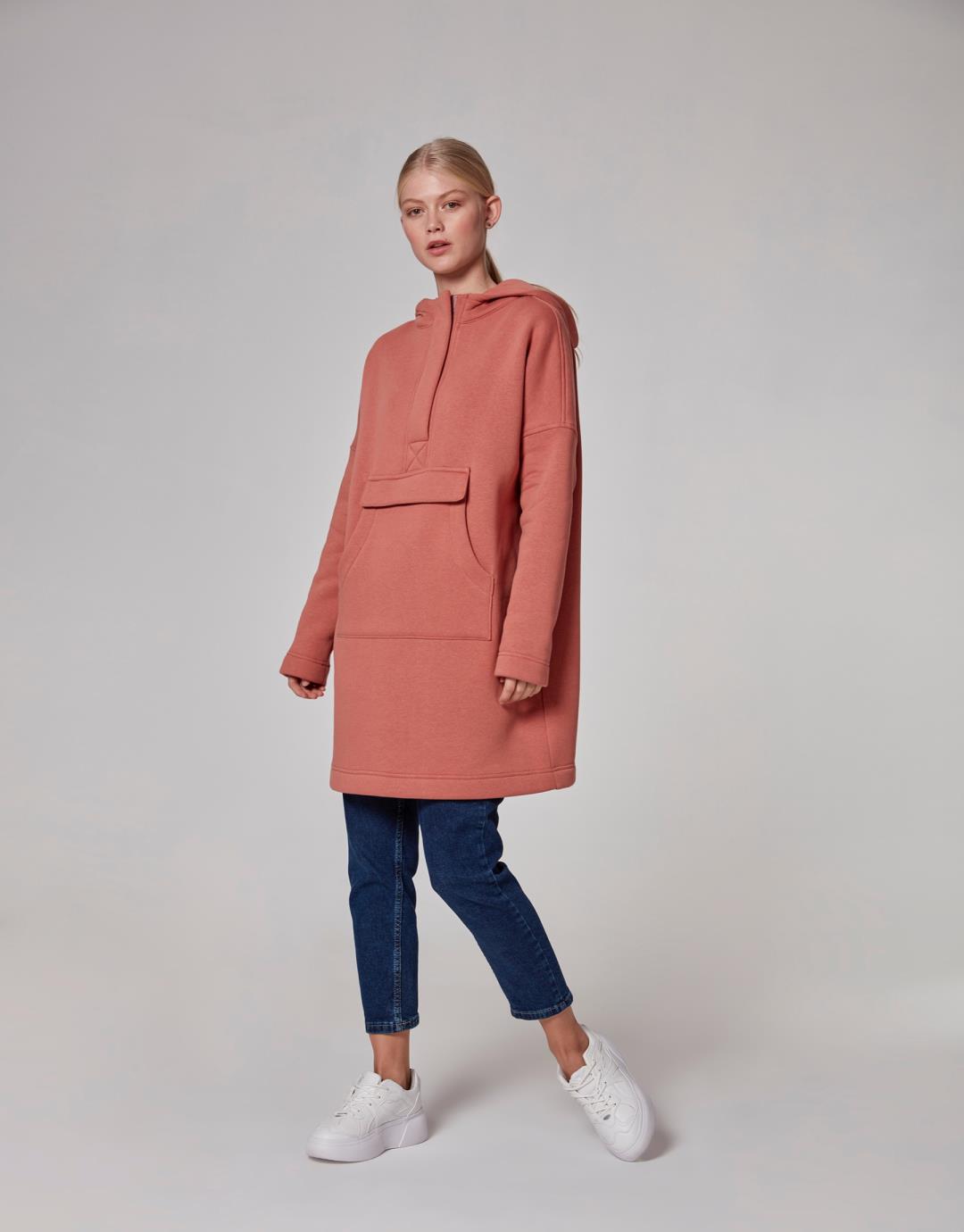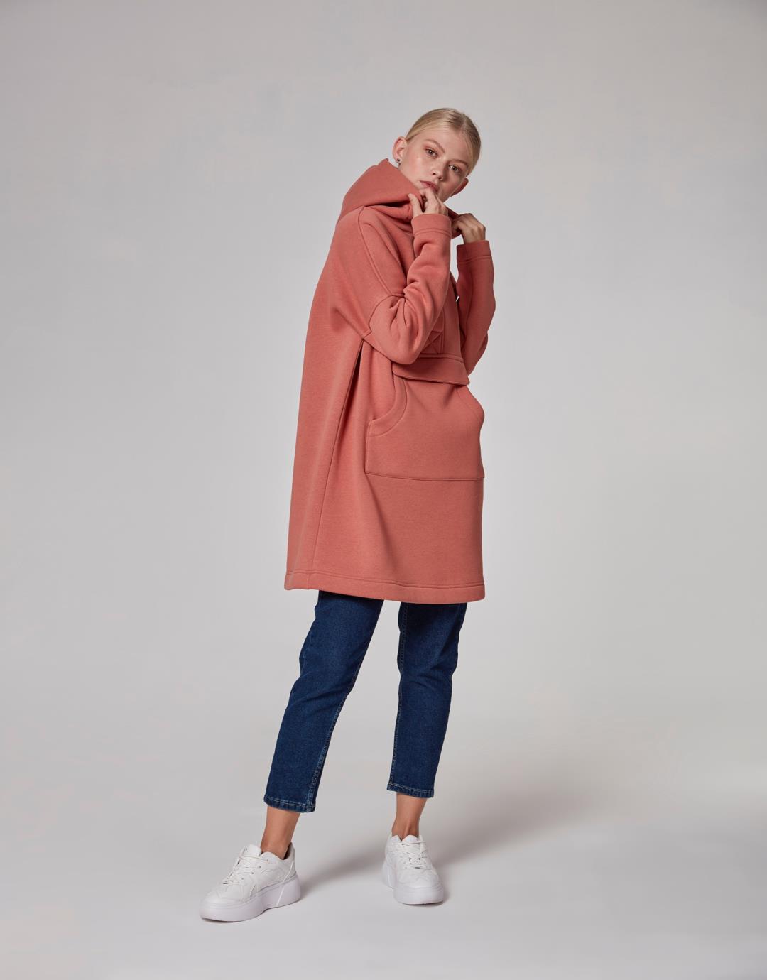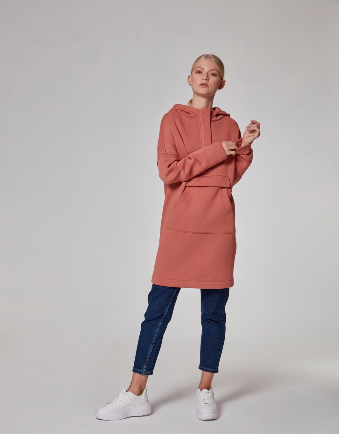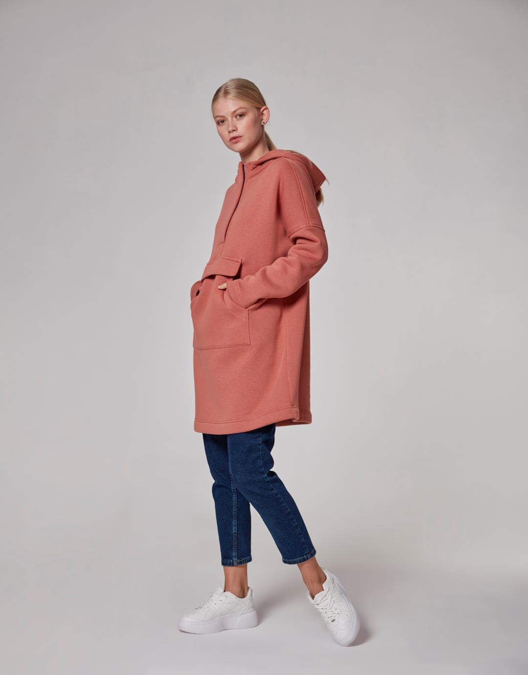 Hooded Kangaroo Pocket Raised Mia Sweat – Dusty Rose Color – 2528