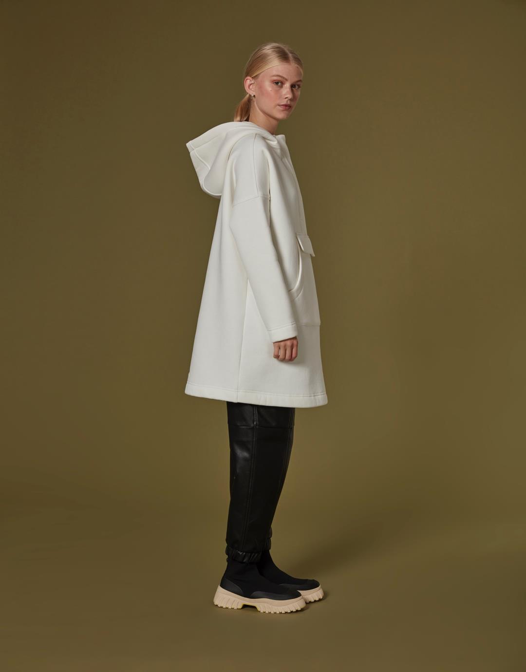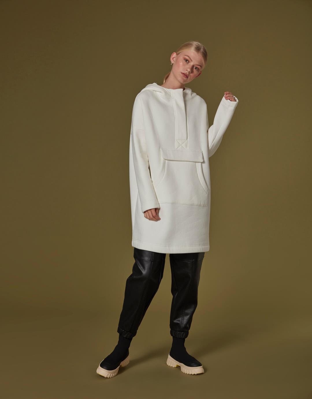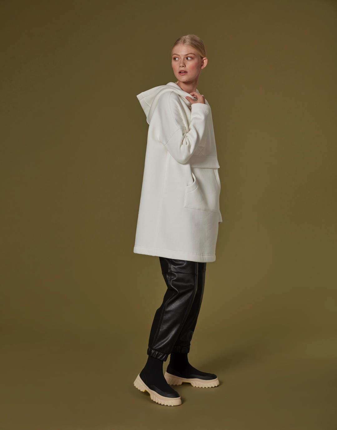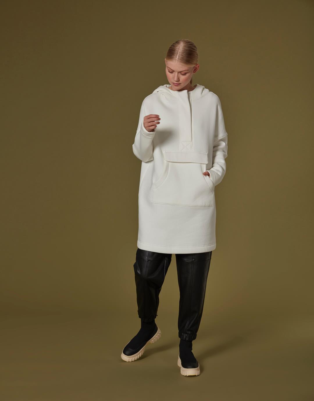 Hooded Kangaroo Pocket Raised Mia Sweat – Ecru – 2528