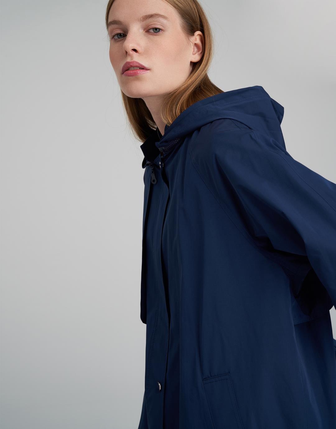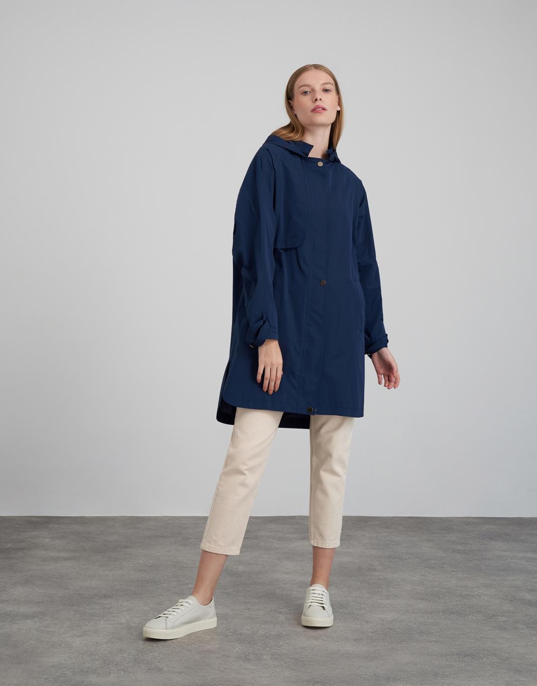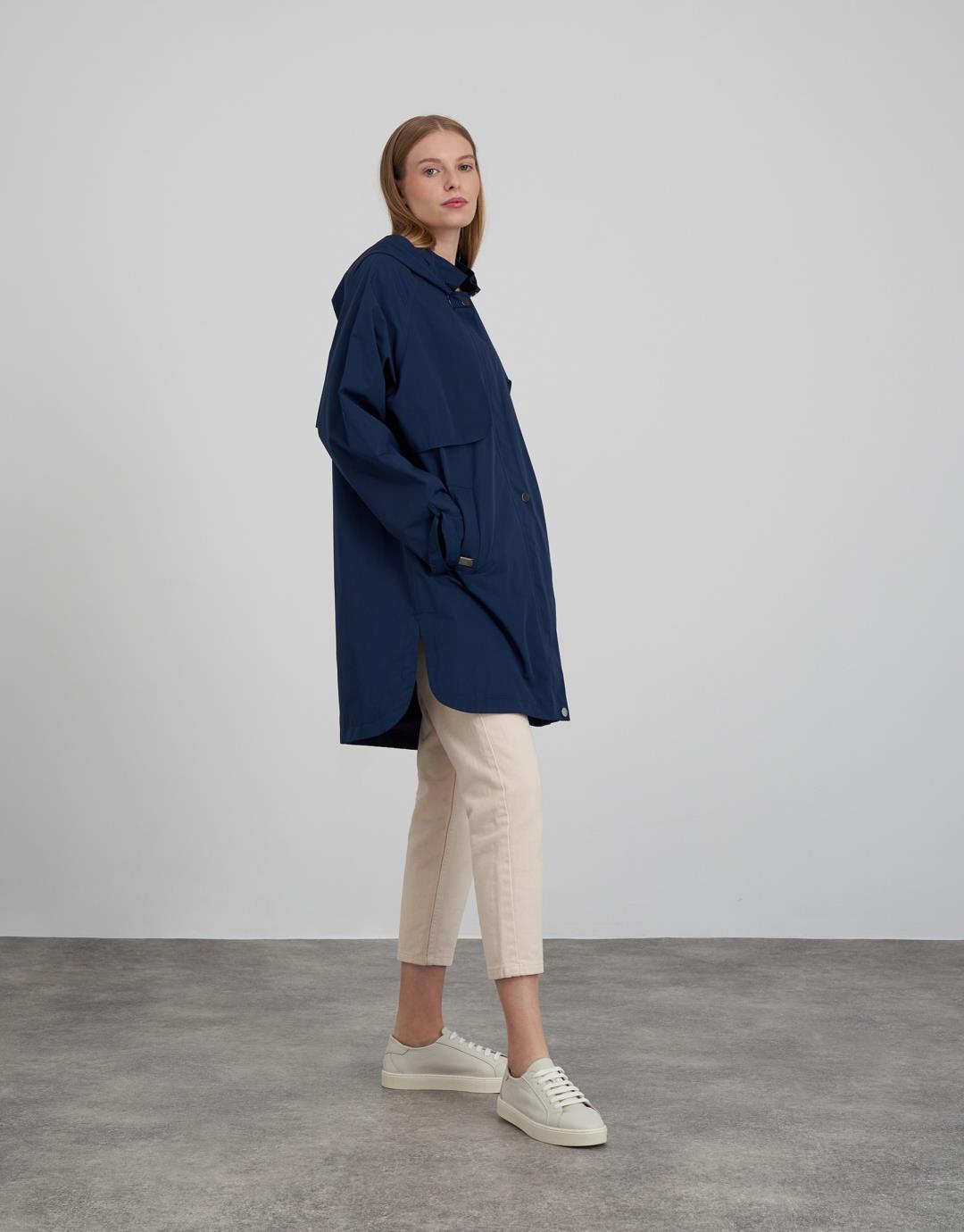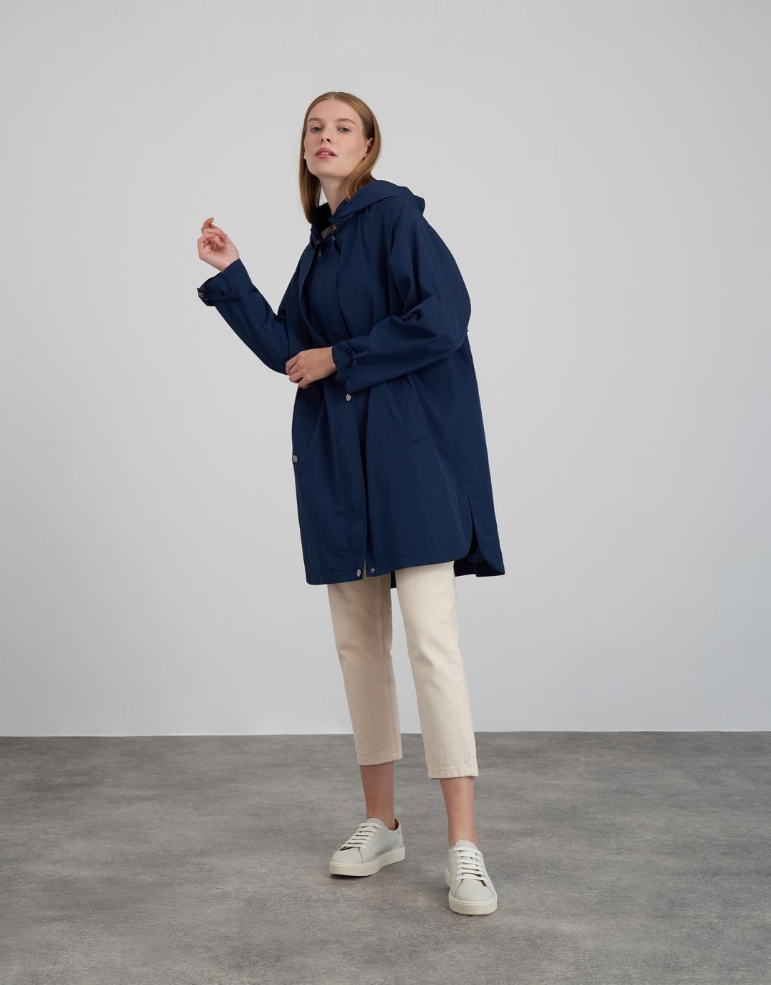 Fabric Content: 80% pes 20% cotton Fabric Info: Woven Pocket Info: 2 Pockets Lining Info: 100% pes Zipper Info: Front and hooded zipper Sleeve Detail: Long, belted Product Details: Front snap fastener, side slit Pattern Info: Normal Model Size: 36 Model Length: 1.78 The product on the Model is Size 1. Usage and Washing Instructions: Recommended Dry clean.