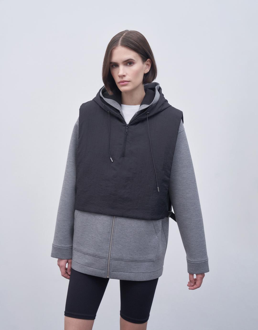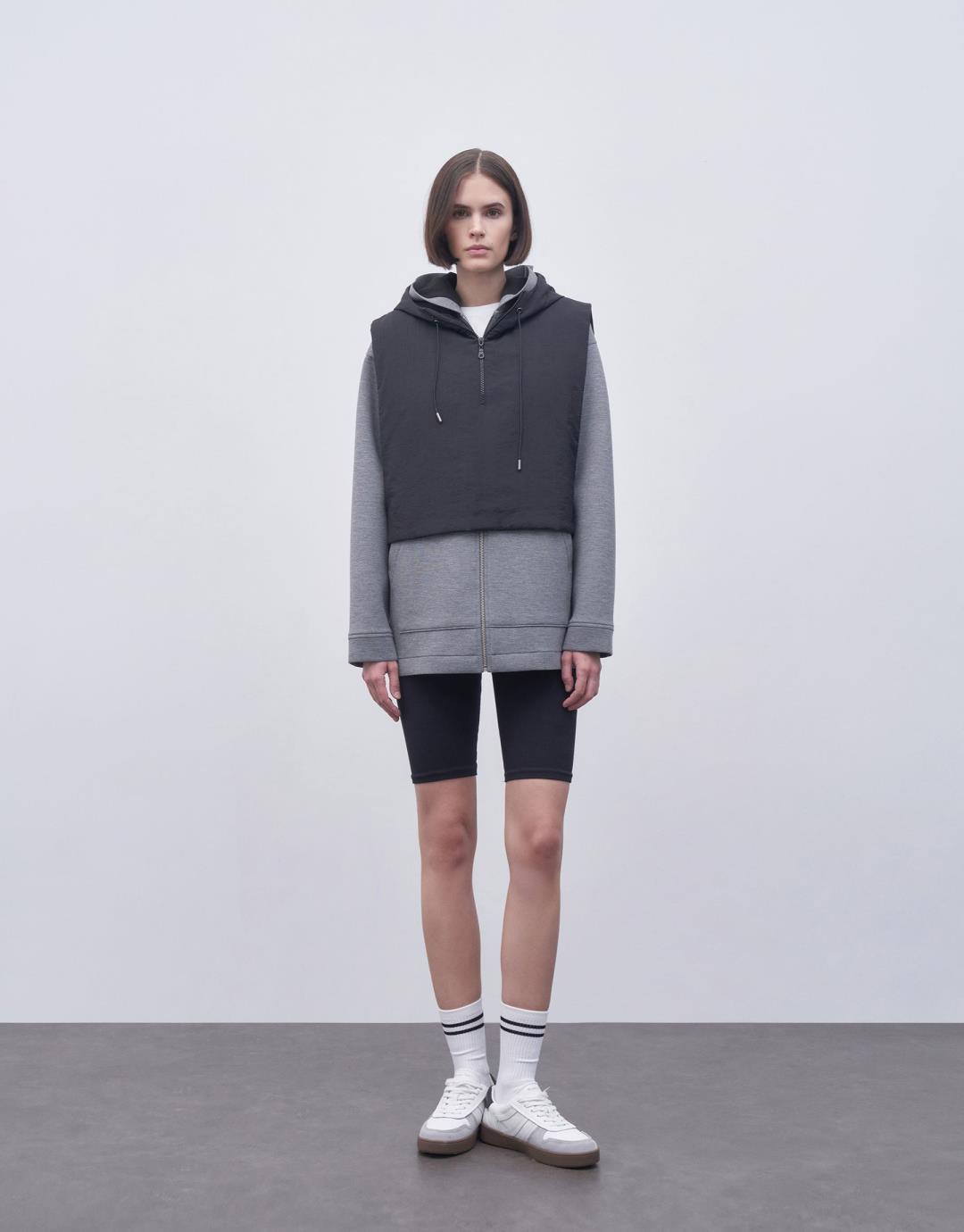 Fabric Content: 100%PES Product Details: Hoodie. Zipper closure at front. The side parts have buckle detail that can be opened and closed. Model Size: 36 Model Height: 1.74 The product on the mannequin is Standard Size. Usage and Washing Instructions: Hand wash at maximum 30ºC. Bleach bleach is not used. Iron at 110ºc. Tetrachlorethylene Dry Cleaning. Dryer is not used.