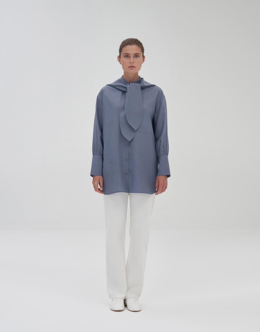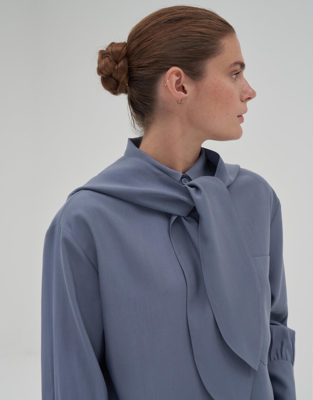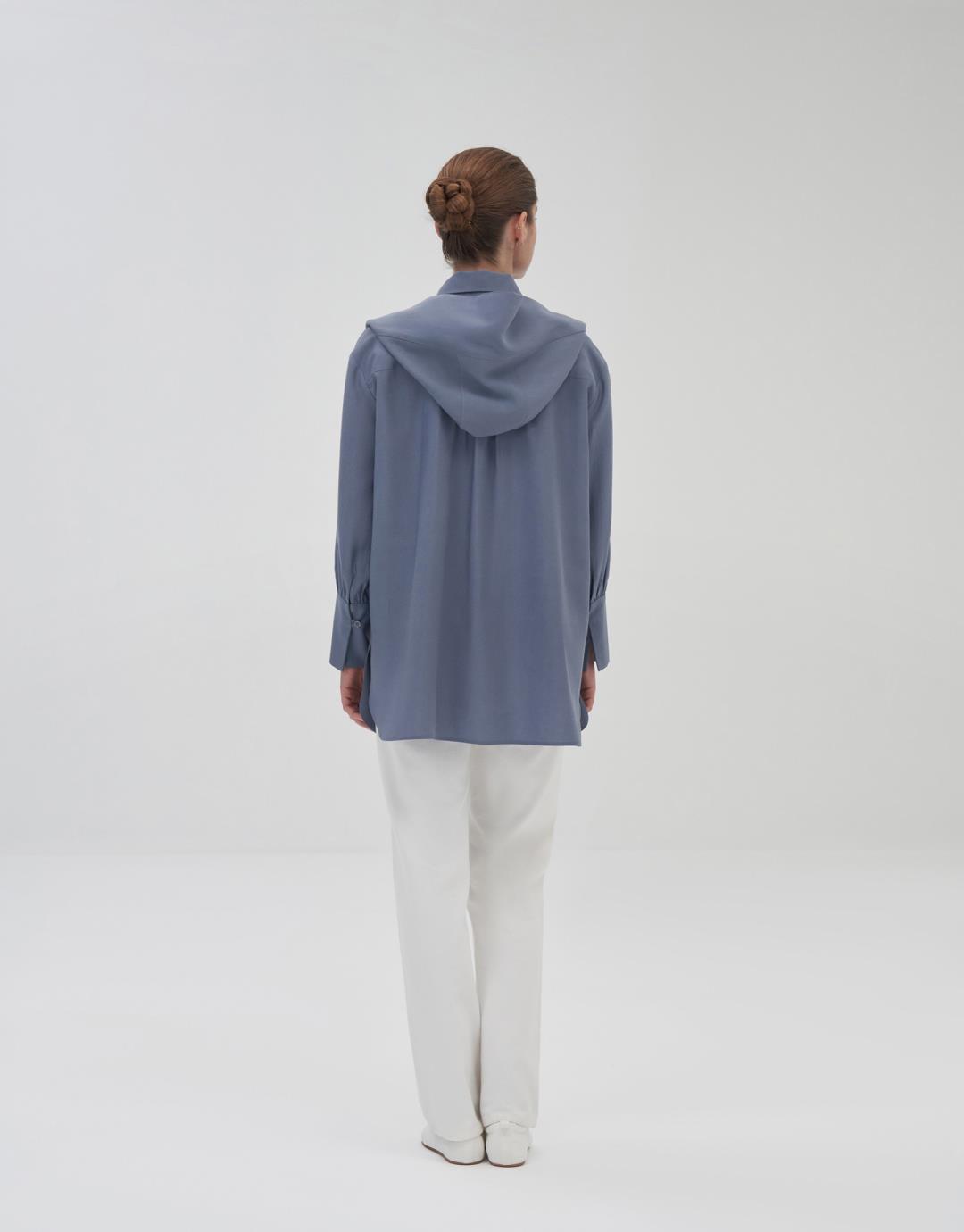 Fabric Content: 86% TENCEL 14% PES Product Details : Shirt collar. Button closure at front. Wide cuff. Sleeve detail with smocking detail. Hoodie and scarf detail. The hem side seams are oval cut. Model Size: 36 Model Height: 1.78 The product on the mannequin is size S/M. Usage and Washing Instructions: Tetrachlorethylene Dry Cleaning. Roller cleaning is not possible. Tumble drying is not done. Bleach bleach is not used.
