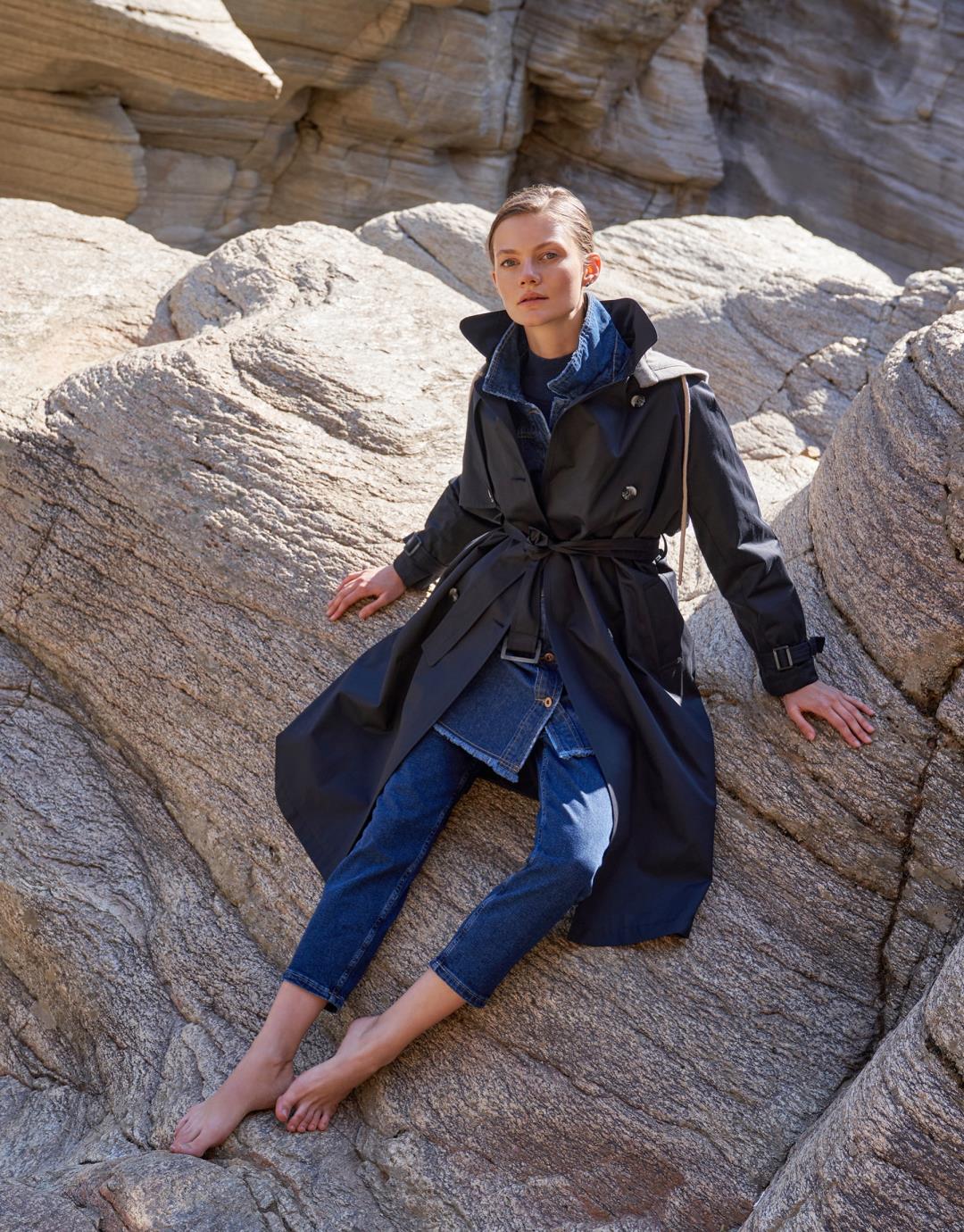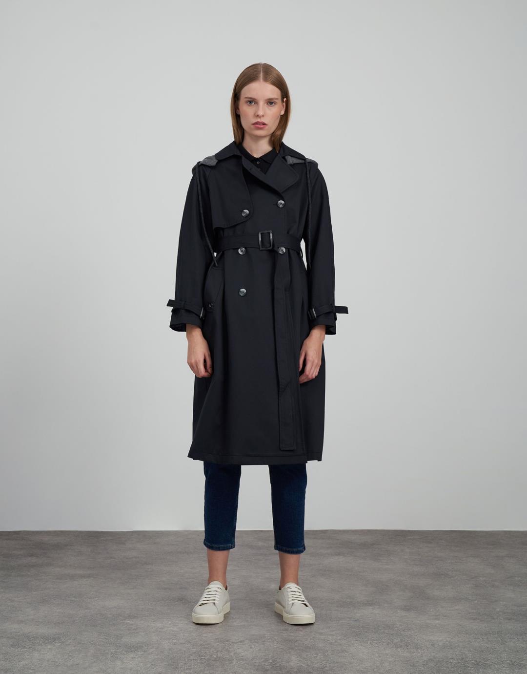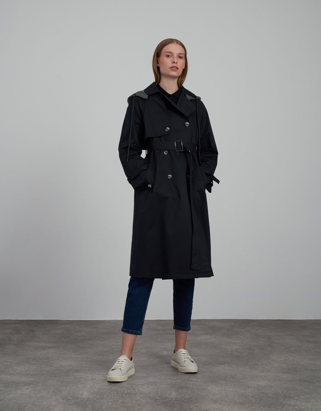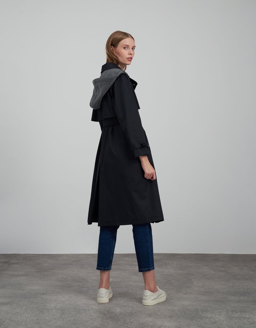 Fabric Content: 55% cotton 45% pes Fabric Information: Woven Pocket Info : 2 pockets. Sleeve Detail: There are belts at the end of the arm. Product Details: It has a slit on the back, buttons on the front and a detachable hood. Mould Details: Regular Model Size : 36 Model Height : 1.78 The product on the Model is std size. Usage and Washing Instructions: Recommended Dry cleaning.