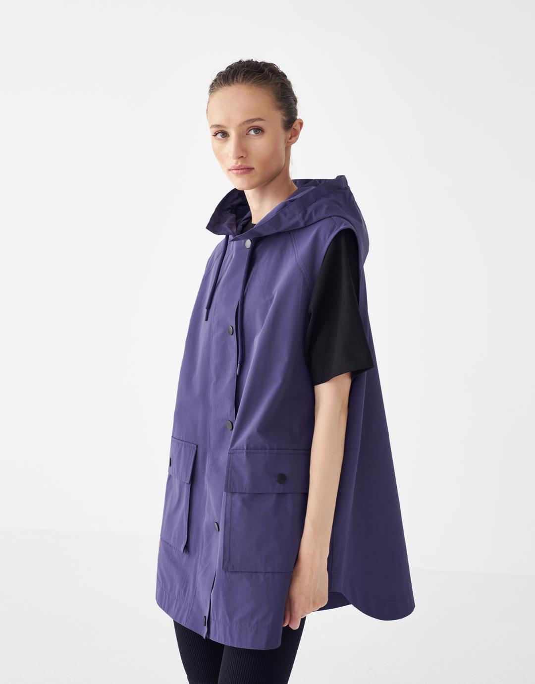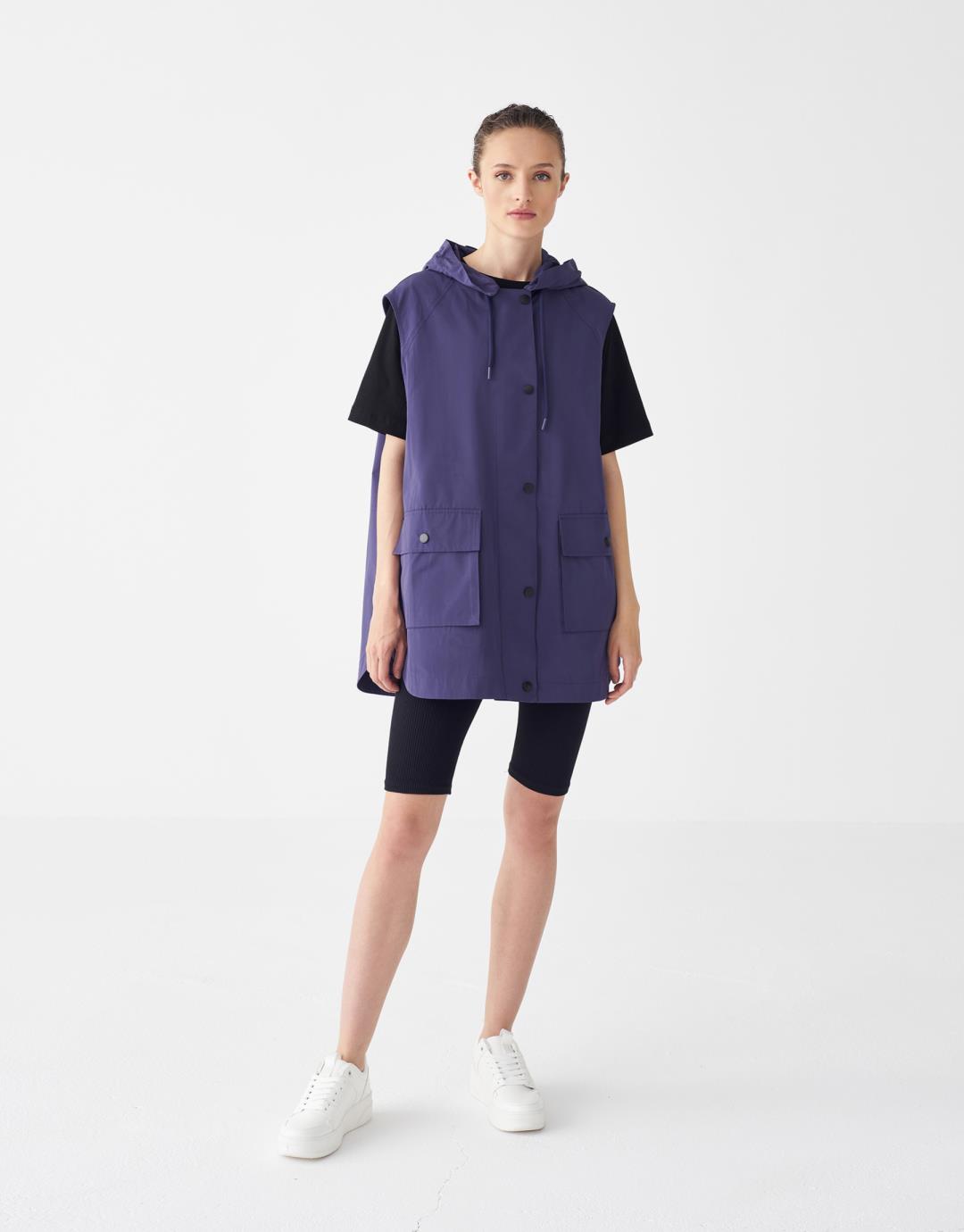 Fabric Content: 50%COTTON 50%PES Product Details : Wide cut. Front snaps. Hooded. Two large front flap pockets with snap fasteners. Sleeveless. Model Size : 36 Model Height: 1.78 The product on the mannequin is size S/M. Usage and Washing Instructions: Do the recommended dry cleaning.