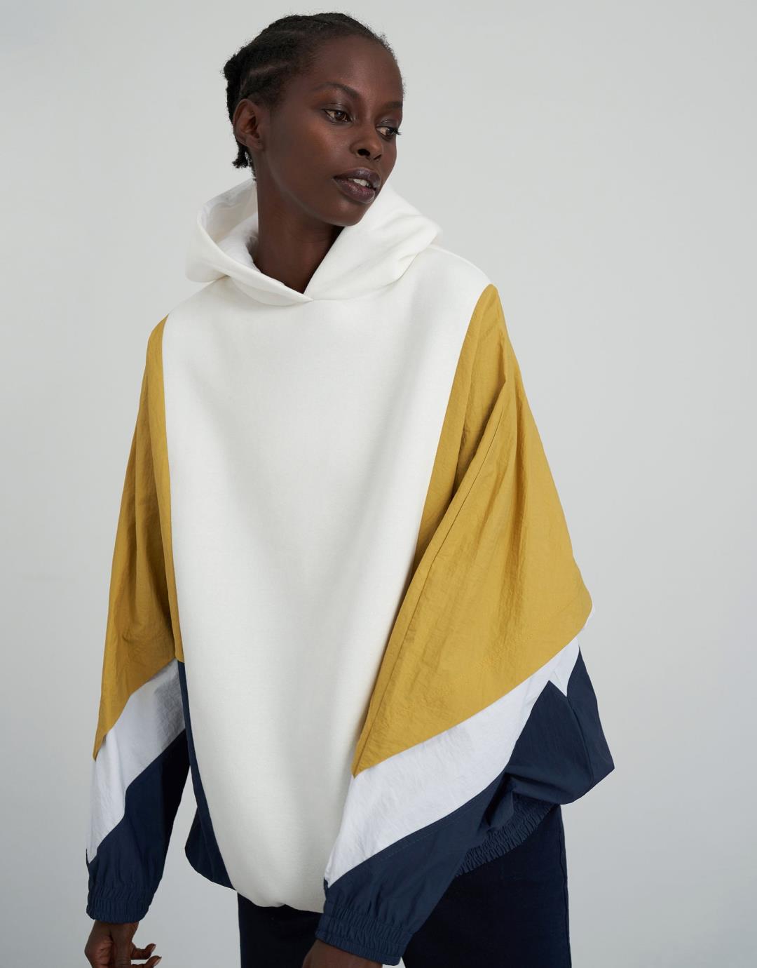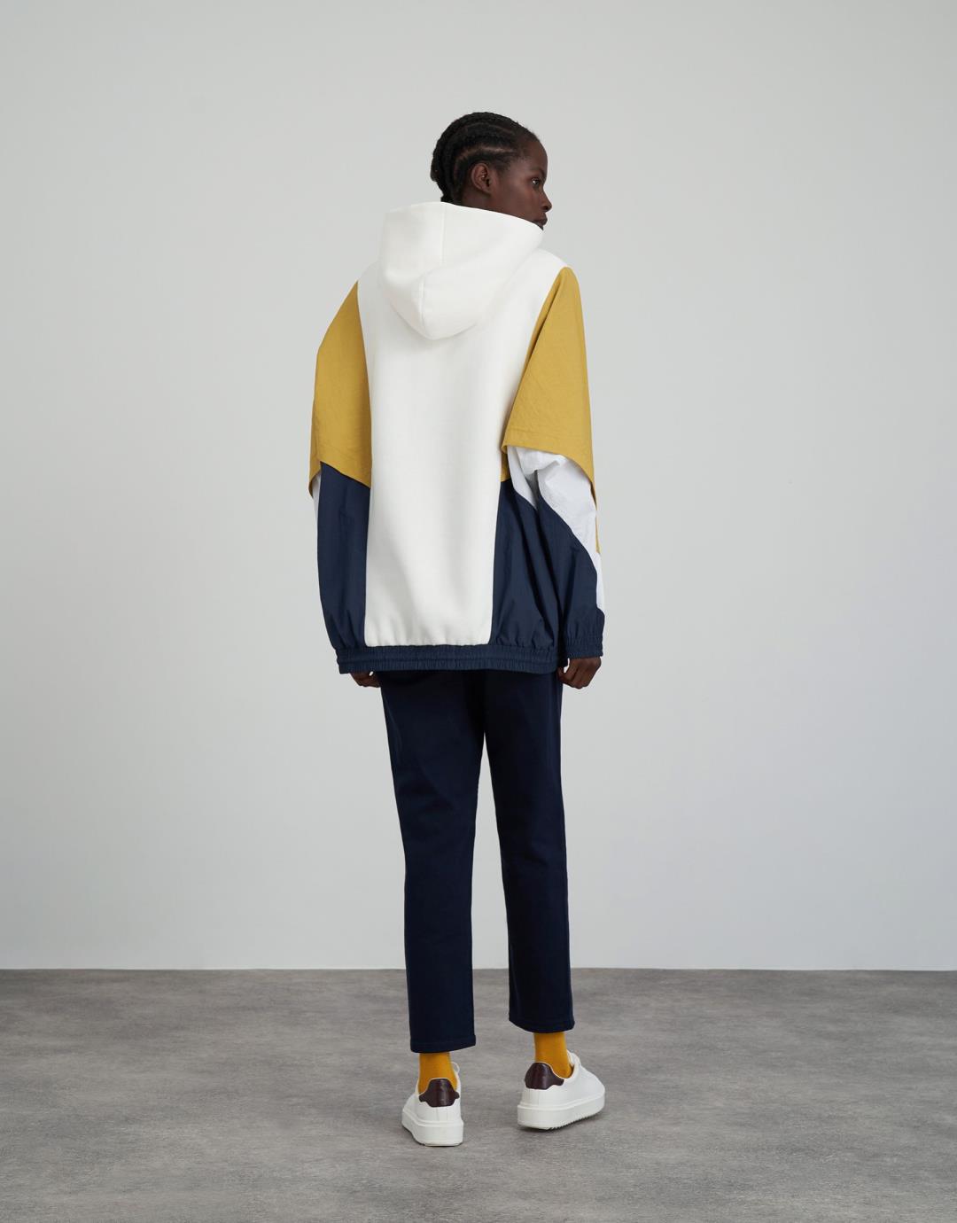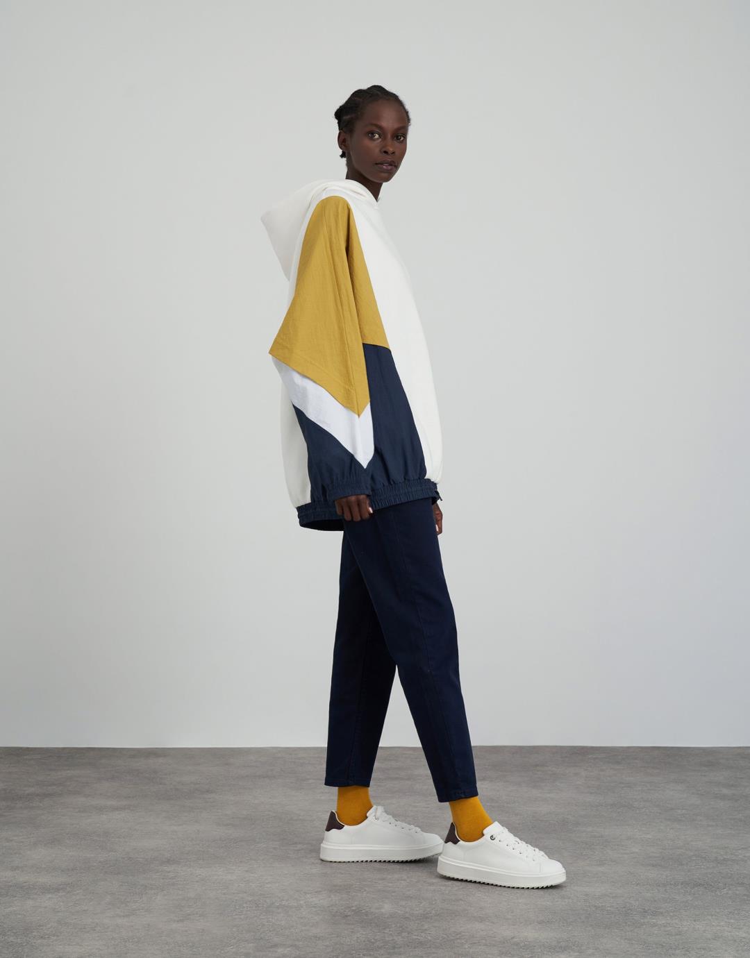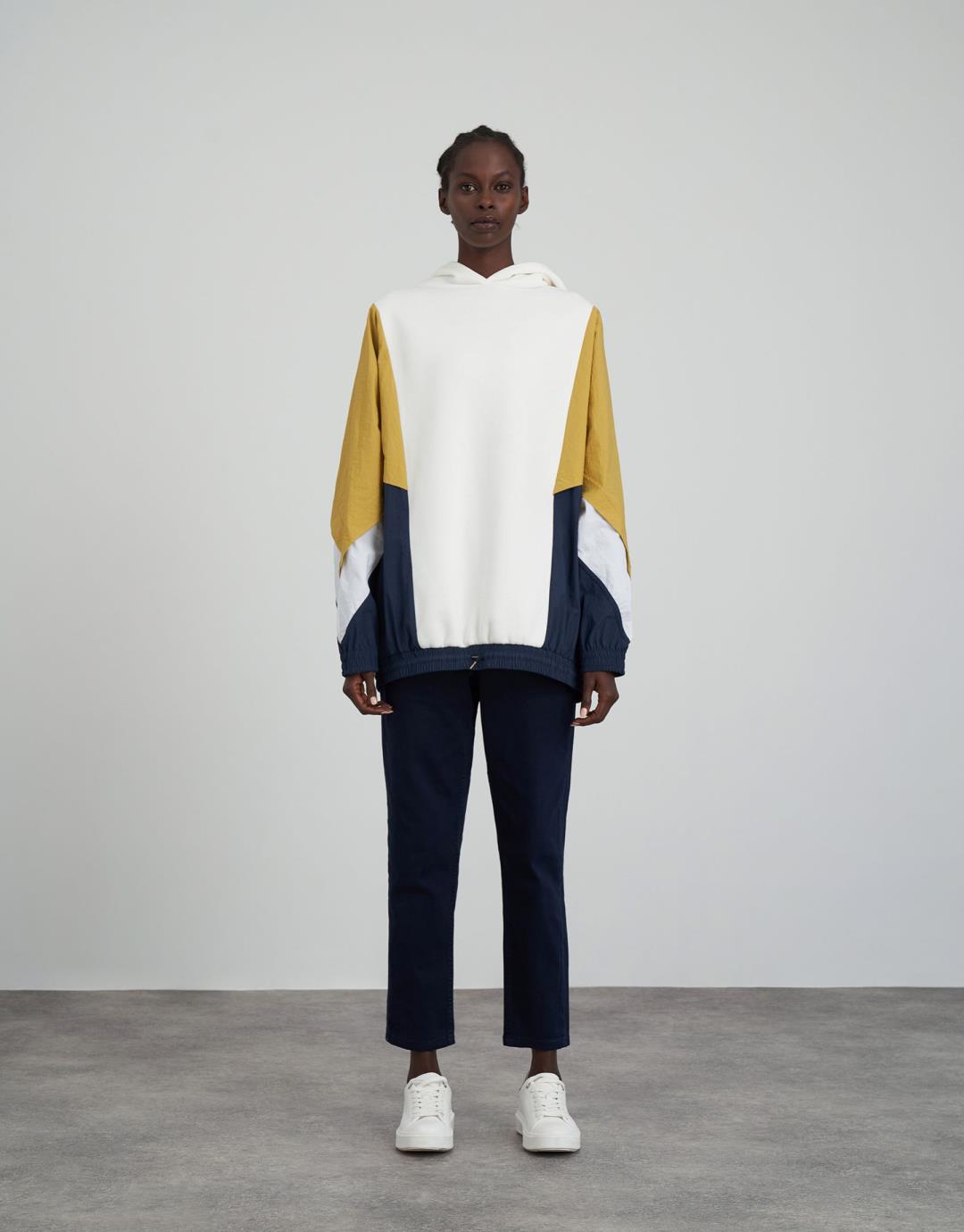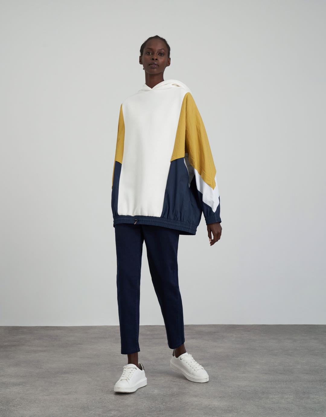 Fabric Content: 70% cotton 30% pes Fabric Info: Knitted / Woven Sleeve Detail: Garnished three colours Product Details: with elasticated hem, drawcord Mould Information: Loose Model Size : 36 Model Height : 1.78 The product on the Model is std size. Usage and Washing Instructions : Recommended Dry cleaning.
