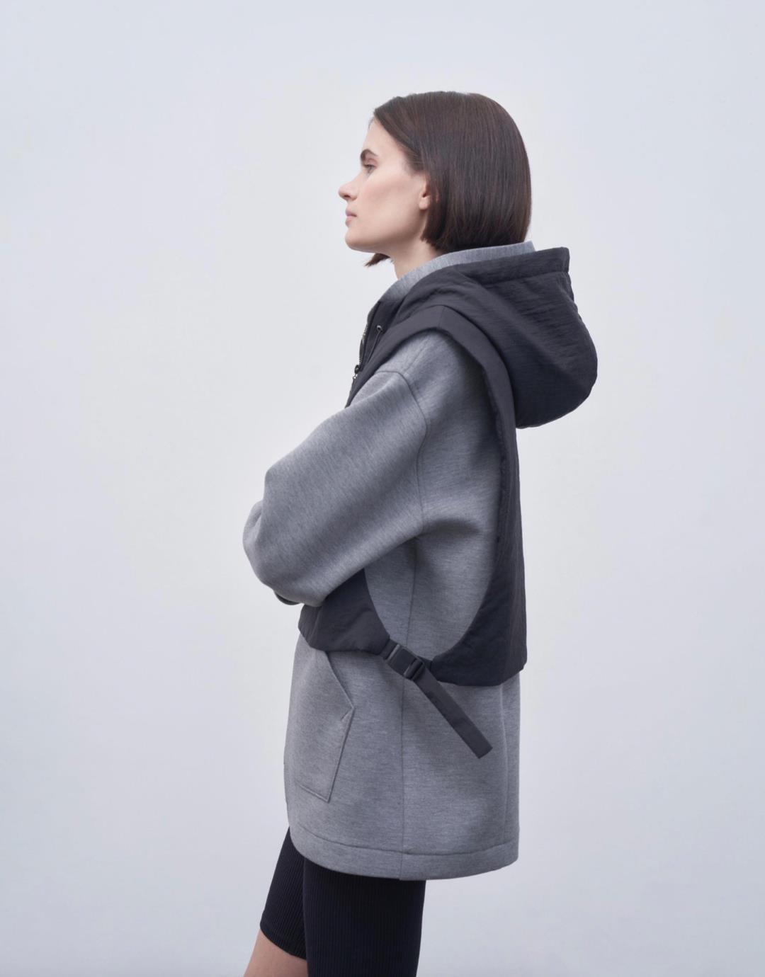 Fabric Content: 100% PA Product Details: Hooded. Zipper closure in front. Side parts with buckle details that can be opened and closed. Model Size: 36 Model Height: 1.74 The product on the model is S/M Size. Usage and Washing Instructions: Tetrachloroethylene Dry Cleaning. Roller cleaning is not allowed. Tumble drying is not allowed. Bleach and whitener is not used.