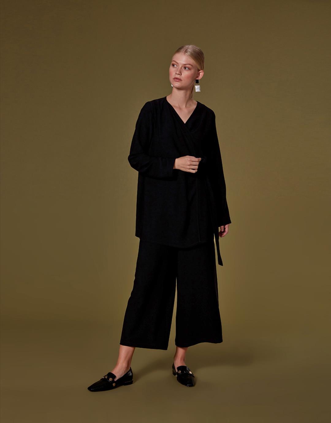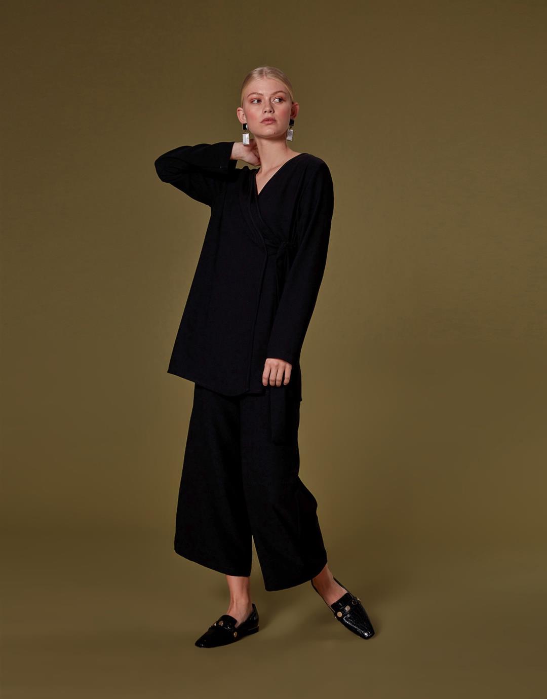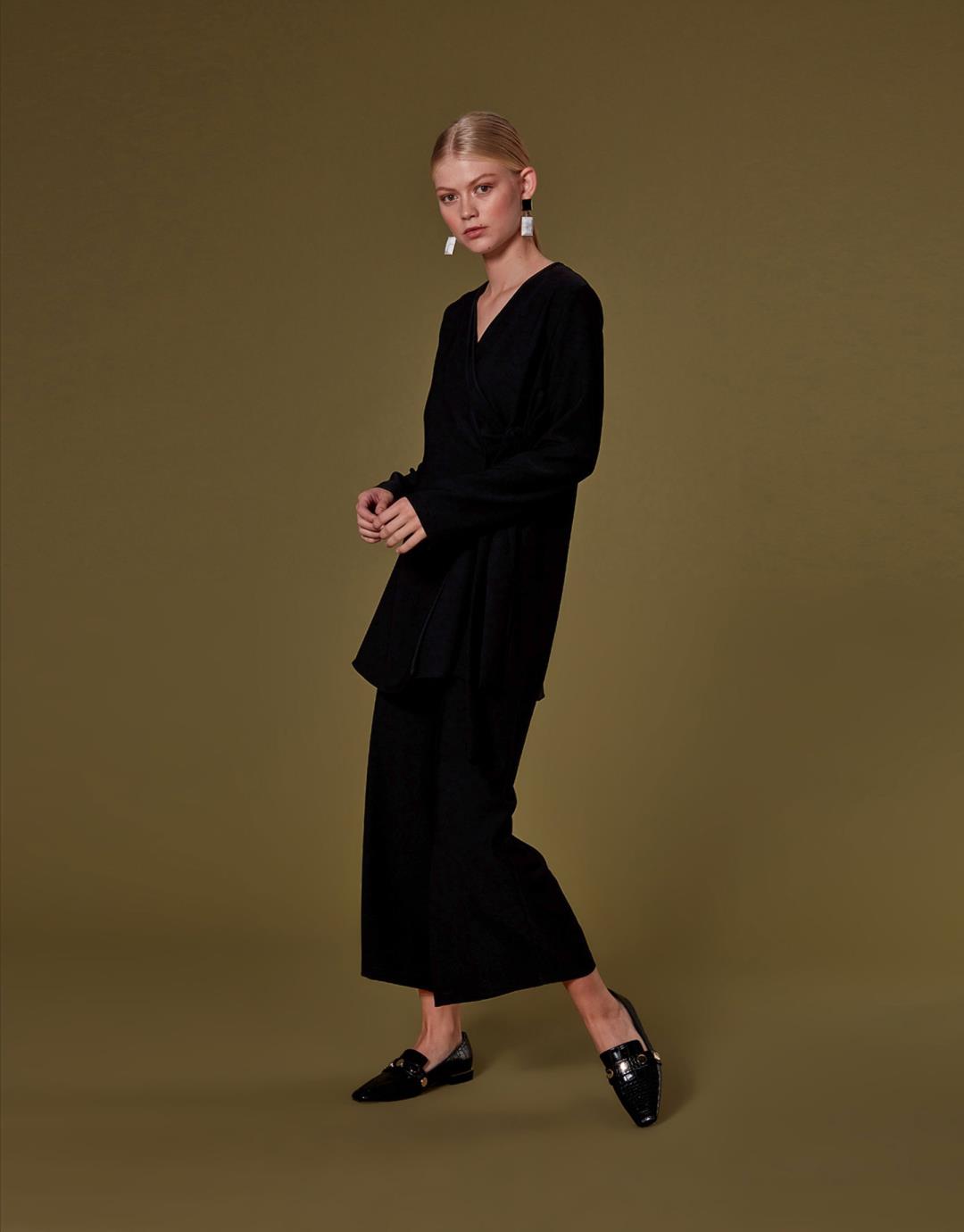 Home2020 Fall / WinterIrene Suit with Tie Wide Leg Trousers – Black – 1073 Irene Suit with Tie Wide Leg Trousers – Black – 1073 Category: 2020 Fall / Winter Product ID: 23223 Description Description Sample Size : 36 Fabric Information : 100% Pes Usage and Washing Instructions : Recommended Dry clean.