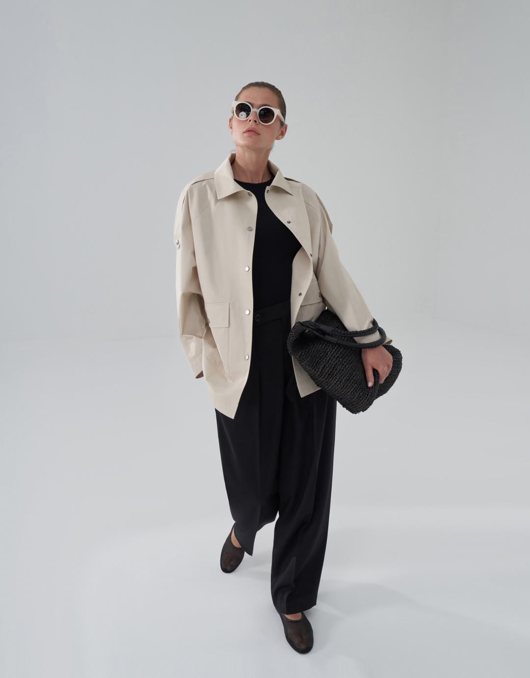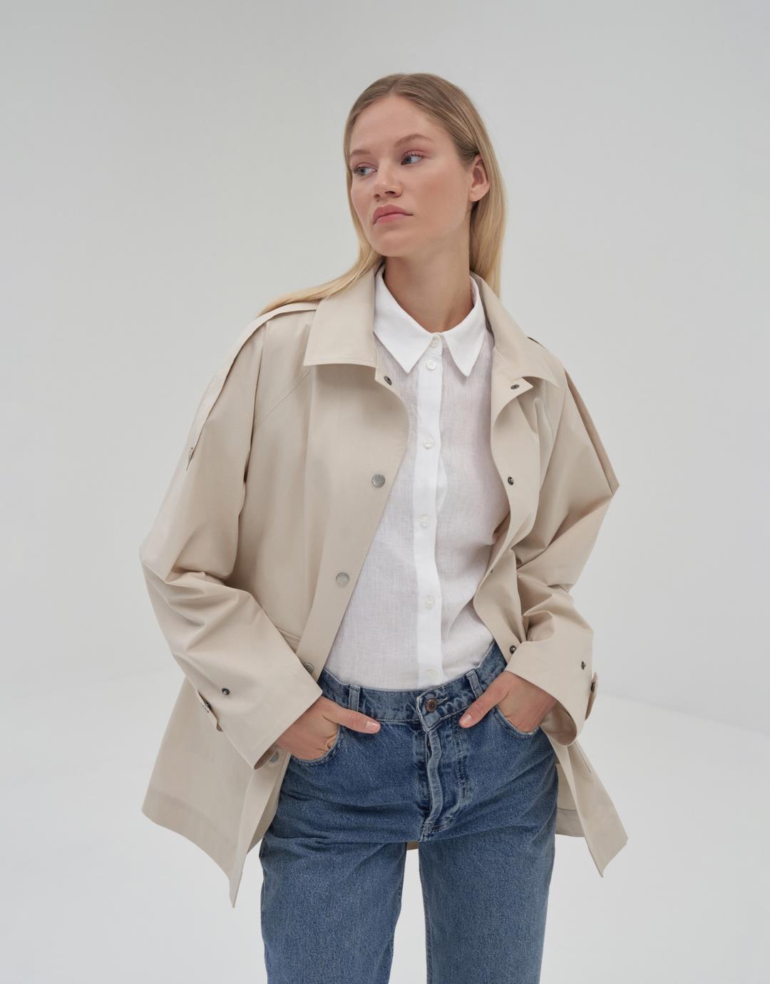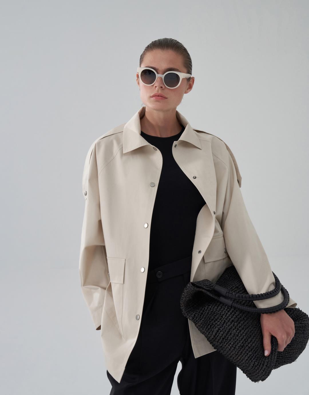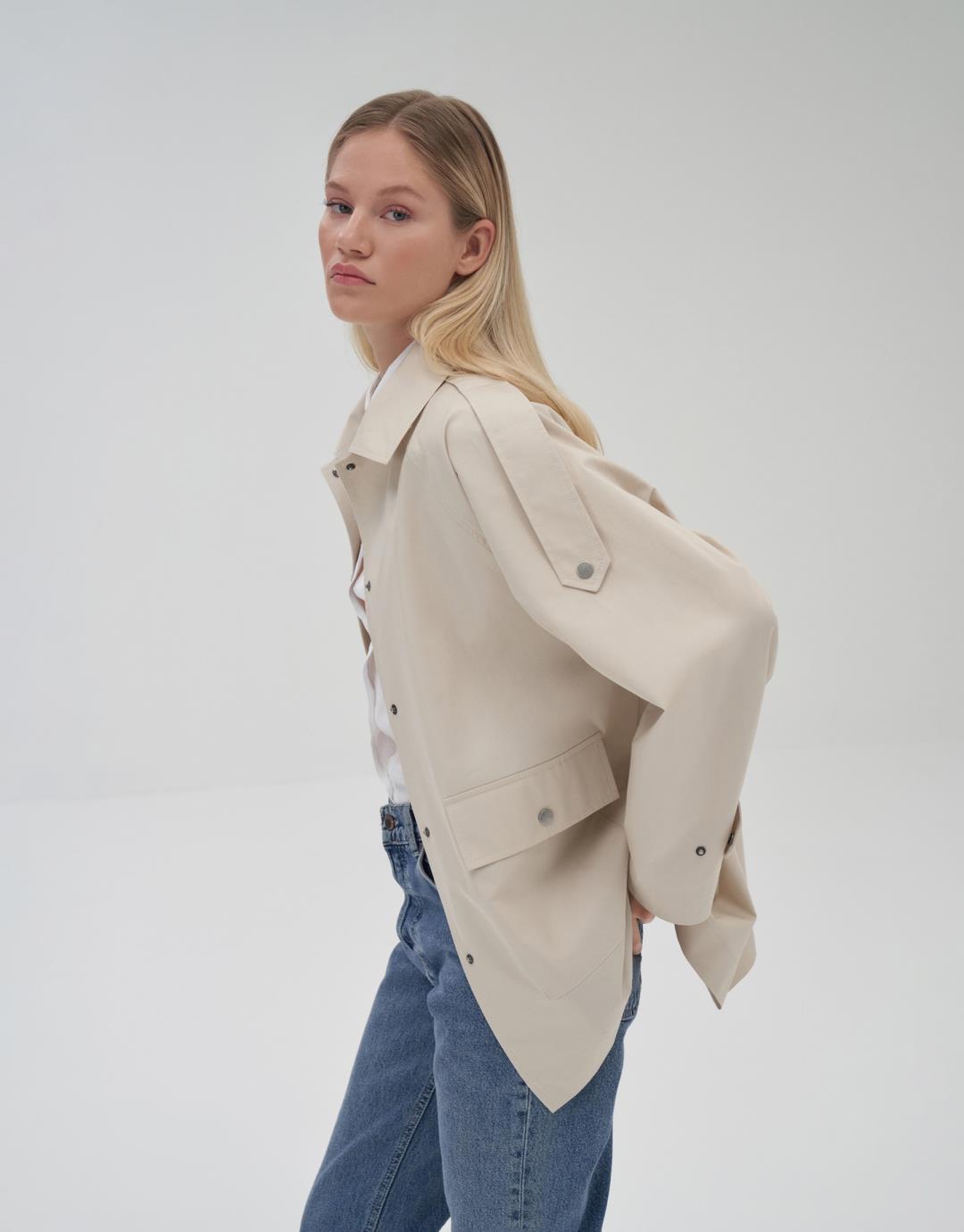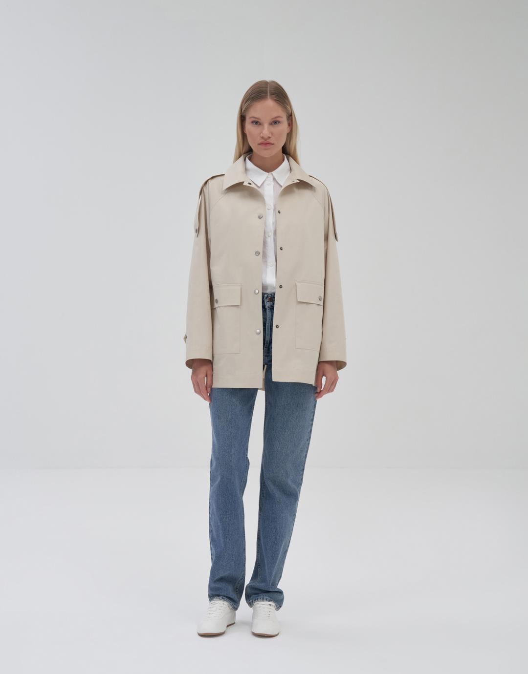 Fabric Content: 100% COTTON Product Details: Front snap closure. Raglan sleeve. Two flap pockets on the front body.Epaulette detail on shoulders. Model Size: 36 Model Height: 1.72 The product on the model is size 38. Usage and Washing Instructions: Tetrachlorethylene Dry Cleaning. Roller cleaning is not done. Tumble drying is not done. Bleach bleach is not used.