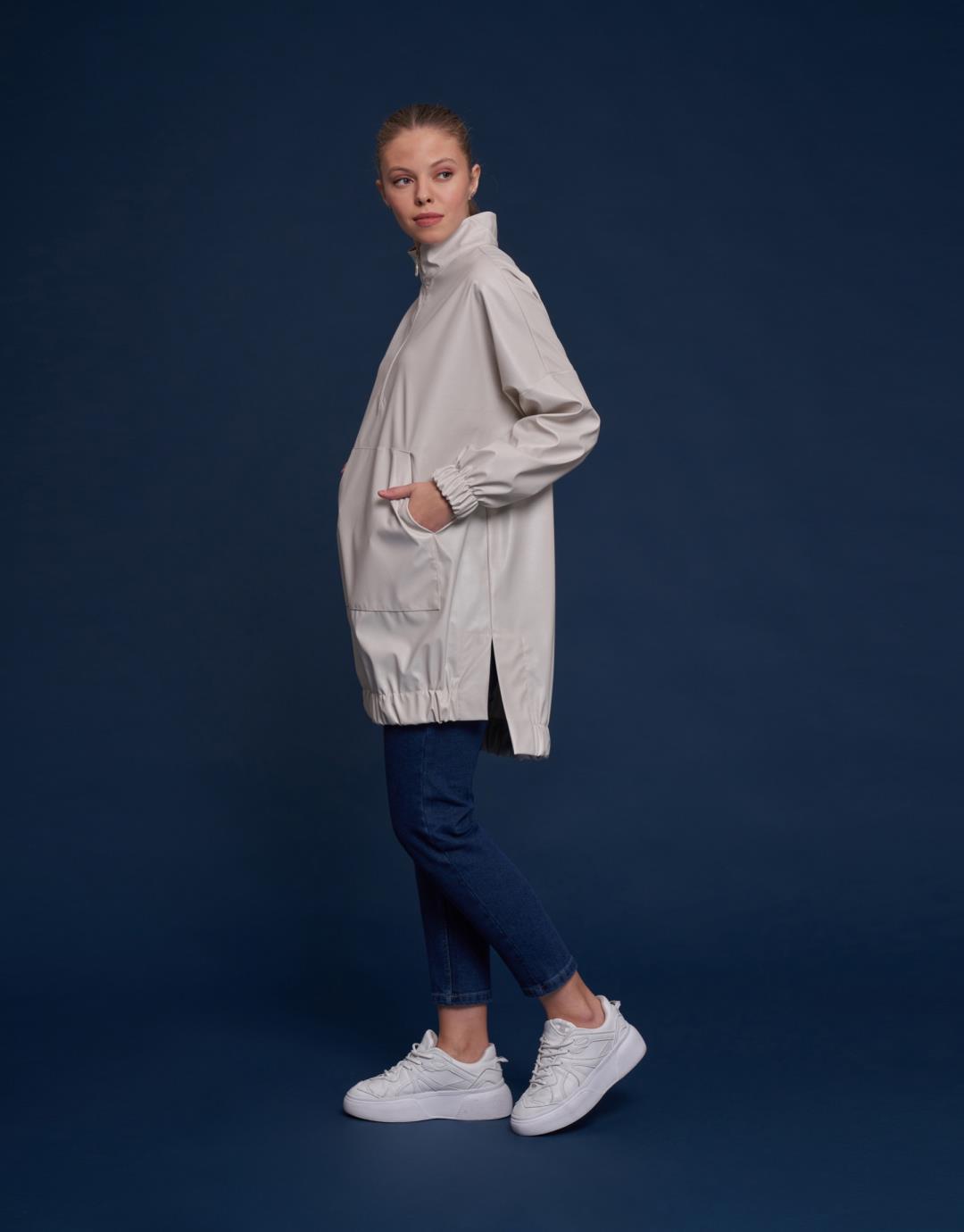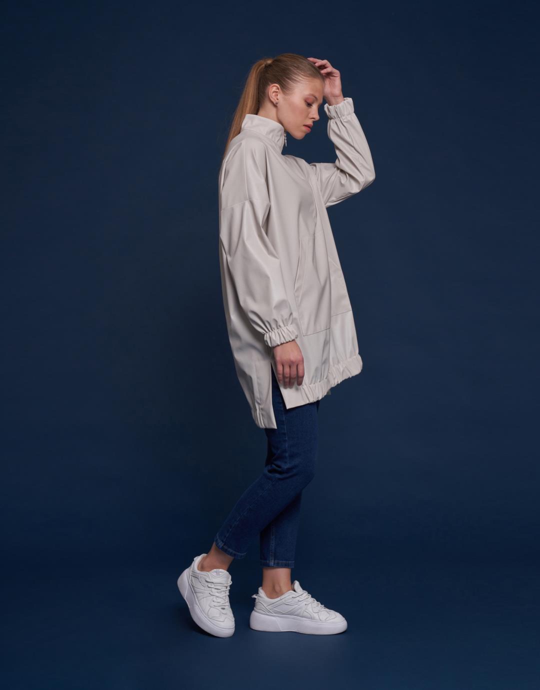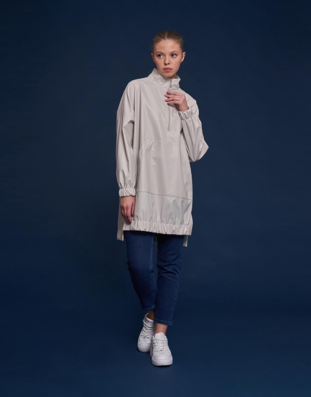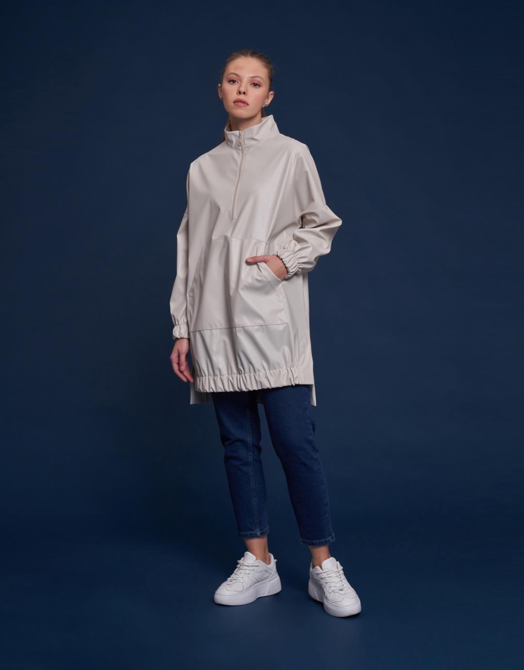 Kangaroo Pocket Faux Leather Tunic – Beige Stone Color – 11088