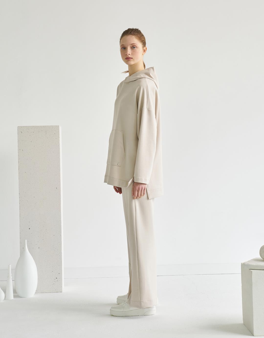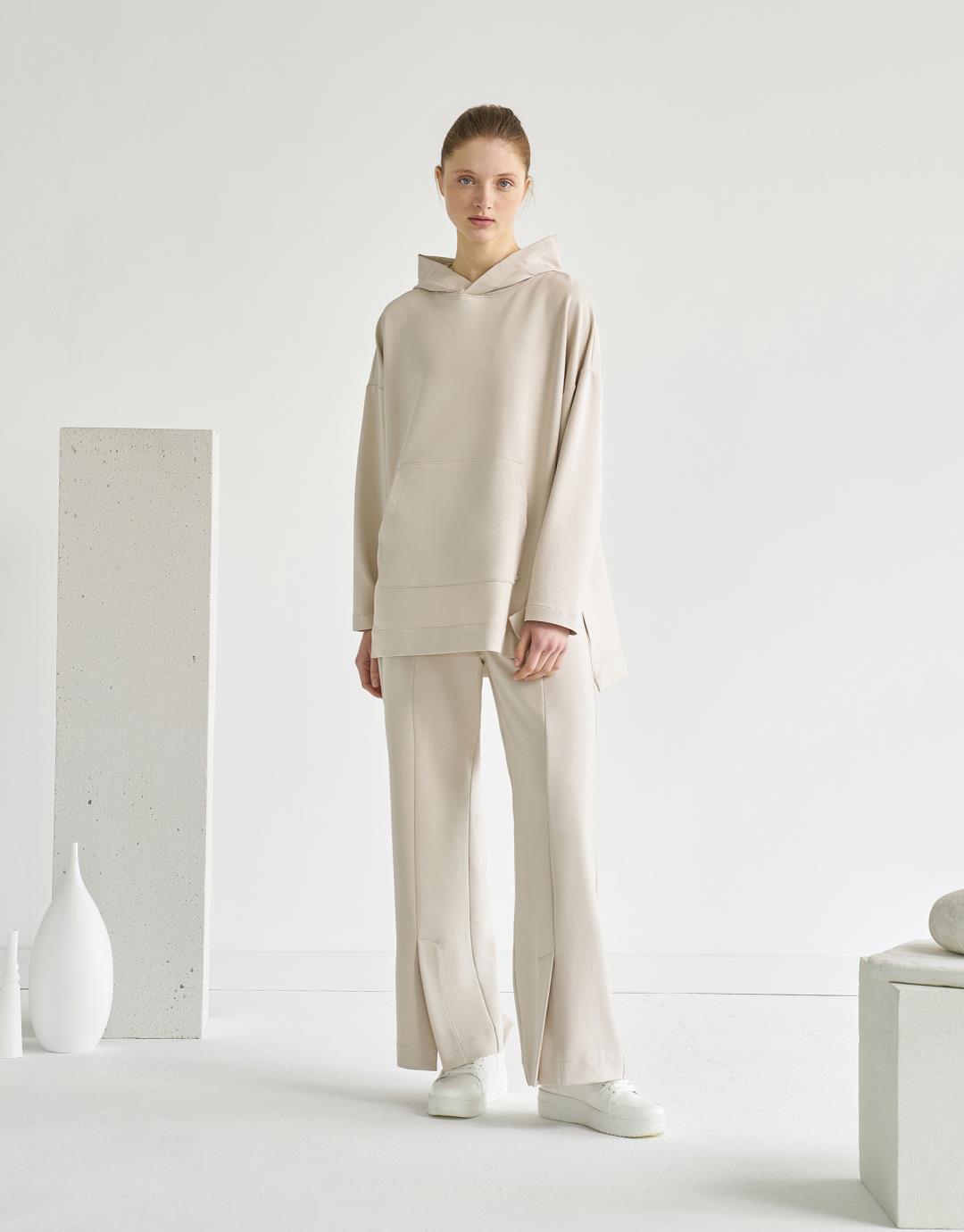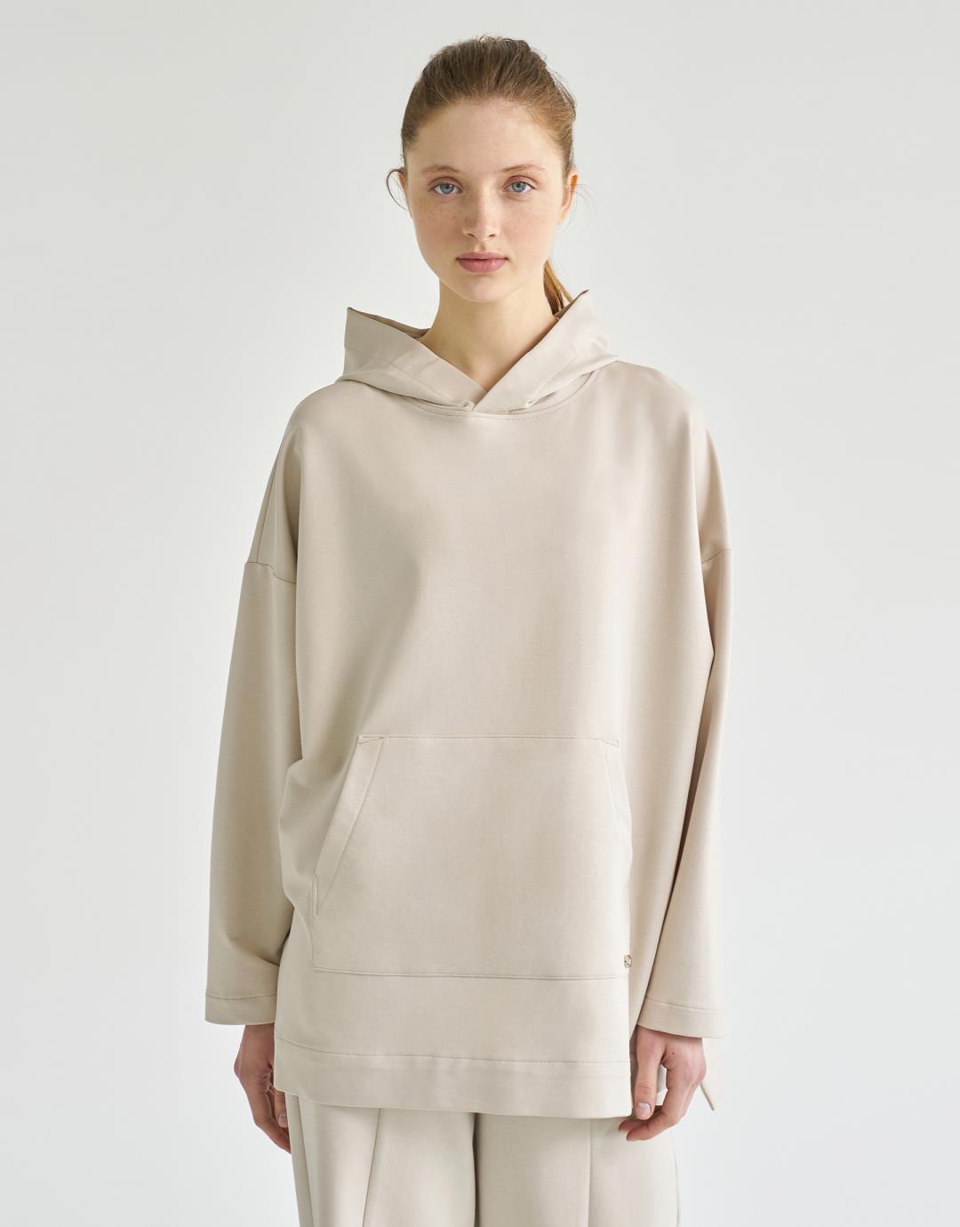 Kangaroo Pocket Hoodie Sweatshirt – Beige Stone Color – 3827-1