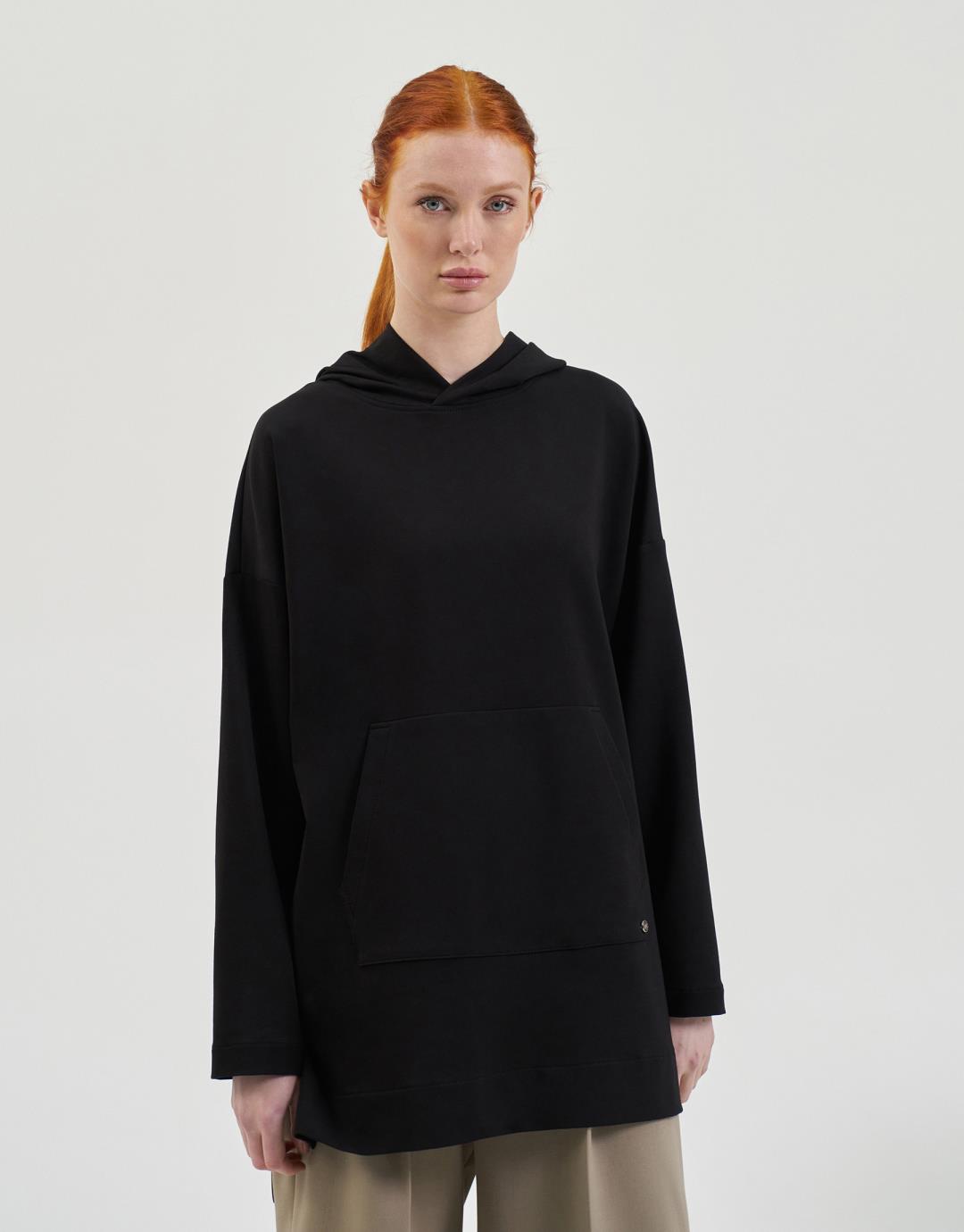 Kangaroo Pocket Hoodie Sweatshirt – Black – 3827-1