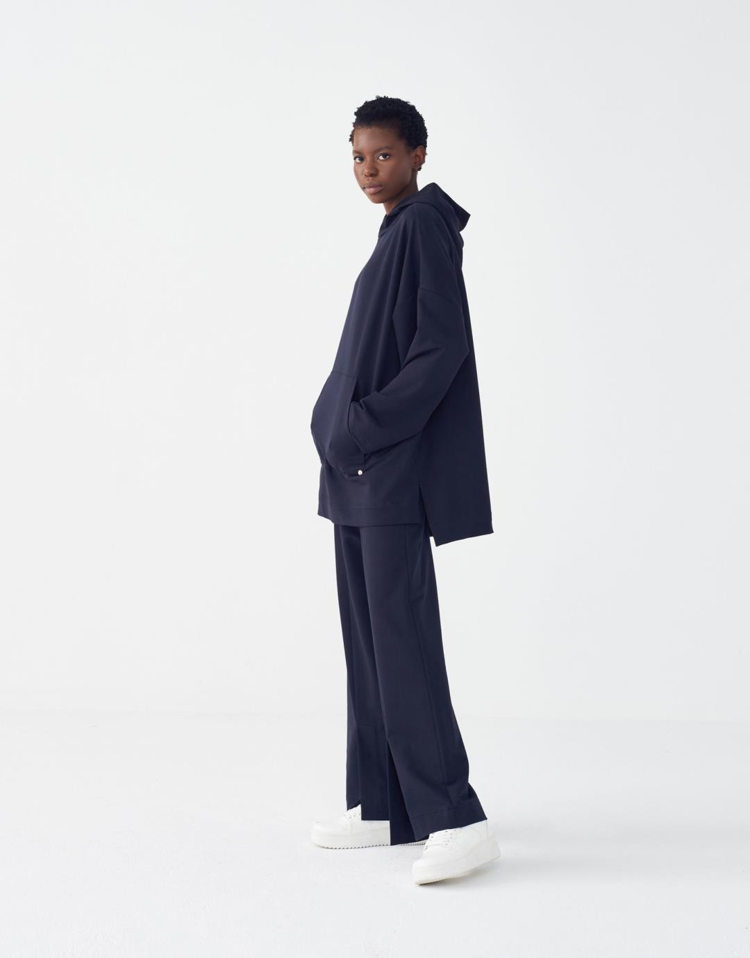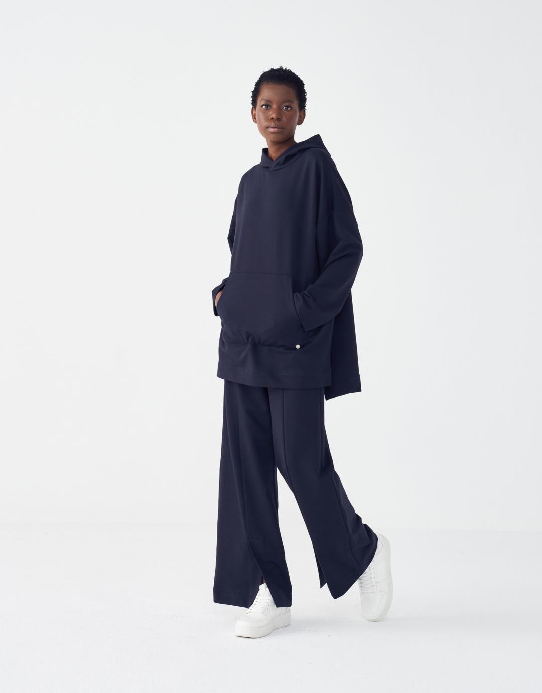 Kangaroo Pocket Hoodie Sweatshirt – Navy Blue – 3827-1