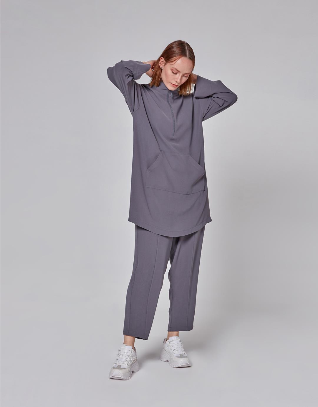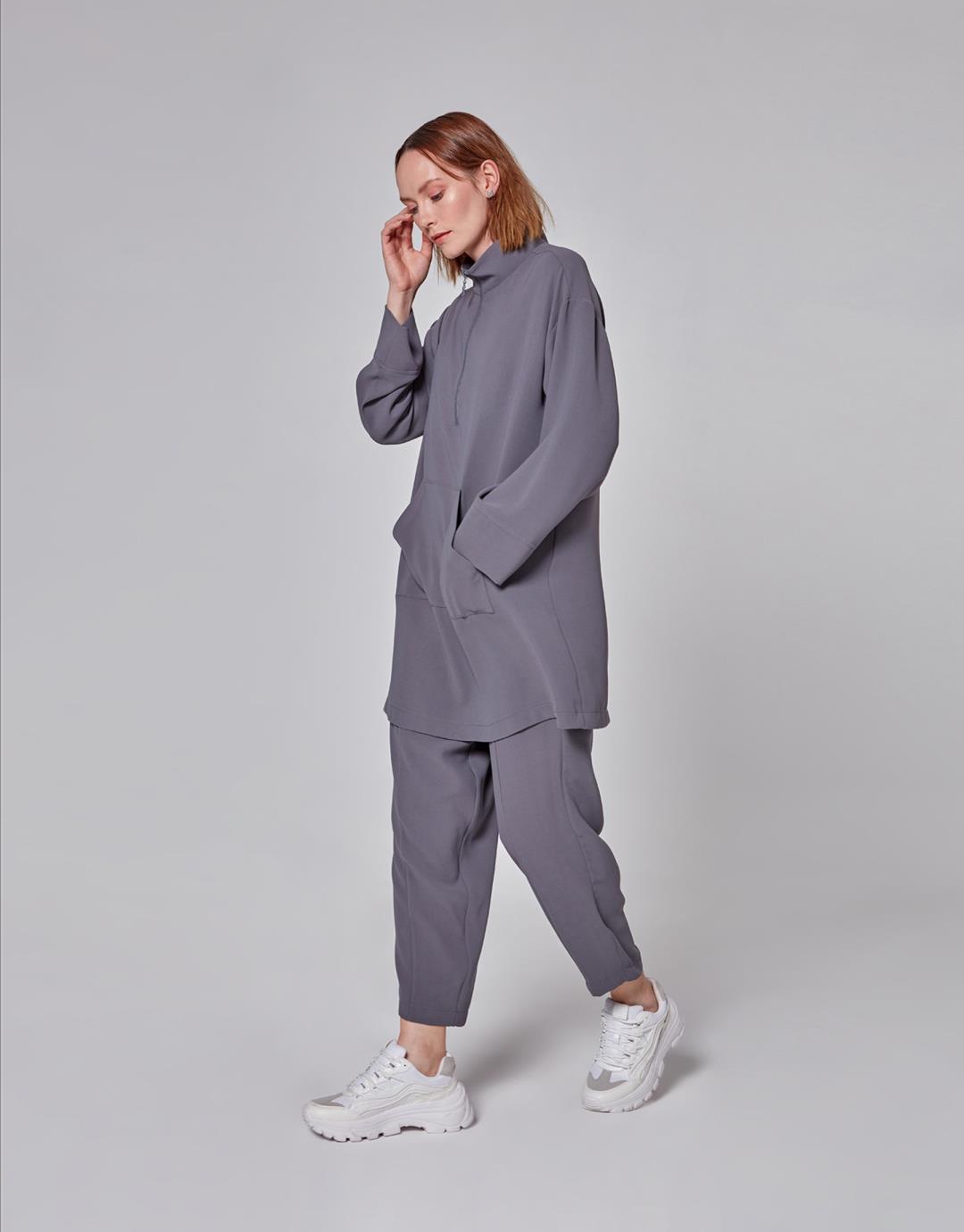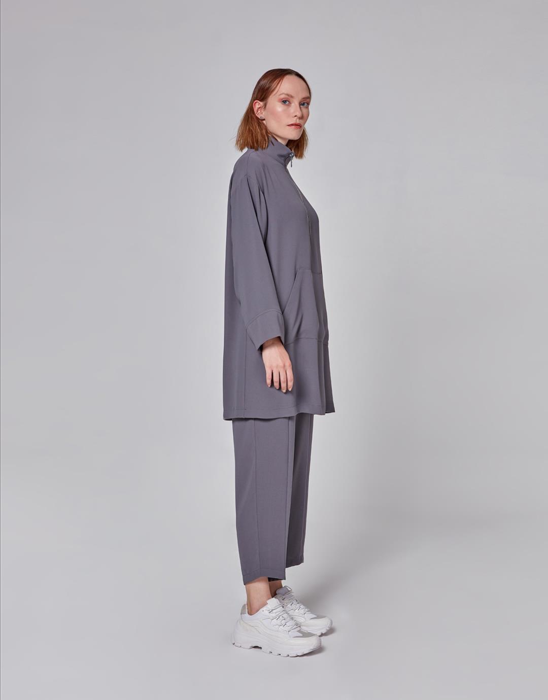 Kangaroo Pocket Zipper Anna Suit – Anthracite Color – 1088