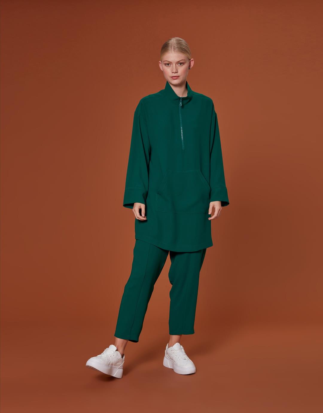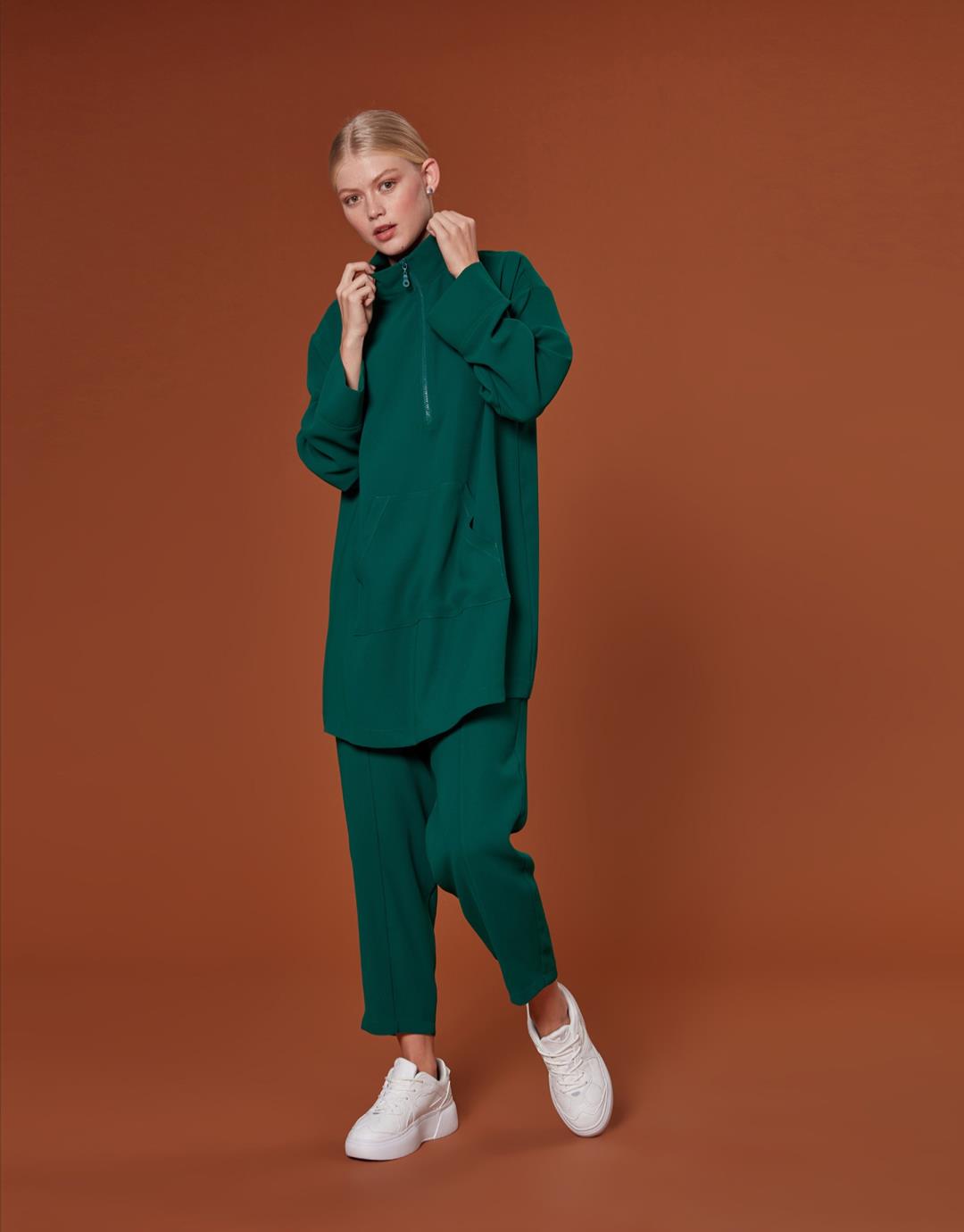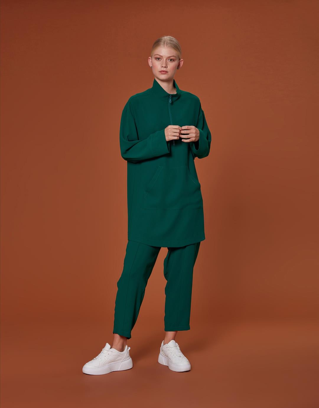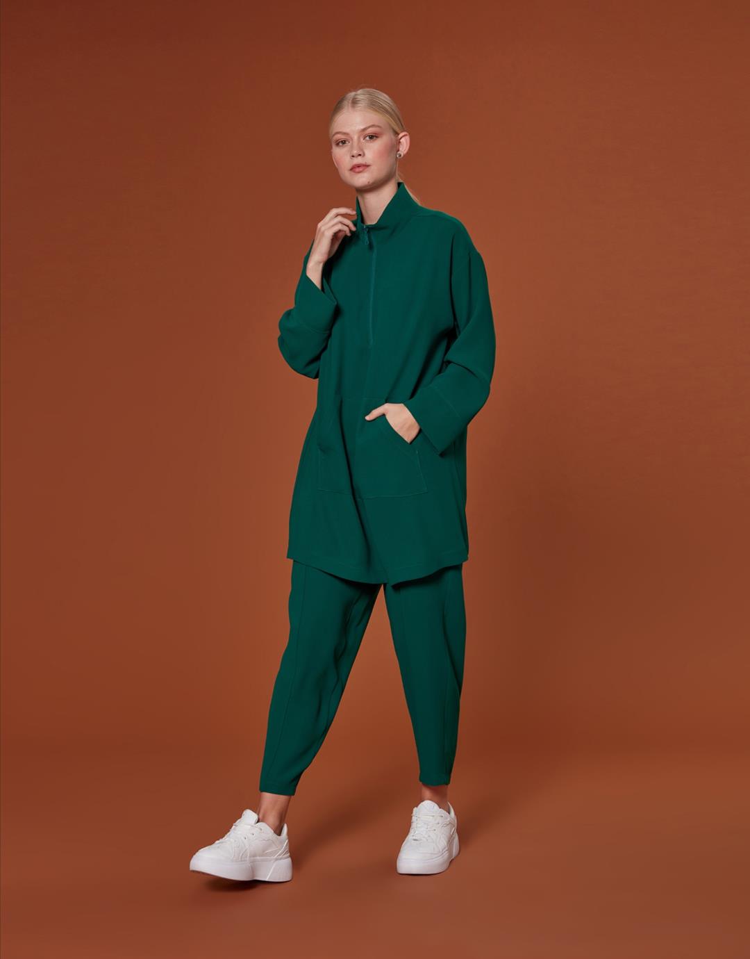 Kangaroo Pocket Zipper Anna Suit – Green – 1088