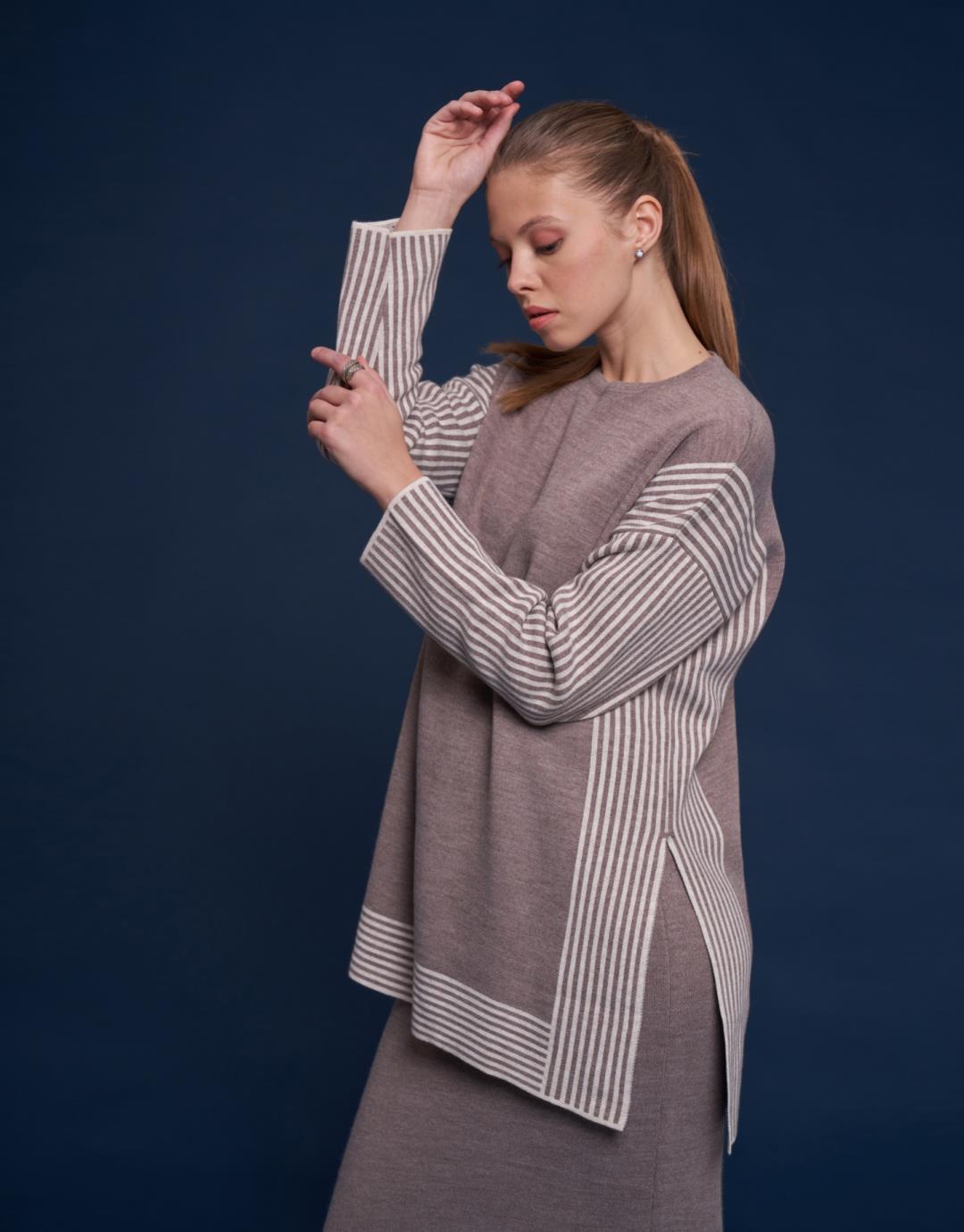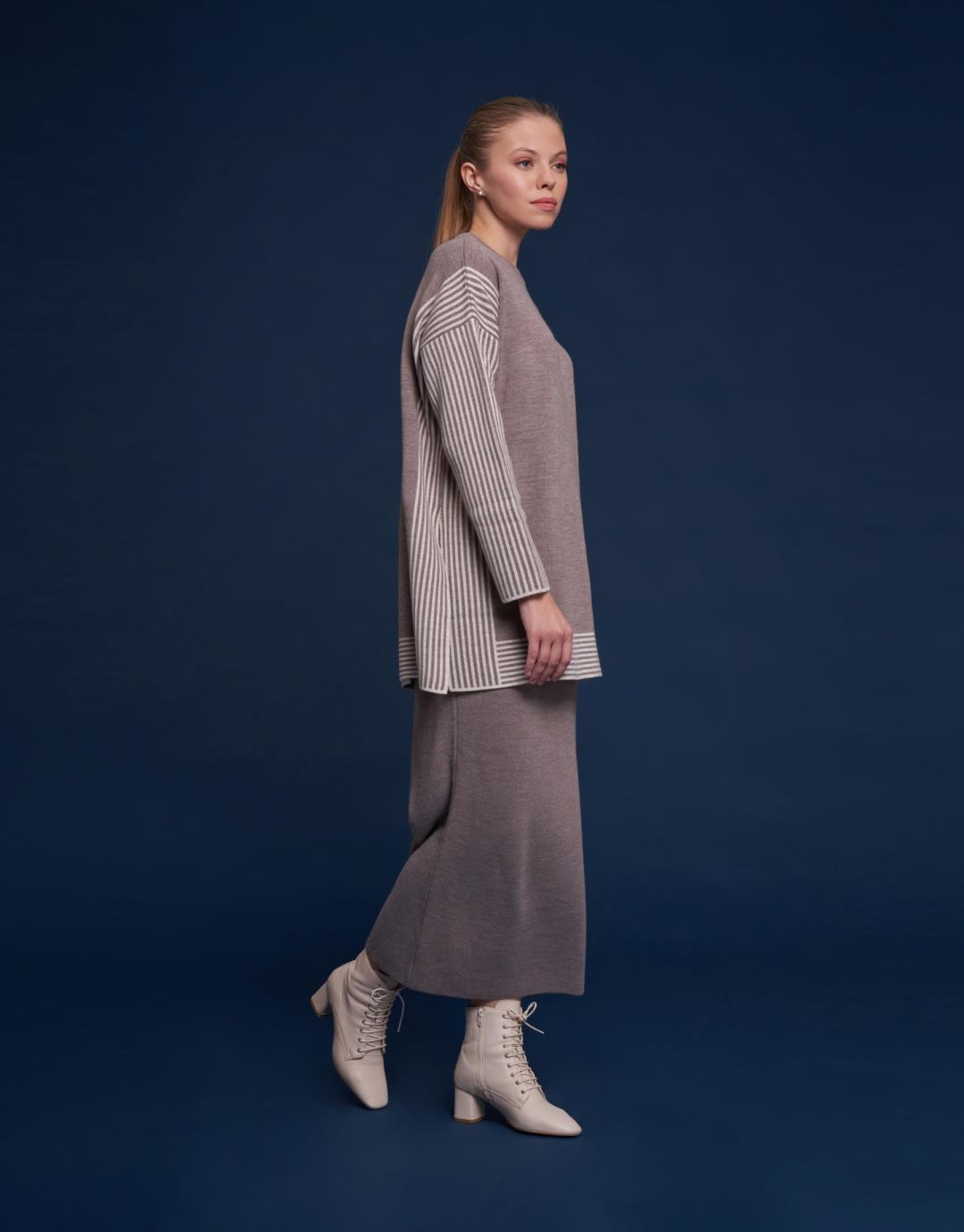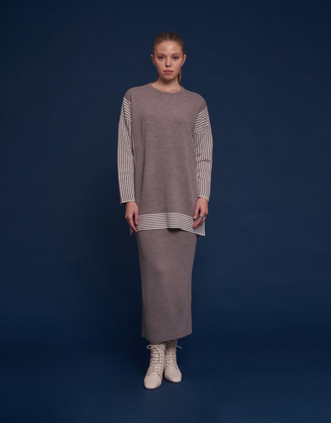 Knitwear Line Detailed Skirt Suit – Mink Color – 14106