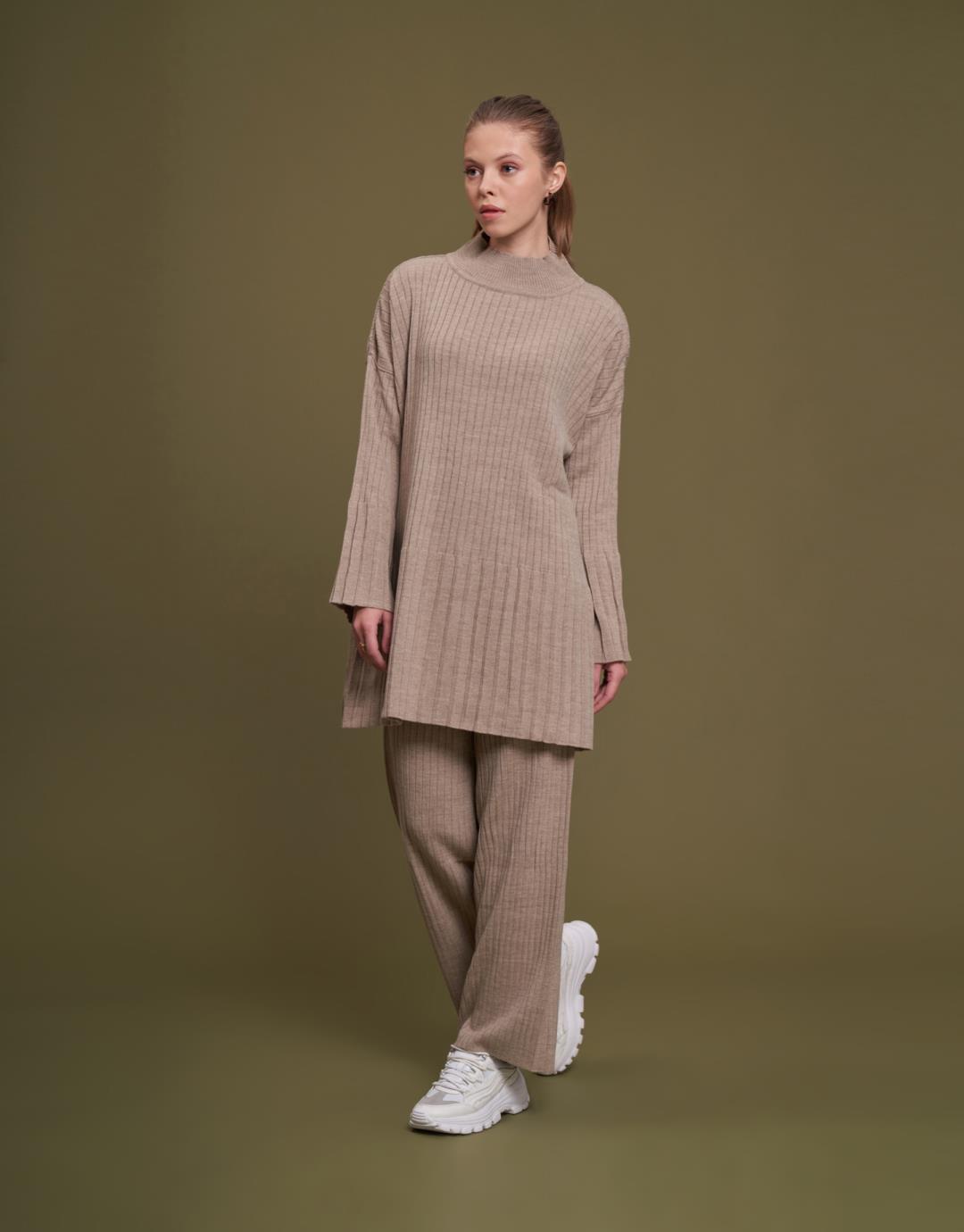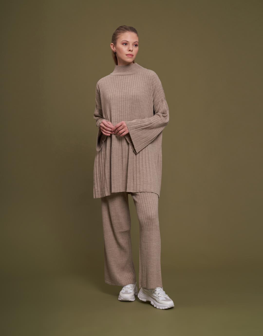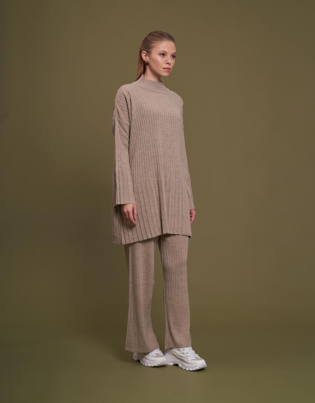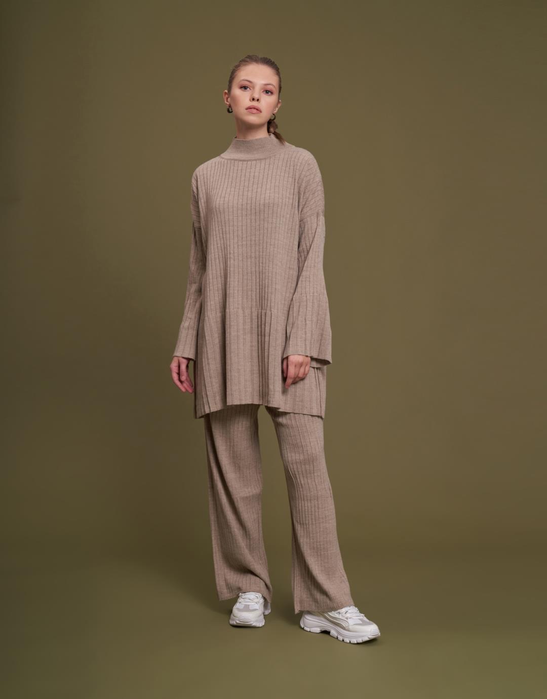 Knitwear Pleated Trousers Suit – Mink Color – 14094