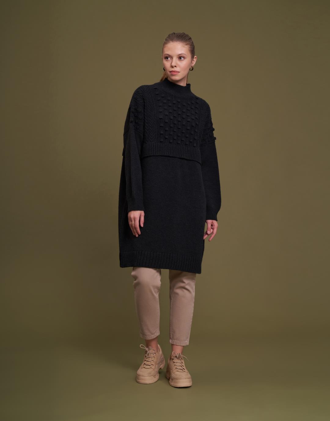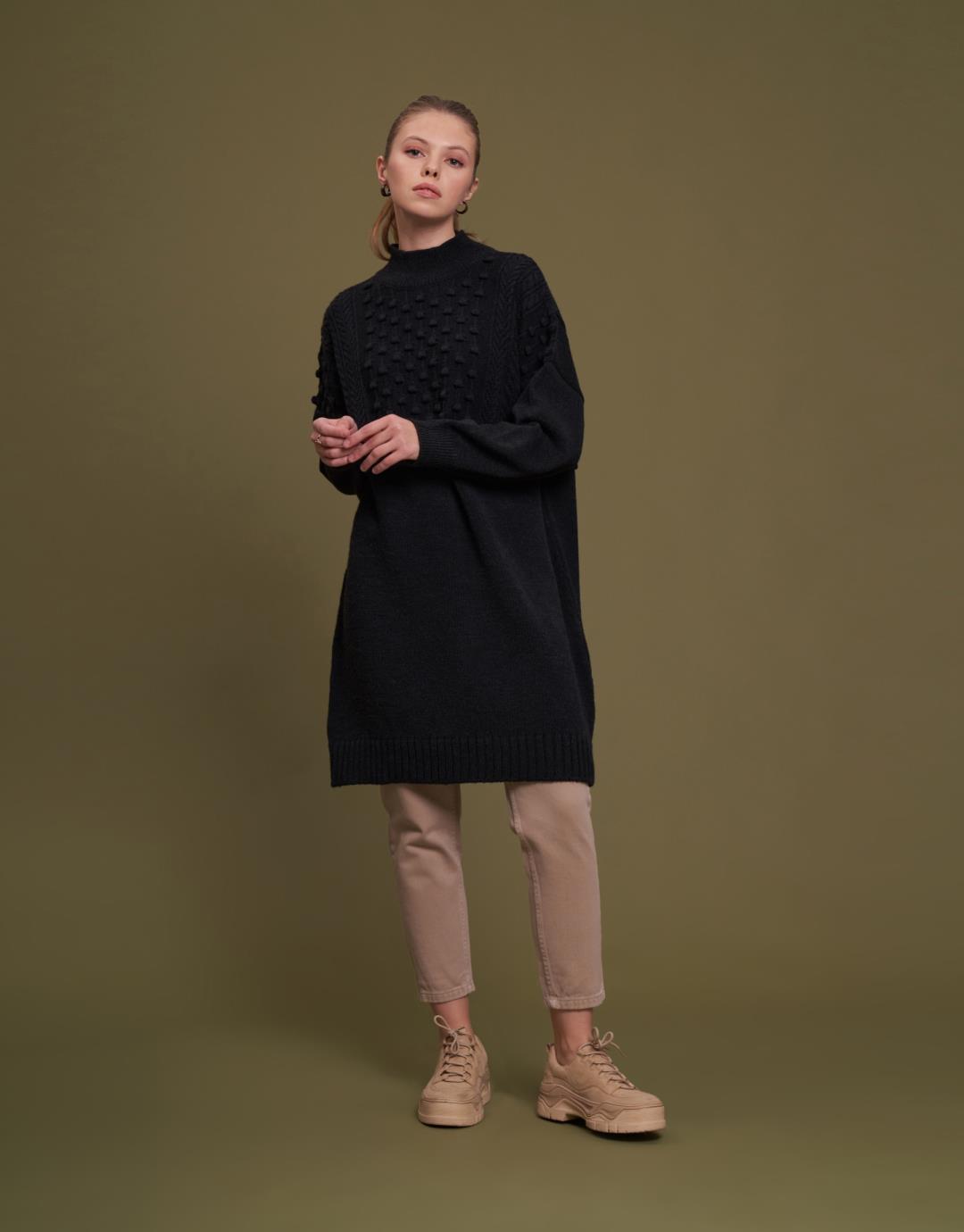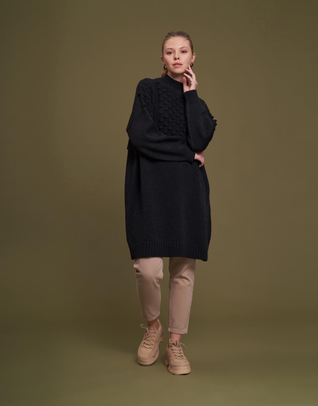 Knitwear Pompom Oversize Sweater – Black – 7084