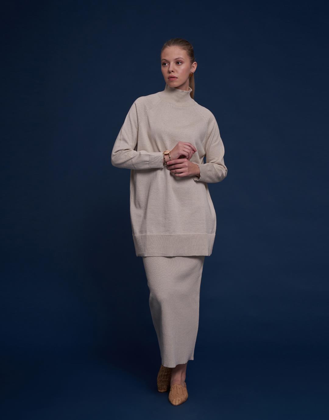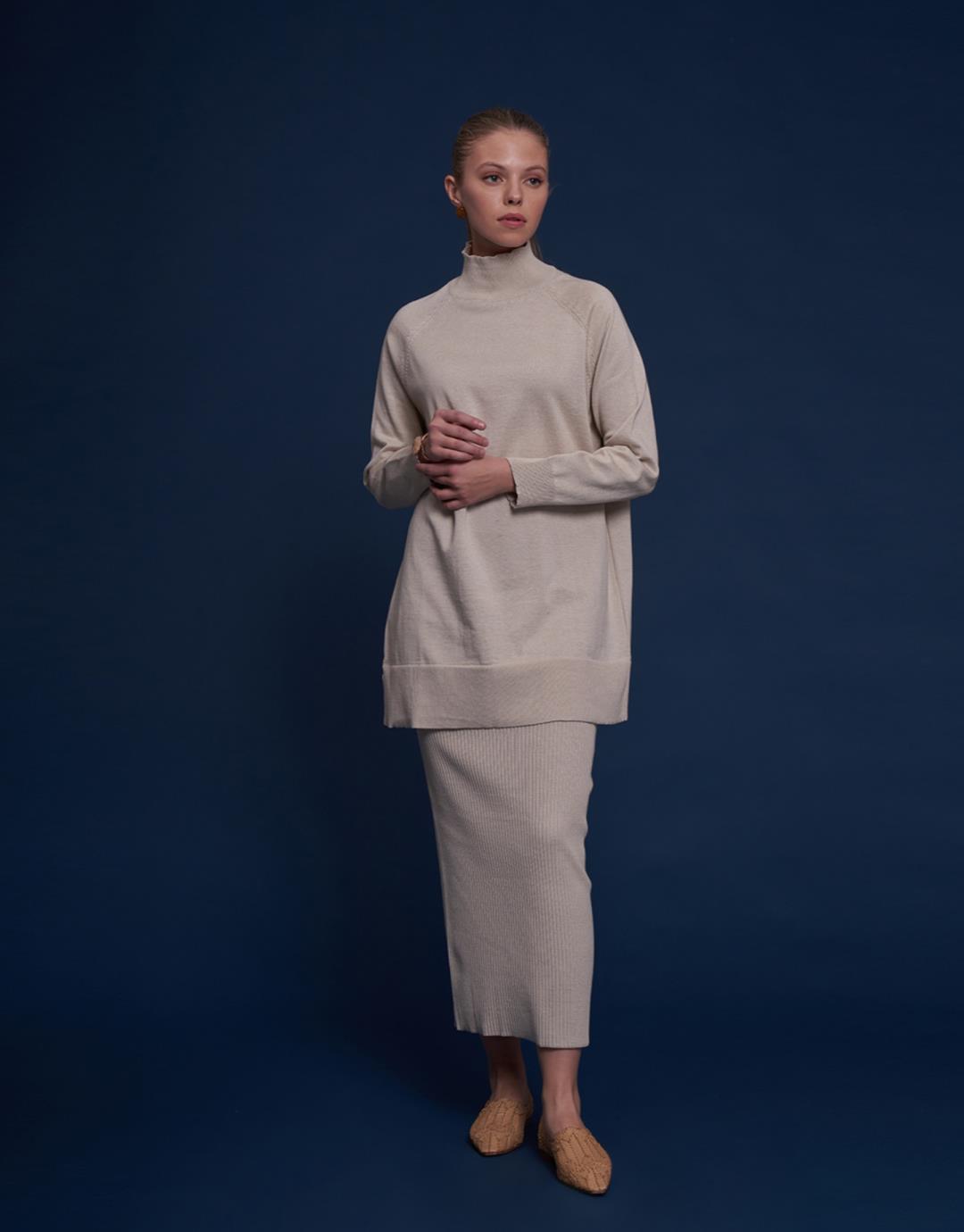 Fabric Content: 50% acrylic 50% cotton Fabric Information: Knitted Product Details: Stretchy pencil skirt Pattern Information: Pencil Model Size: 36 Model Length: 1.78 The product on the Model is Size 1. Usage and Washing Instructions : Recommended Dry clean.