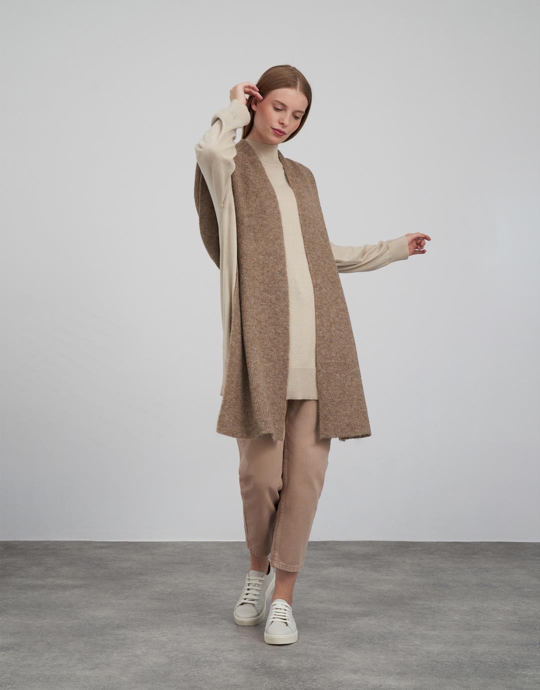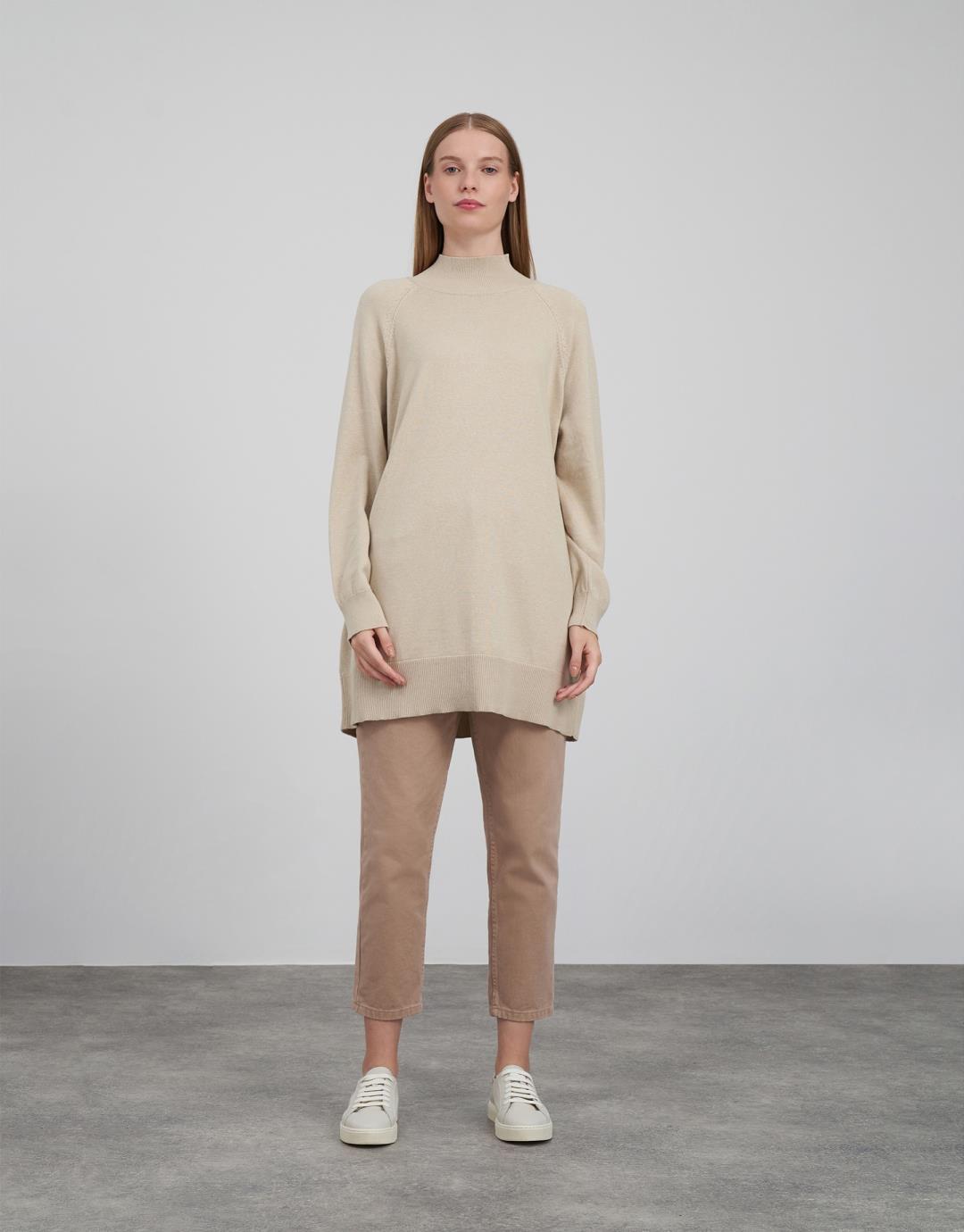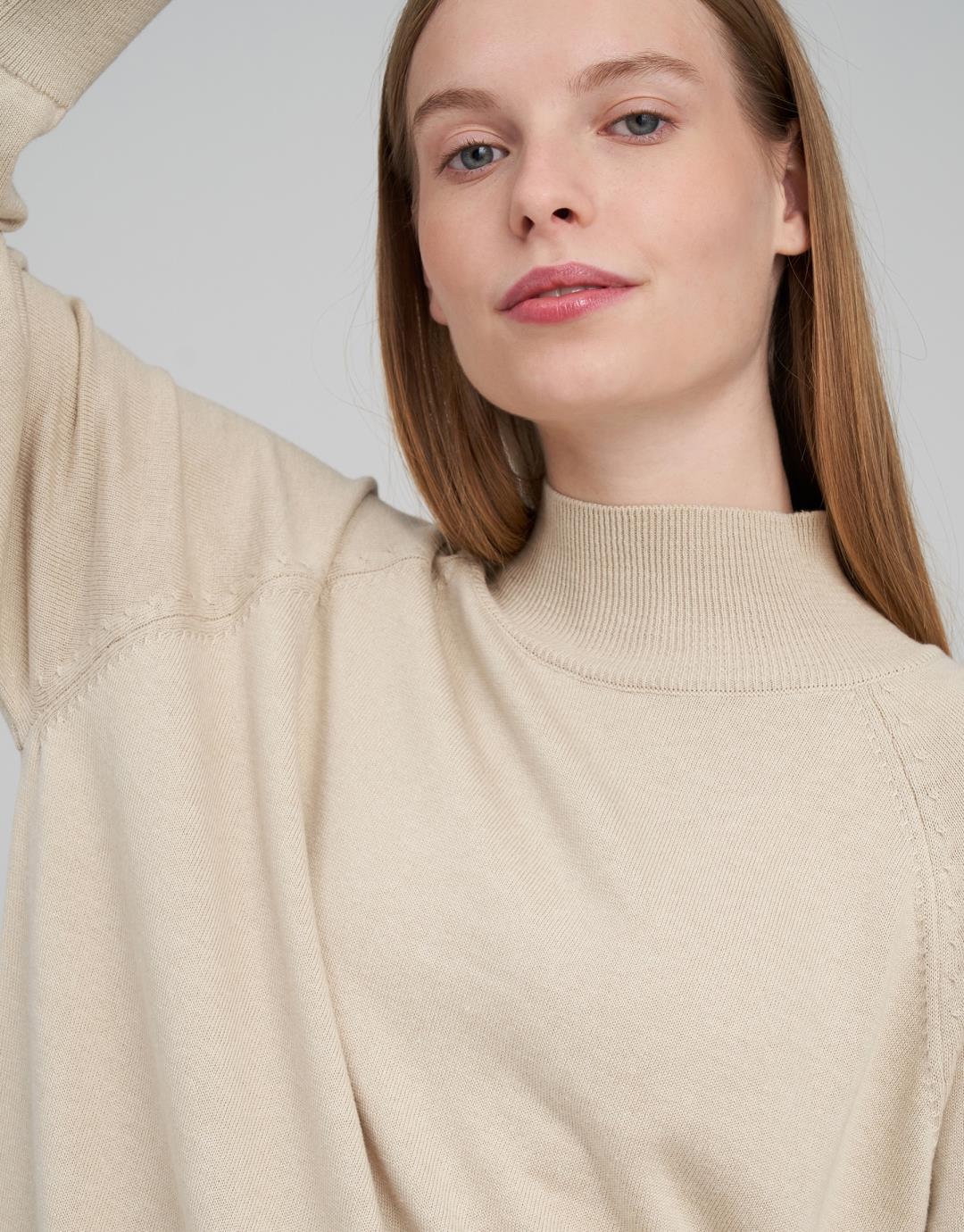 Fabric Content: 50 % acrylic 50 % cotton Fabric Info: Knitted Arm Detail Long Product Details: Turtleneck Mould Information: Loose Model Size : 36 Model Height : 1.78 The product on the Model is size 1. Usage and Washing Instructions : Recommended Dry cleaning.