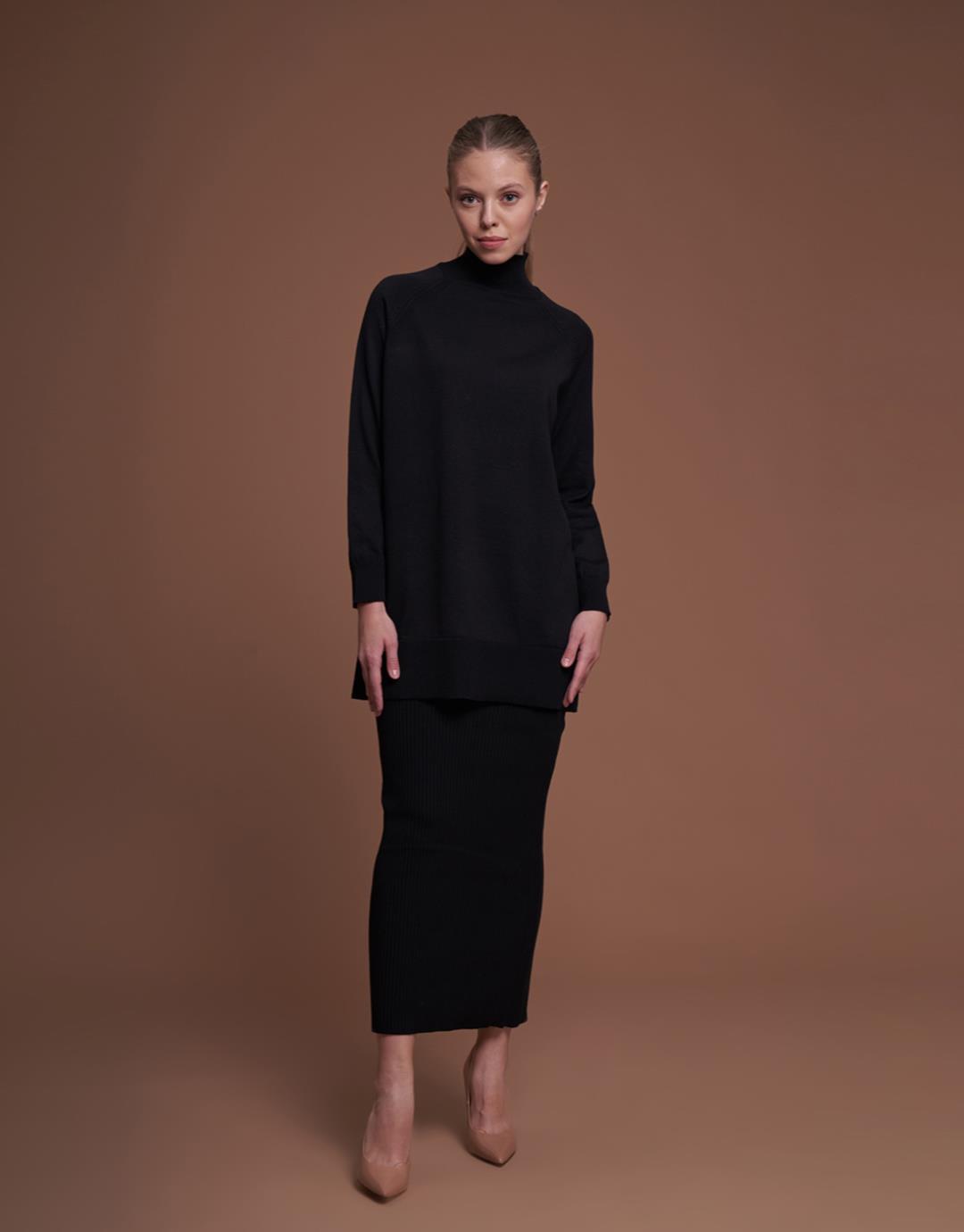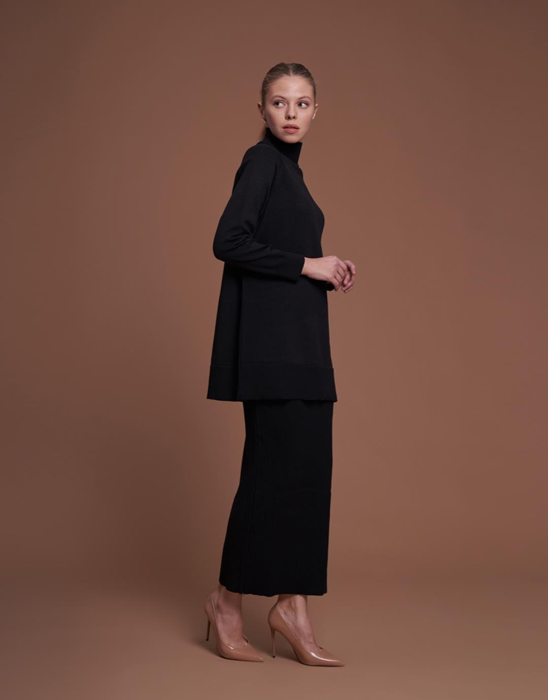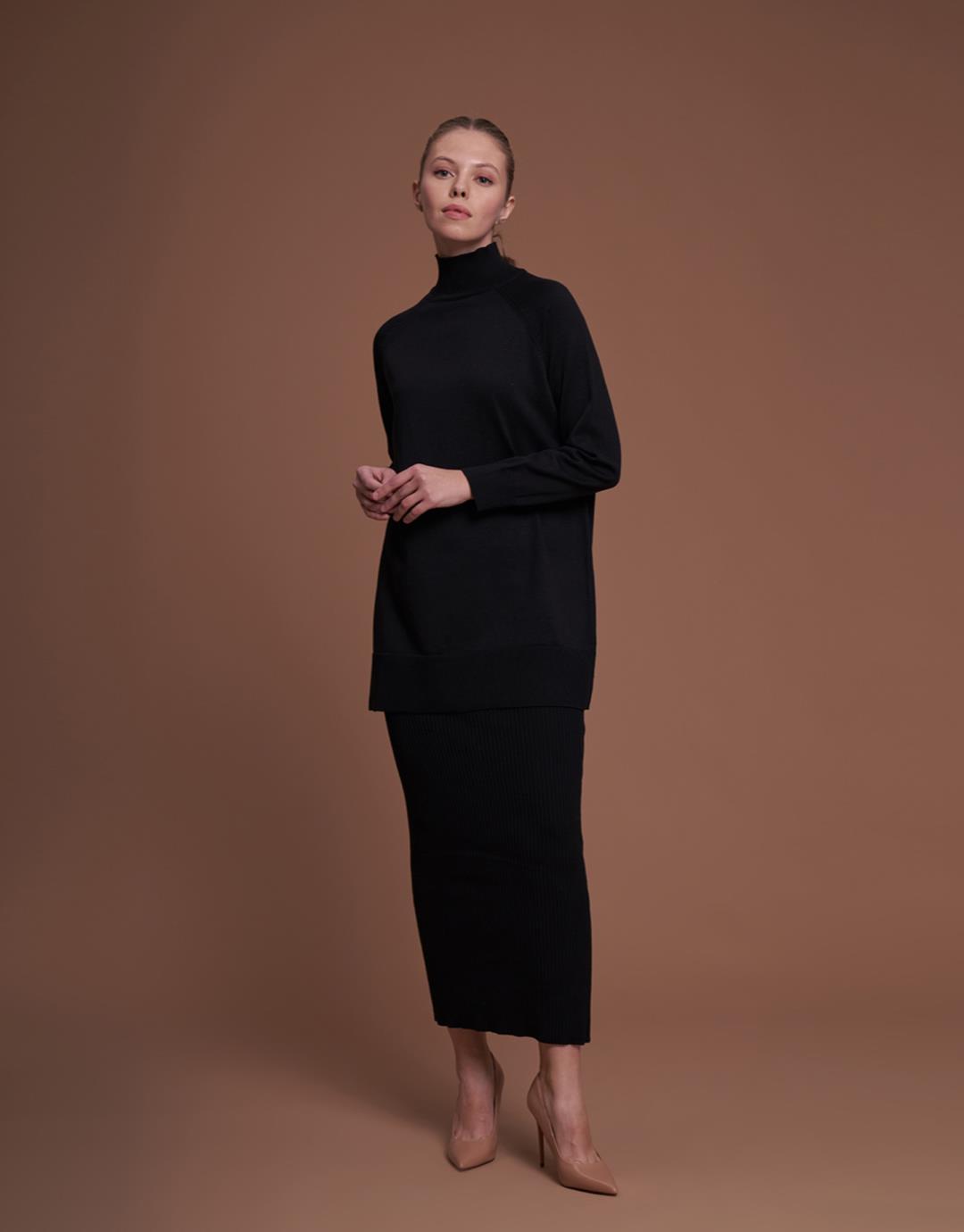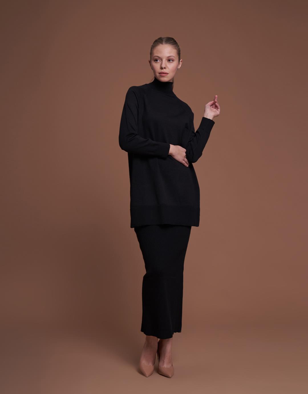 Knitwear Turtleneck Long Sweater – Black – 14096-19