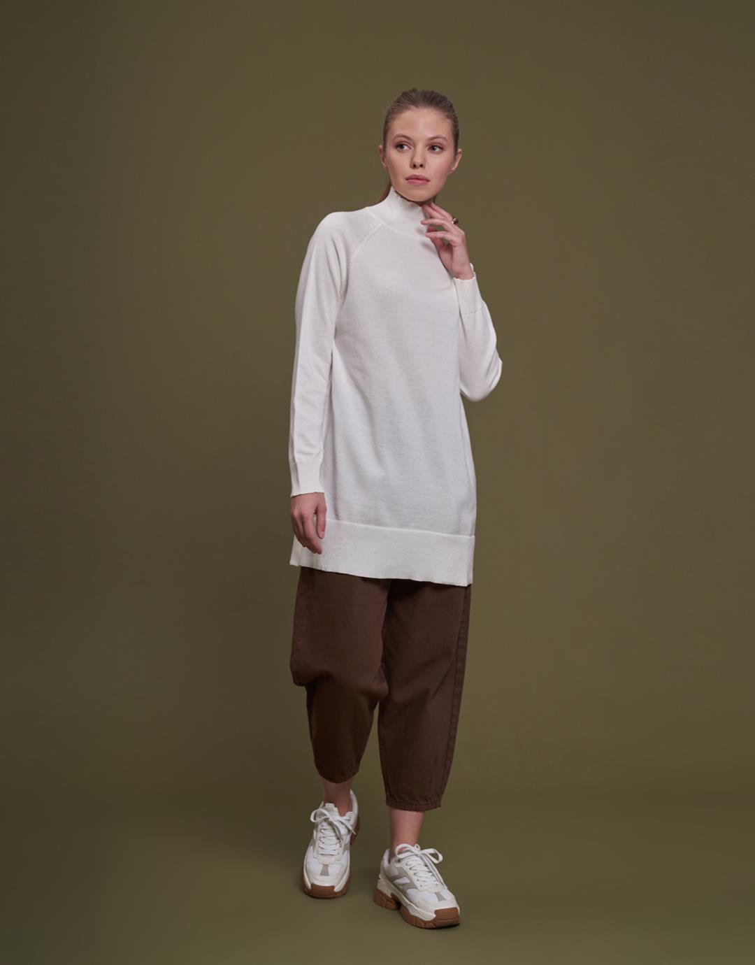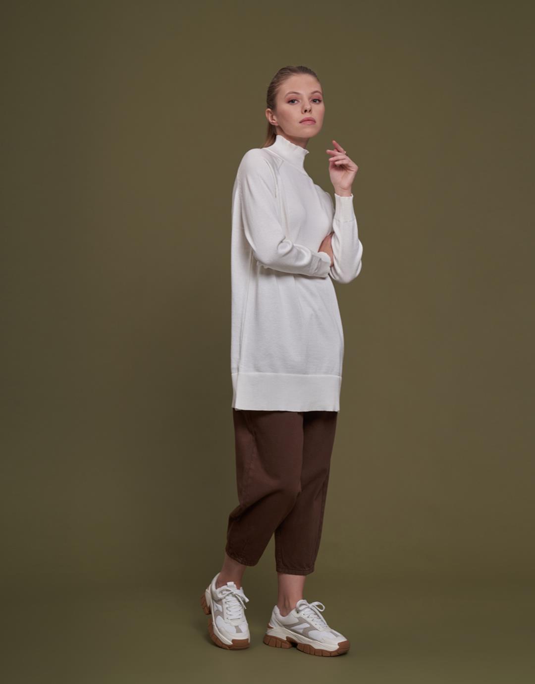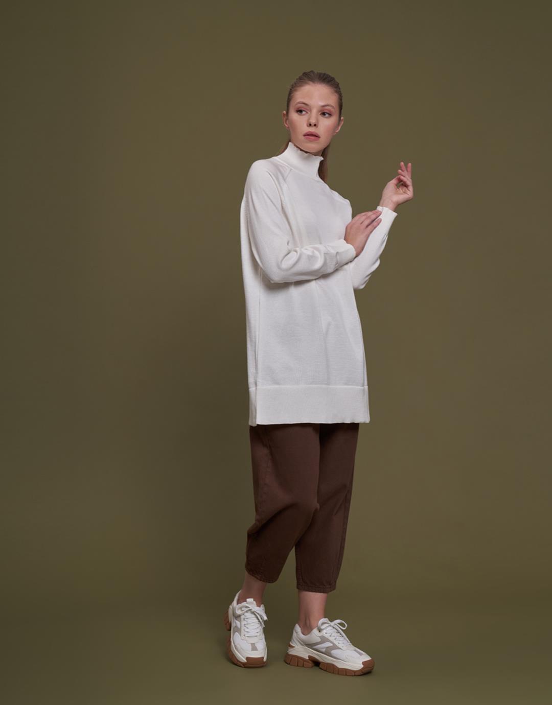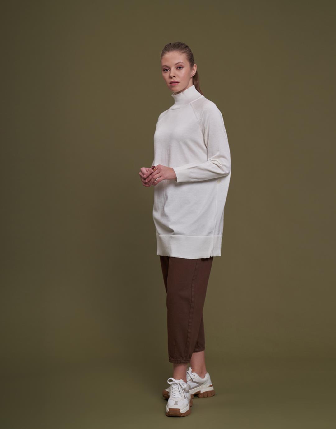 Knitwear Turtleneck Long Sweater – Ecru – 14096-19