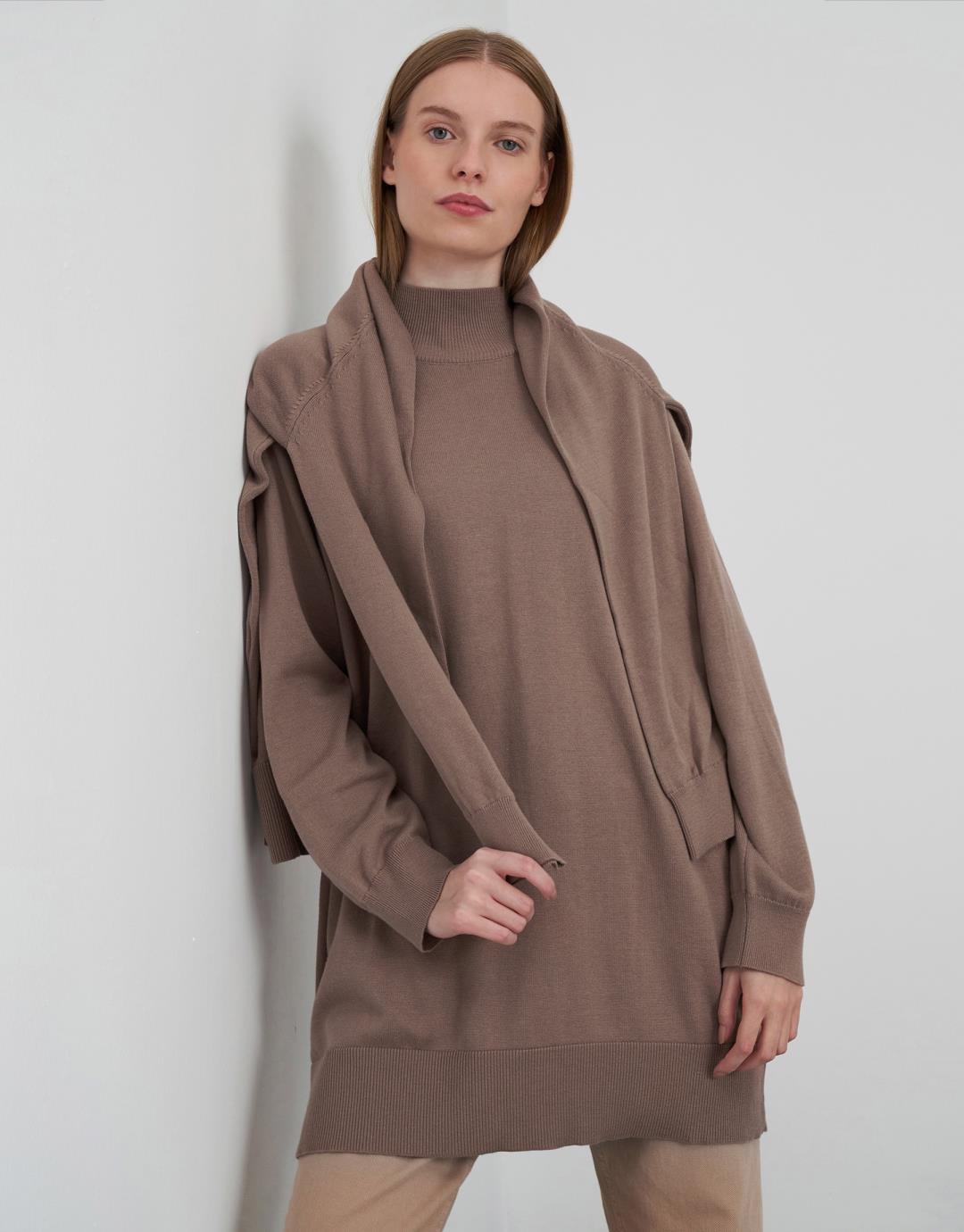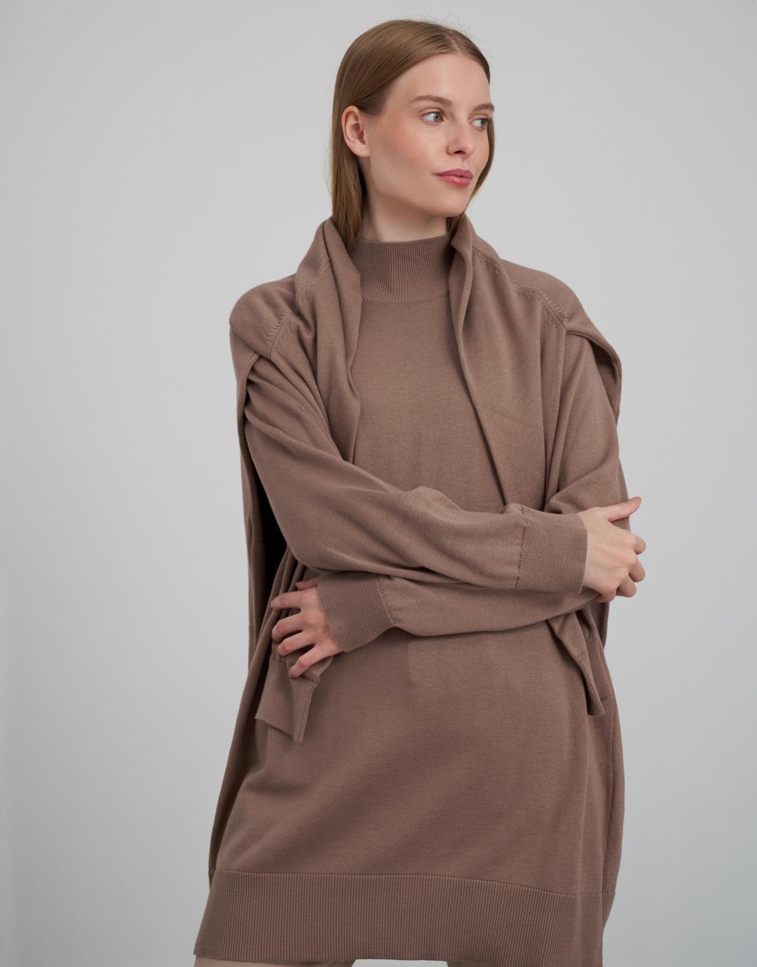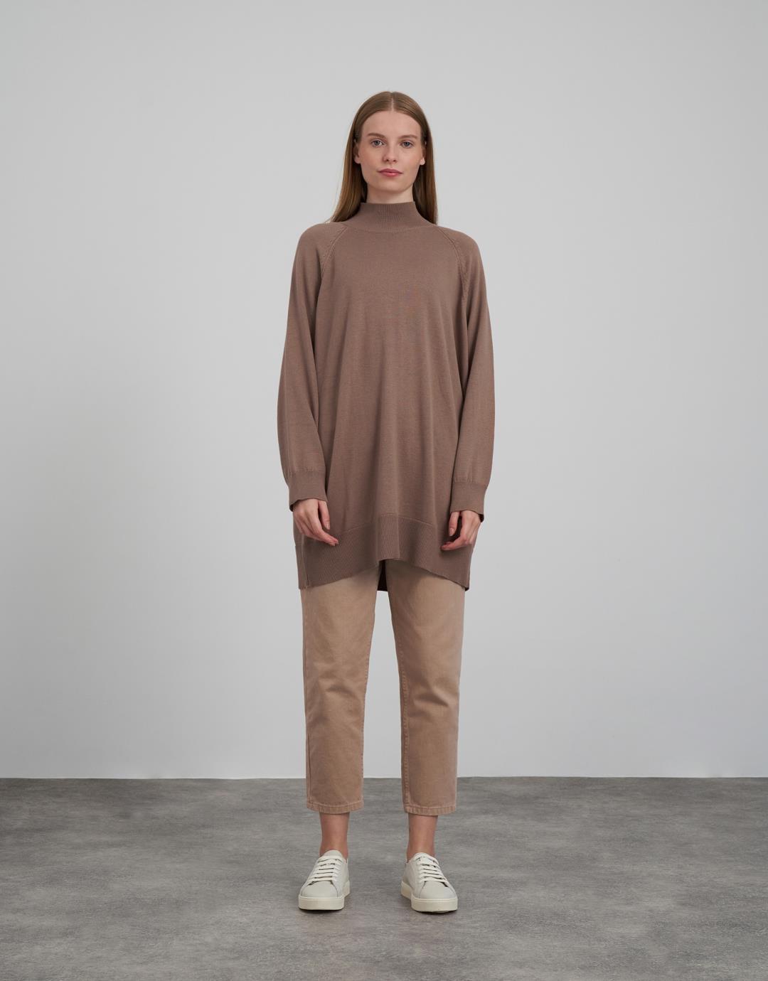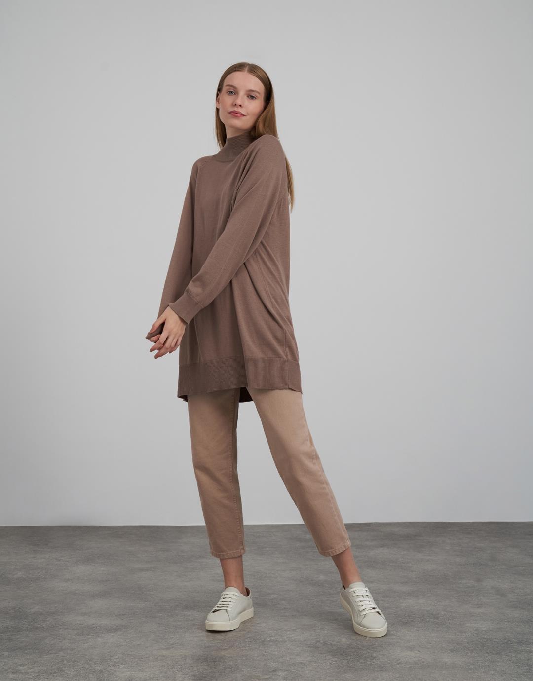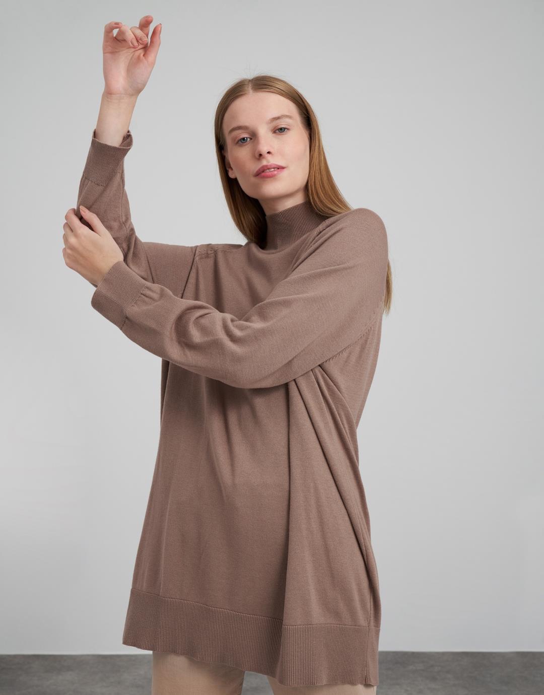 Knitwear Turtleneck Long Sweater – Mink Color – 14096-20