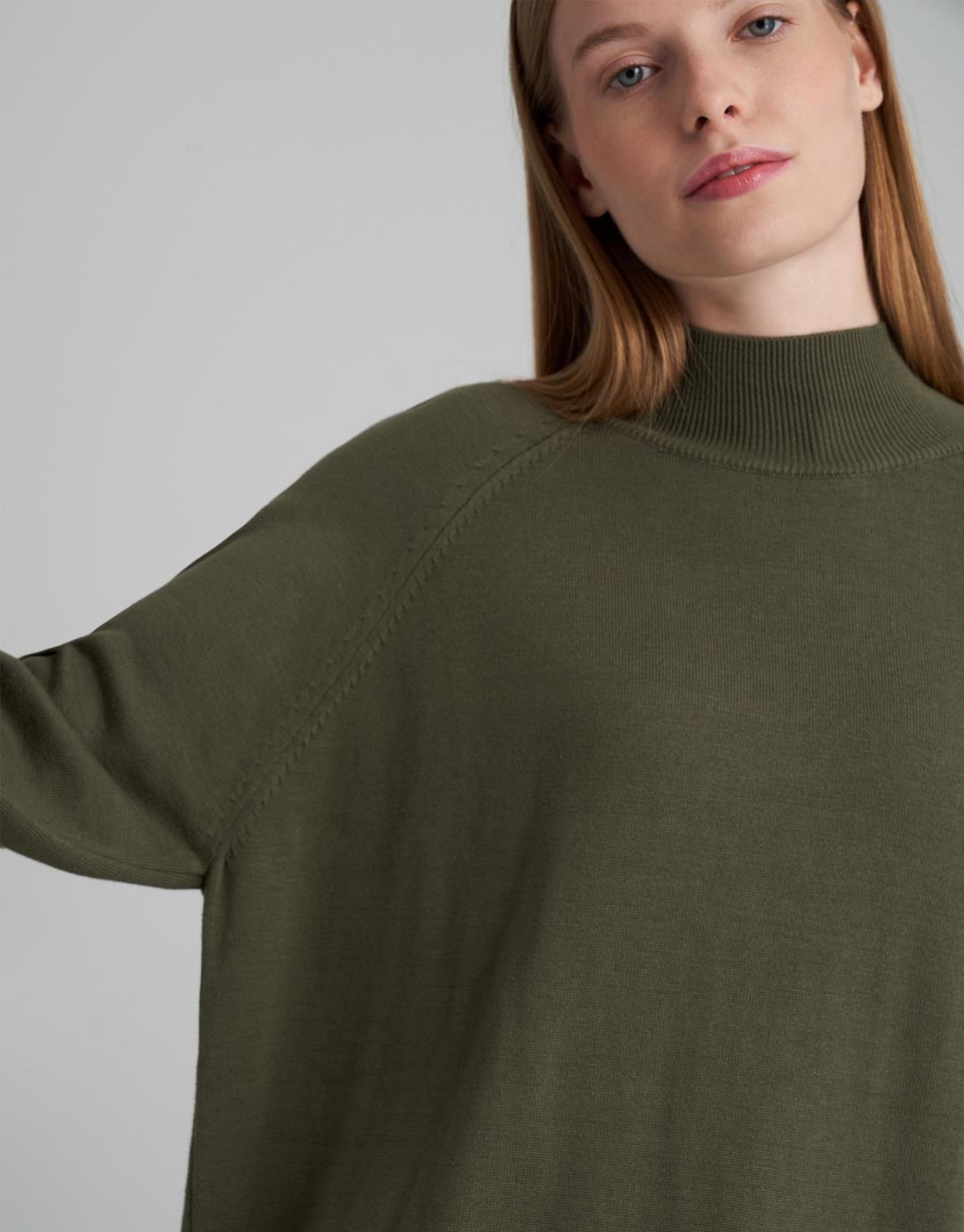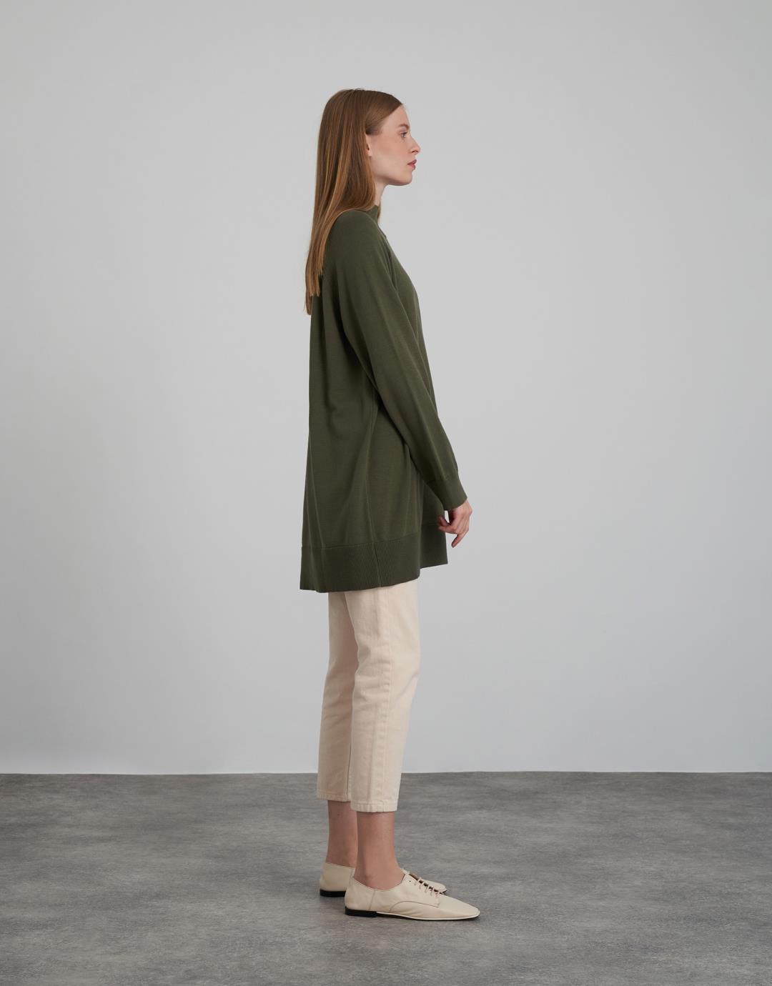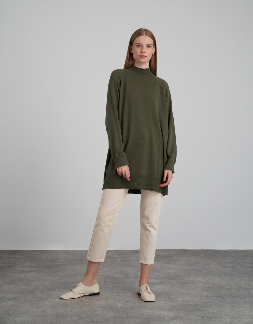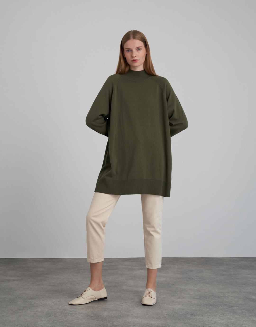 Fabric Content: 50 % acrylic 50 % cotton Fabric Info: Knitted Arm Detail Long Product Details: Turtleneck Mould Information: Loose Model Size : 36 Model Height : 1.78 The product on the Model is size 1. Usage and Washing Instructions : Recommended Dry cleaning.