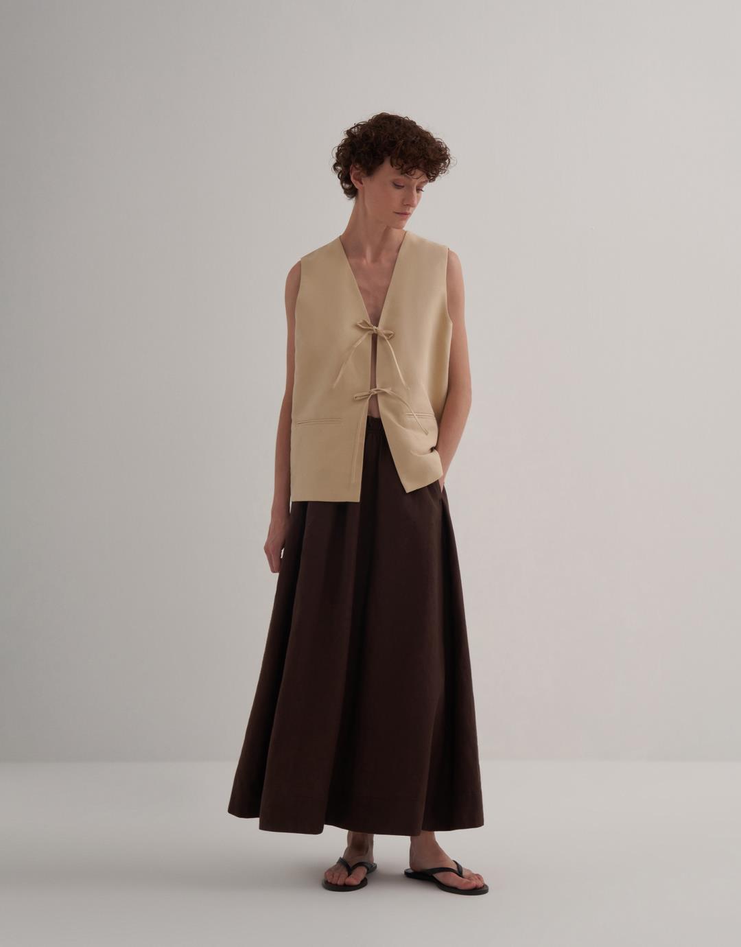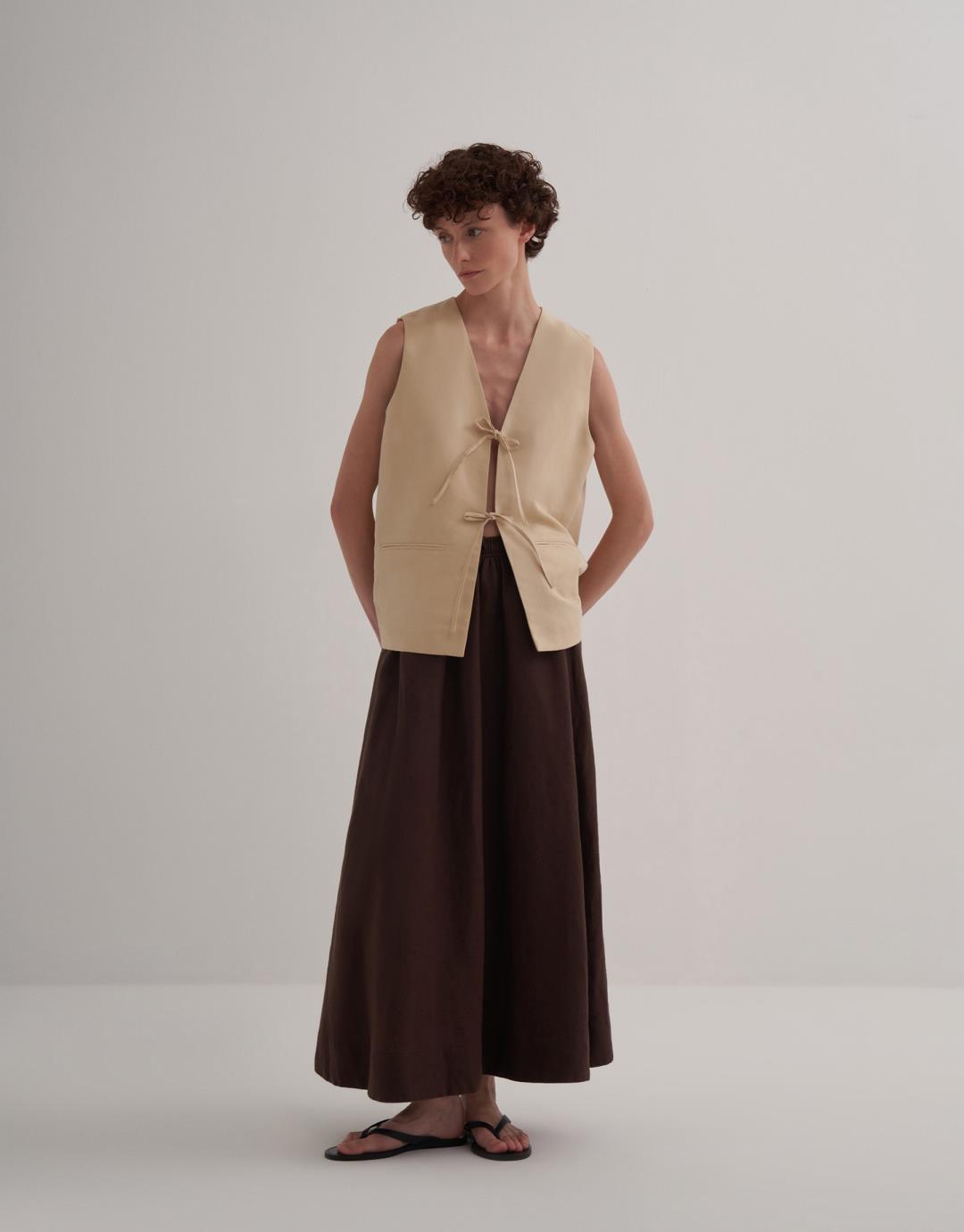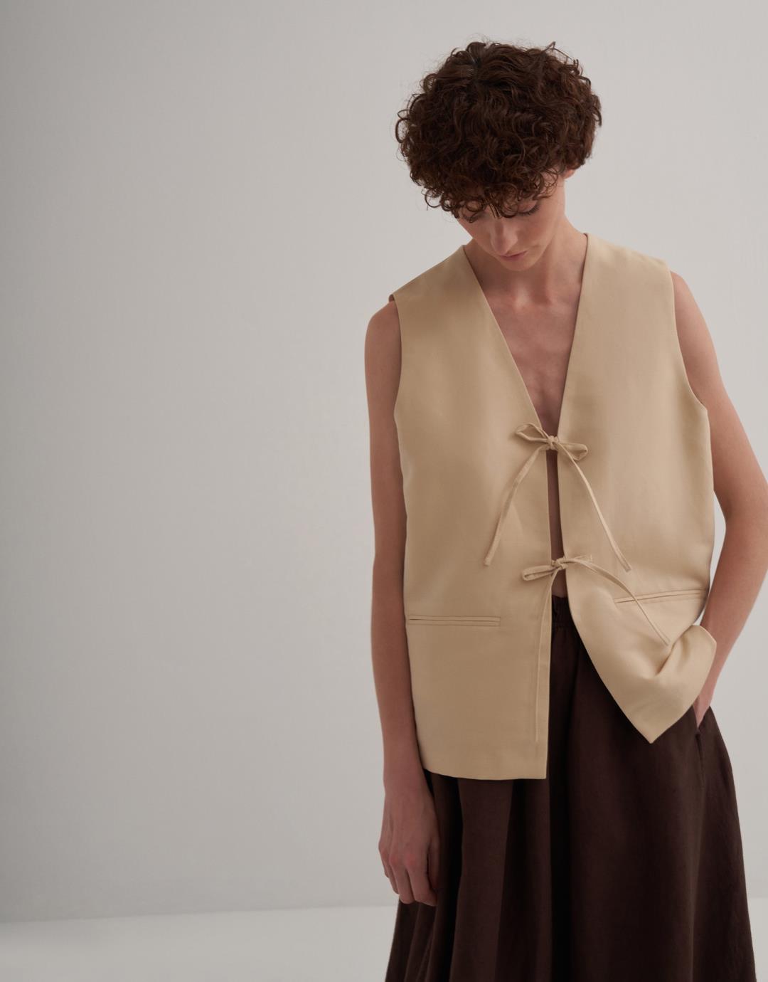 Fabric Content: 56% LI 44% CO Product Details: V-neck. Sleeveless. Vest with lace front Model Size: 36 Model Height: 1.72 The product on the model is size 36. Usage and Washing Instructions: Tetrachlorethylene Dry Cleaning. Roller cleaning is not possible. Tumble drying is not done. Bleach bleach is not used.