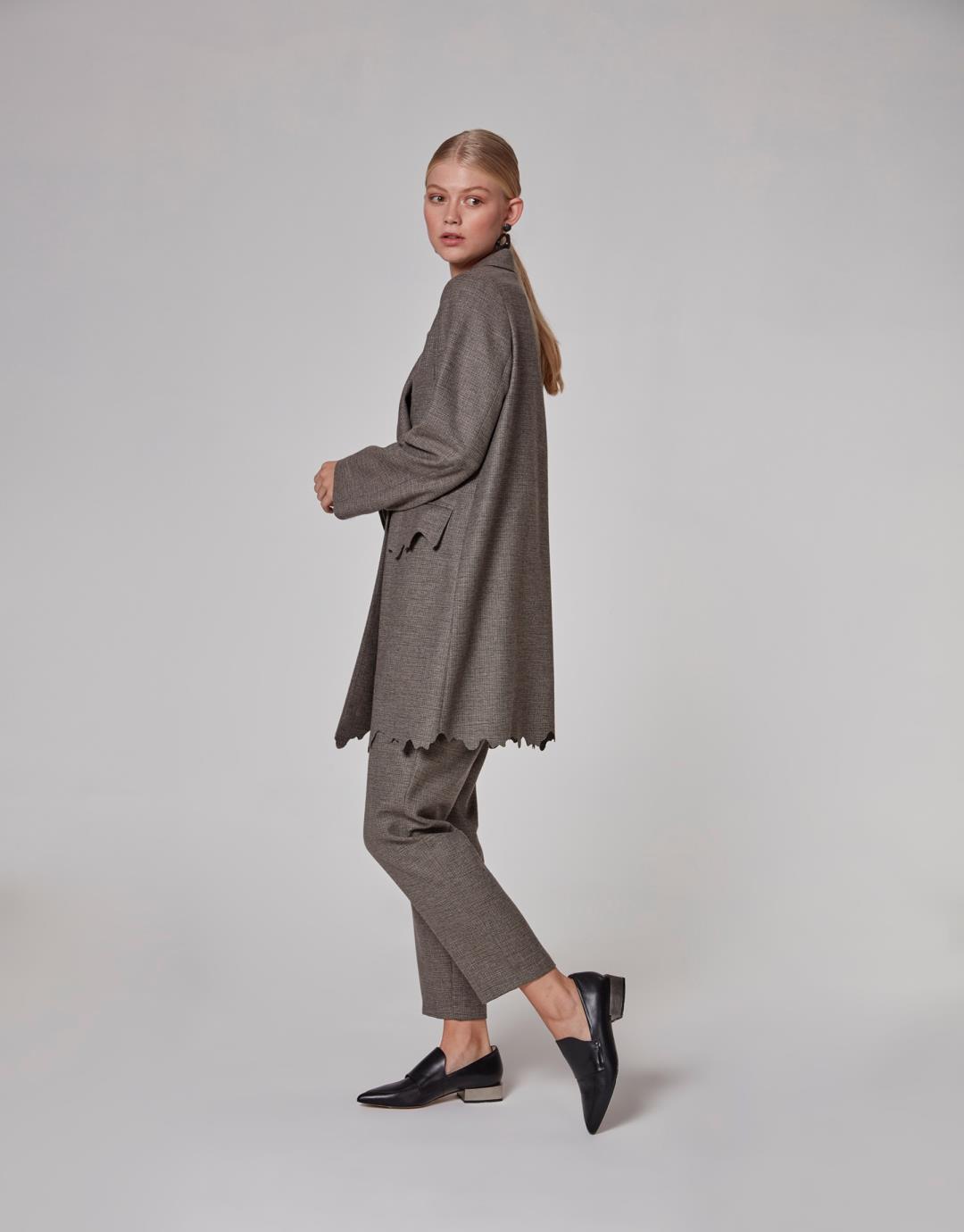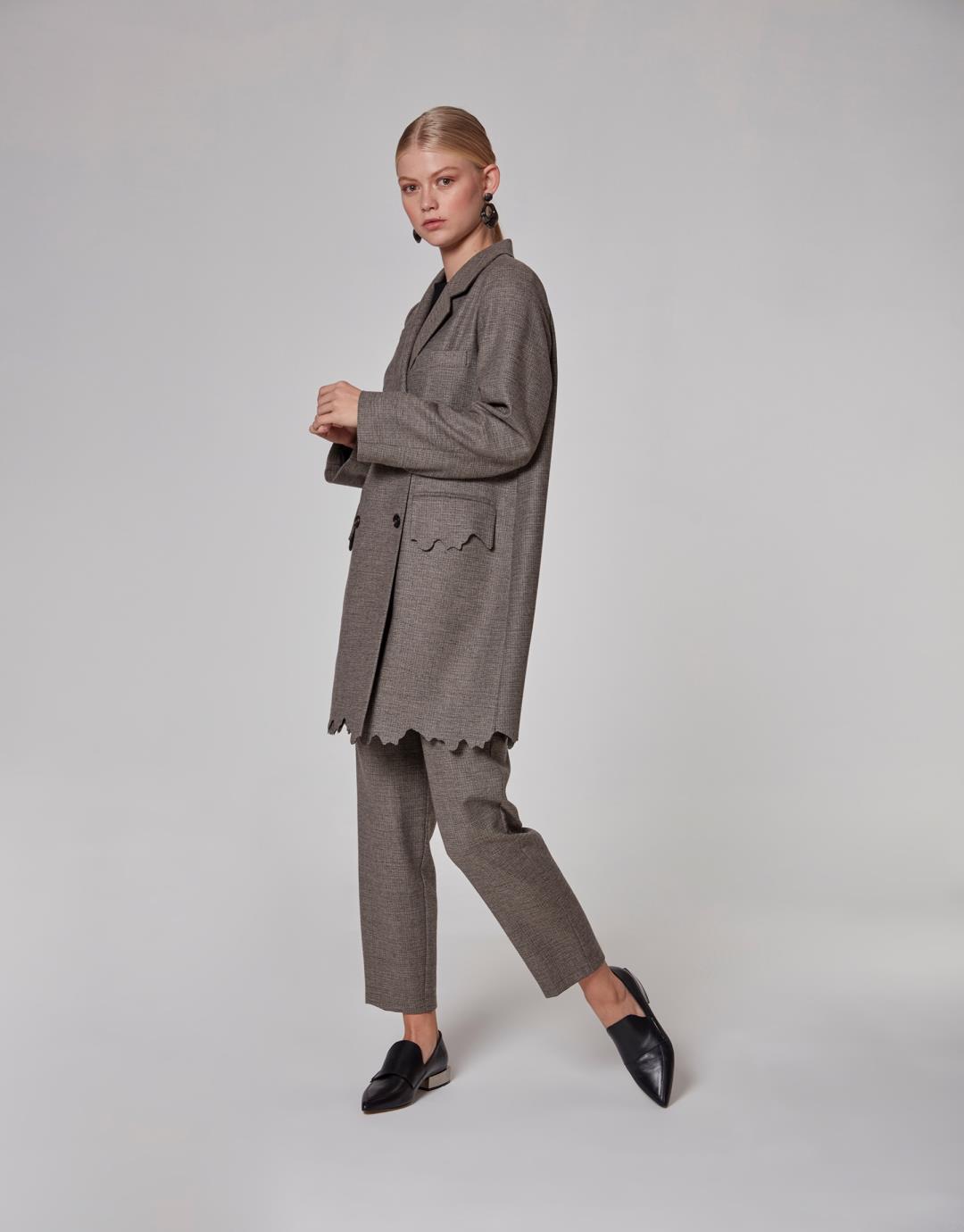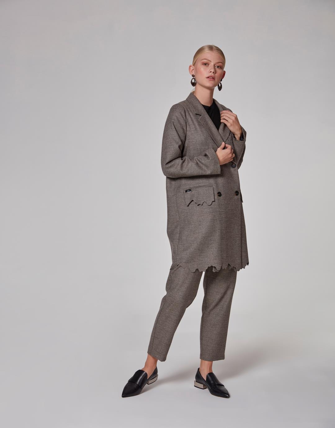 Sample Size : 36 Fabric Information : 40% Wool 60% Pes Pocket Information: 2 Pockets Usage and Washing Instructions: Dry clean. Lining Information: 100% Polyester
