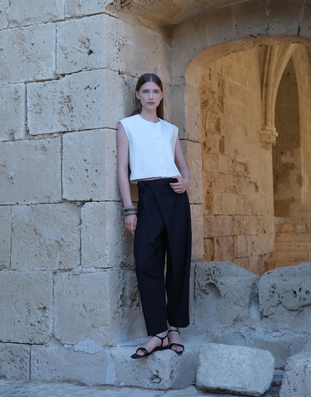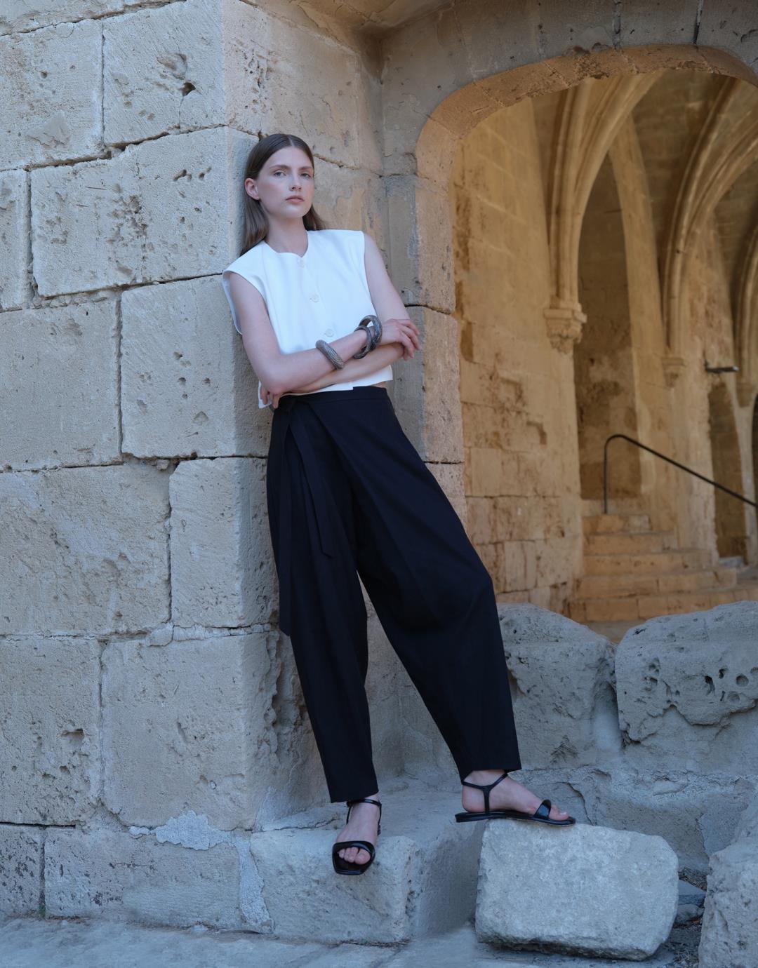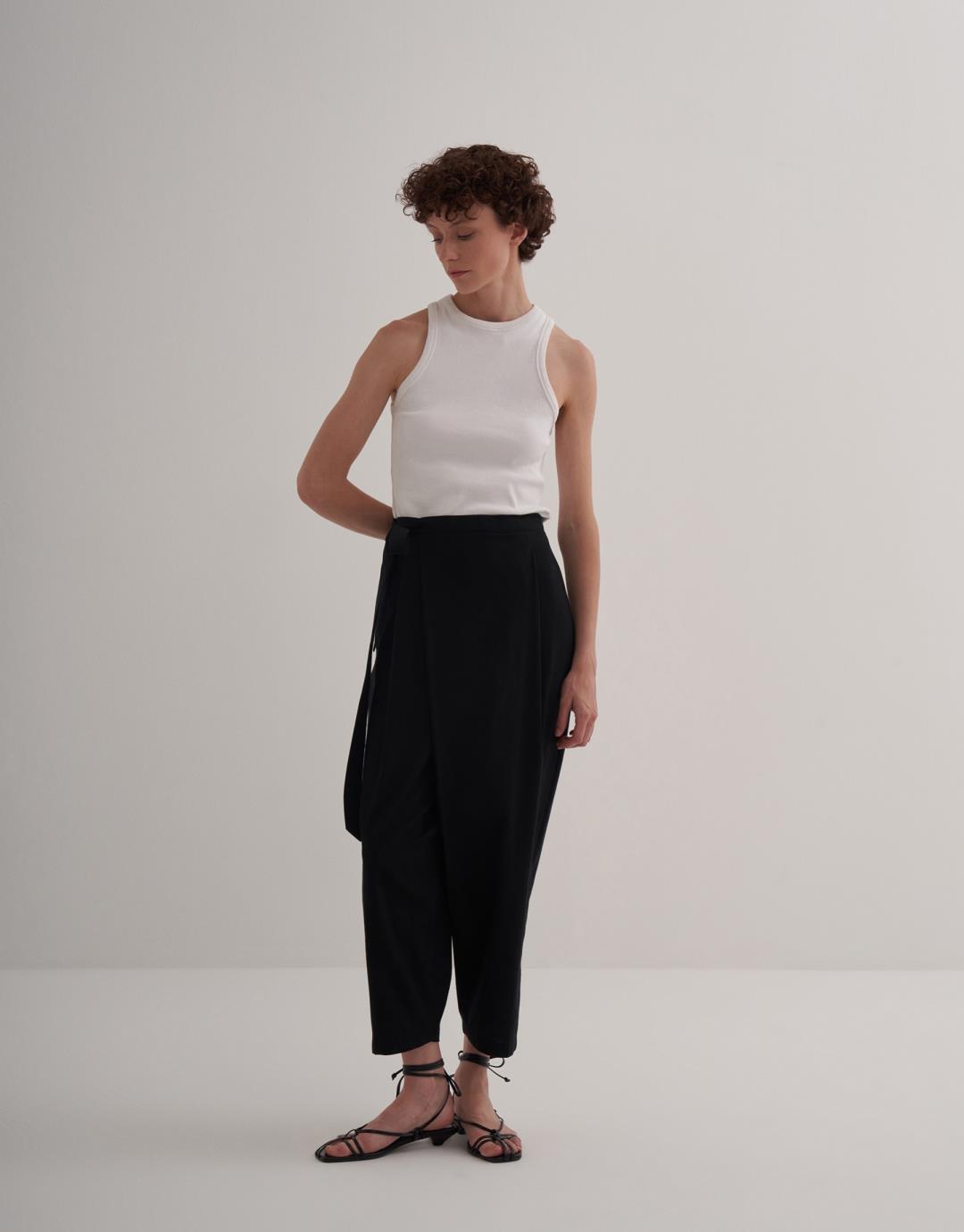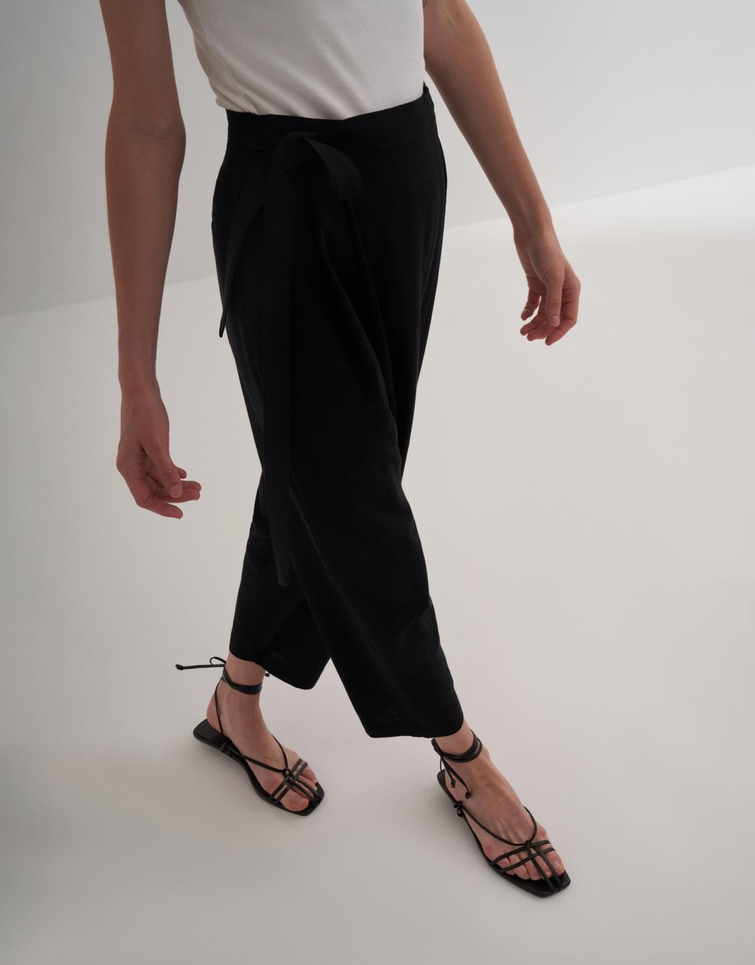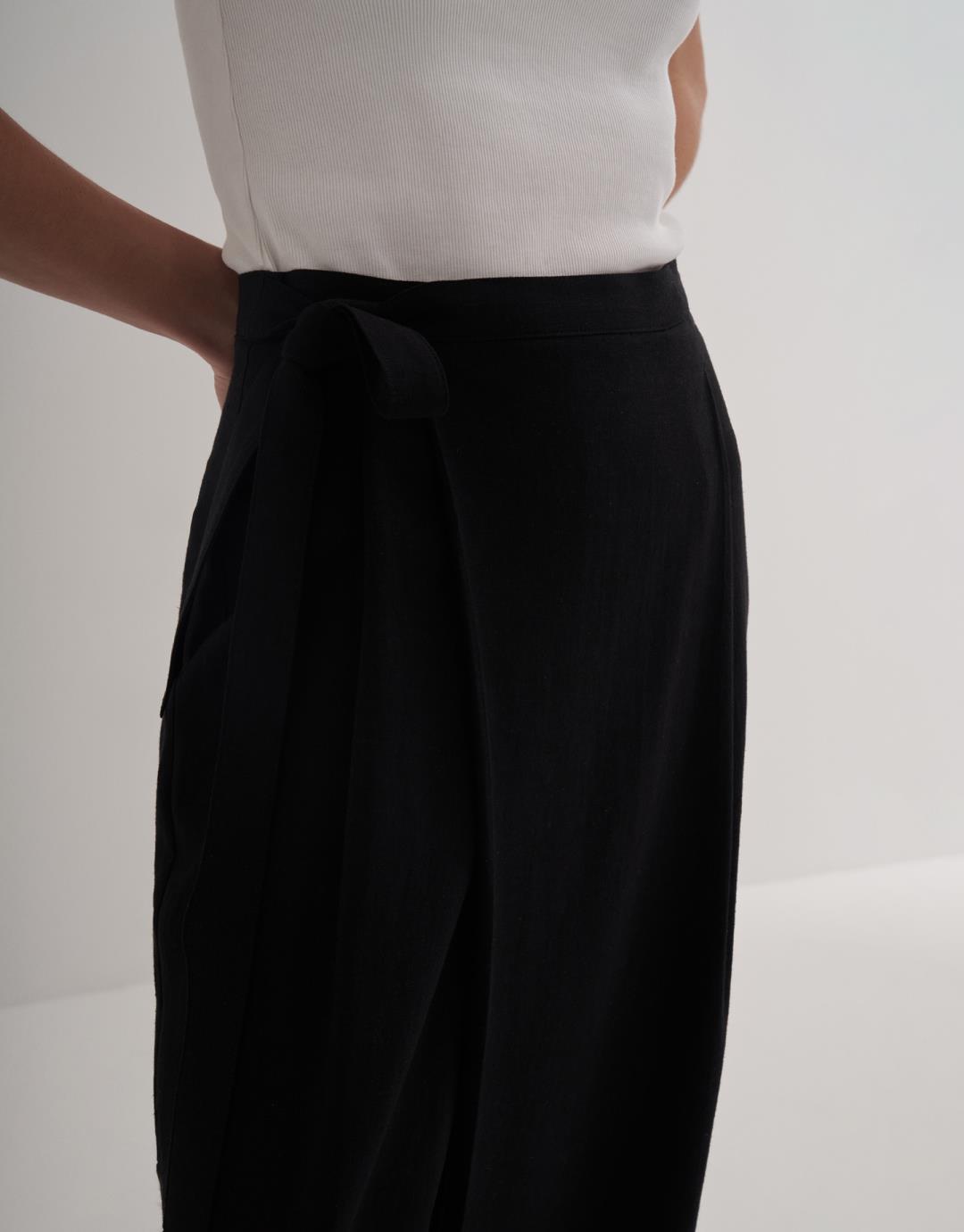 Linen Wrap Trousers – Black – 24205