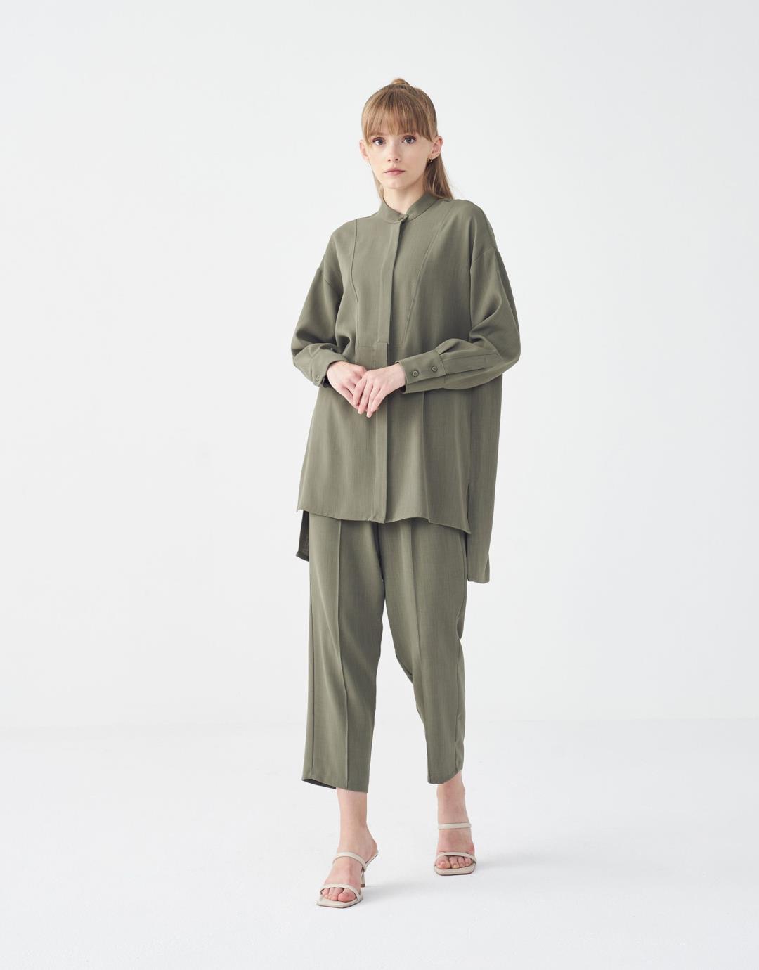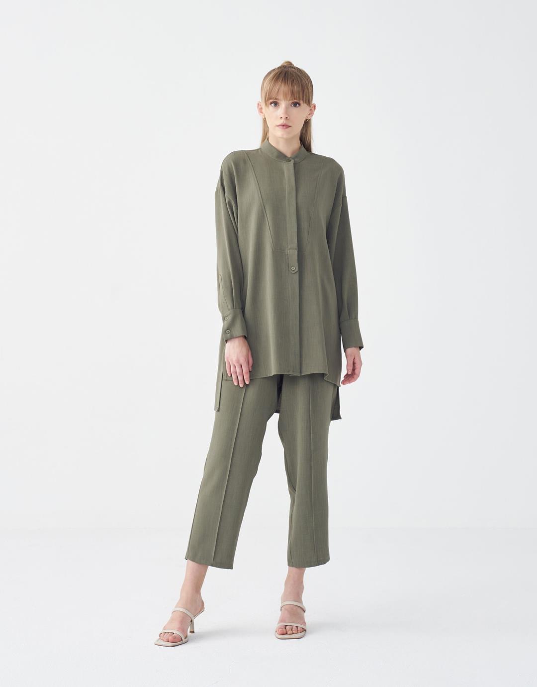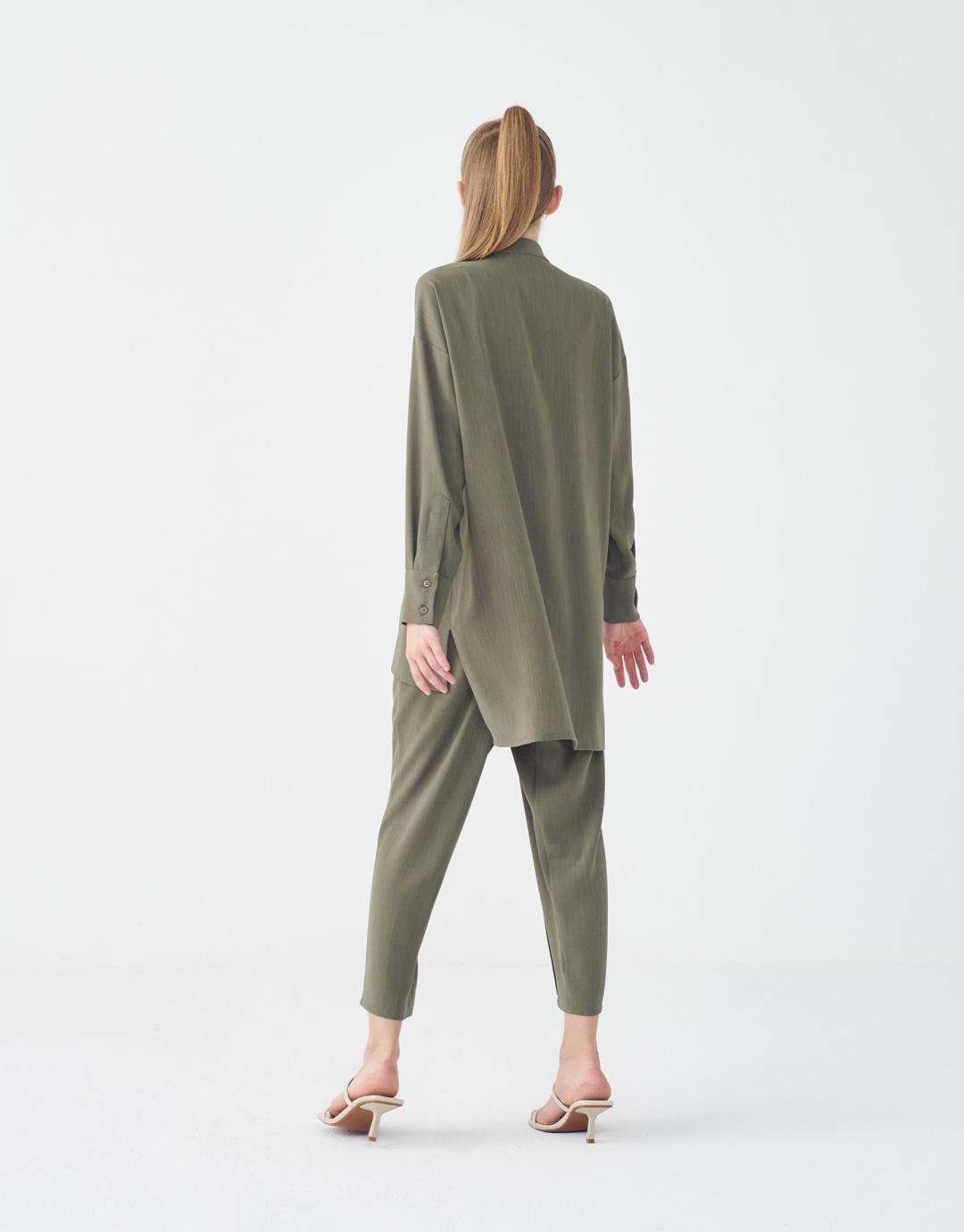 Fiber Content: 100% PES Model Size : 36 Model Height : 1.74 The product on the model is size S/M. Usage and Washing Instructions : Recommended Dry clean.