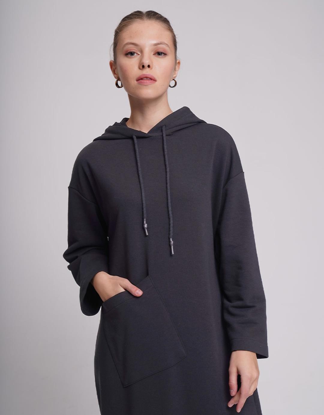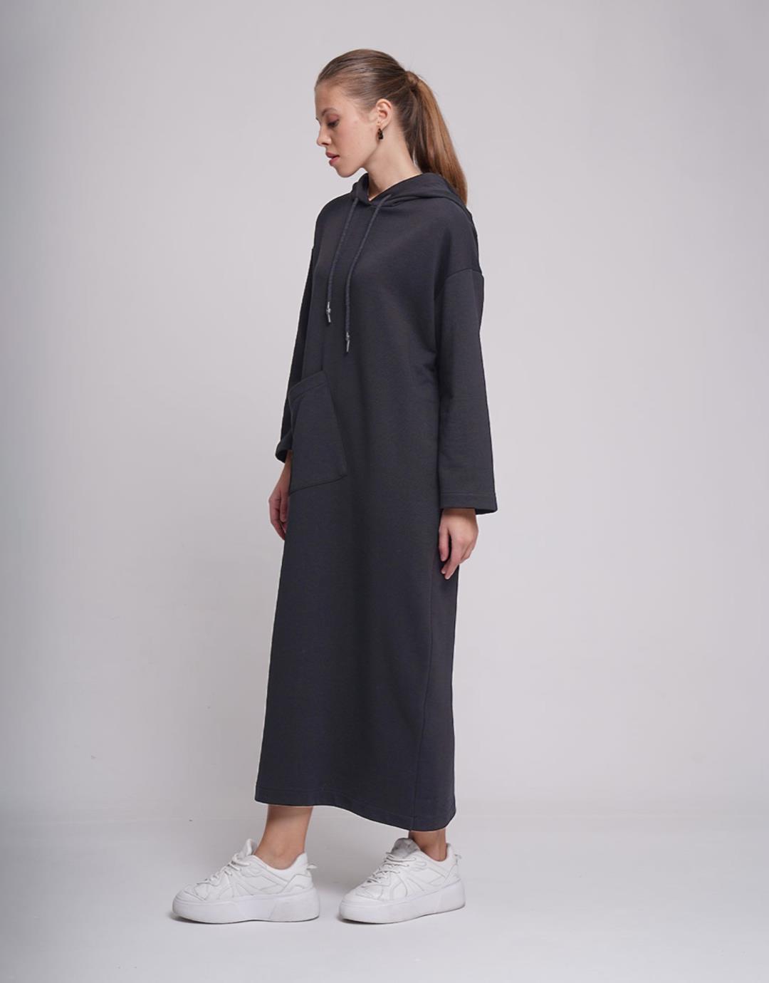 Long Three-Thread Sweat Dress – Anthracite Color – 1082