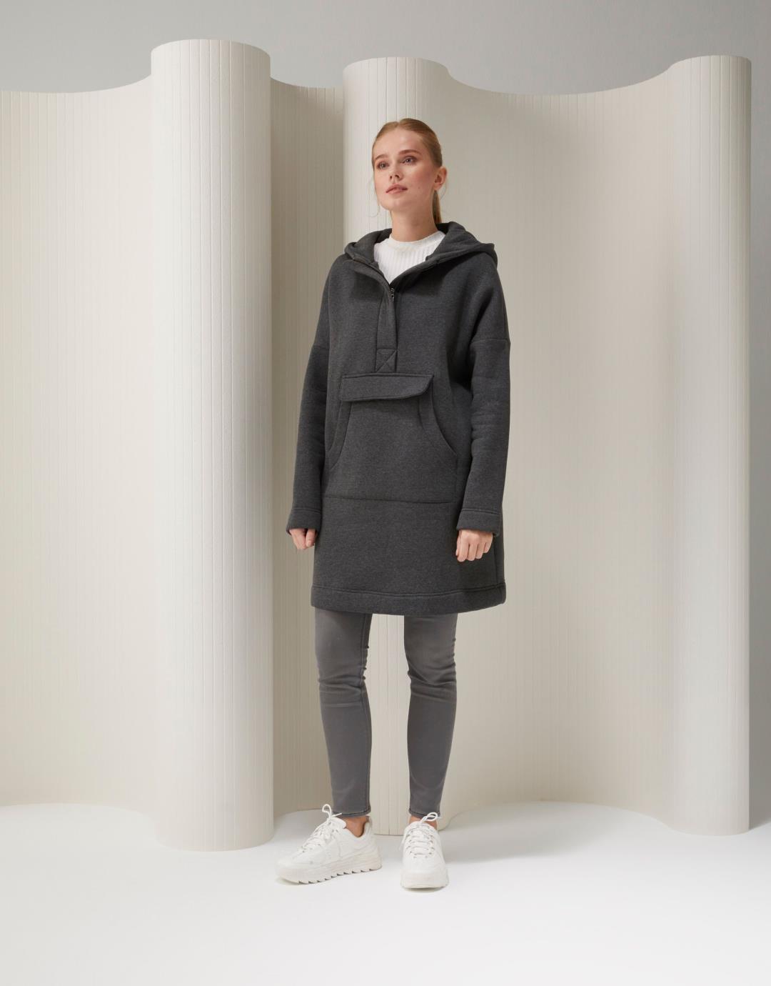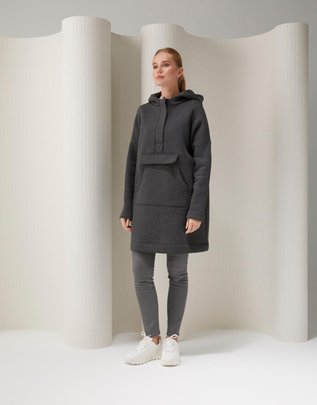 Home2019 Fall / WinterMia Sweat – Smoky – 25288 Mia Sweat – Smoky – 25288 Category: 2019 Fall / Winter Product ID: 21363 Description Description Product Length: 85cm Size on Model: Standard Model Dimensions: Height: 1,75 Size:36 Chest:82 / Waist:60 / Hips:91