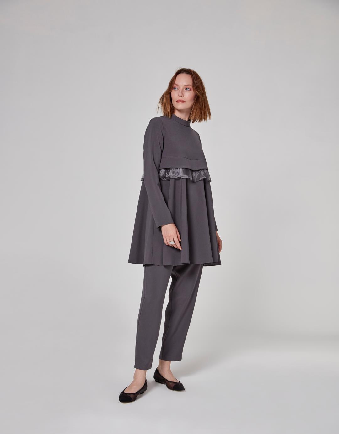 Home2020 Fall / WinterOrganza Frilly Ella Suit – Anthracite Color – 1065 Organza Frilly Ella Suit – Anthracite Color – 1065 Category: 2020 Fall / Winter Product ID: 22697 Description Description Sample Size : 36 Fabric Information : Crepe 98% Pes 2% Lycra Usage and Washing Instructions: Dry clean.