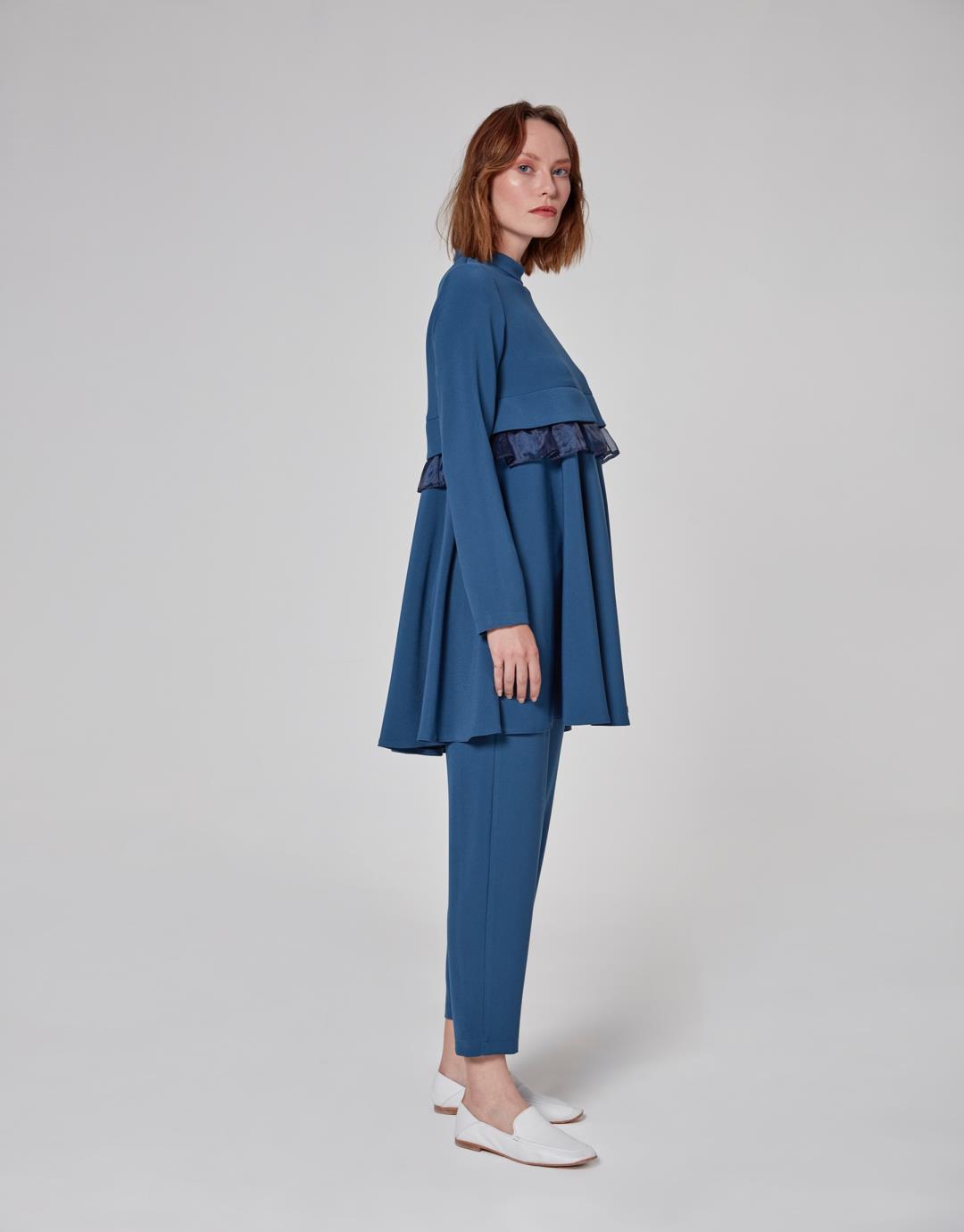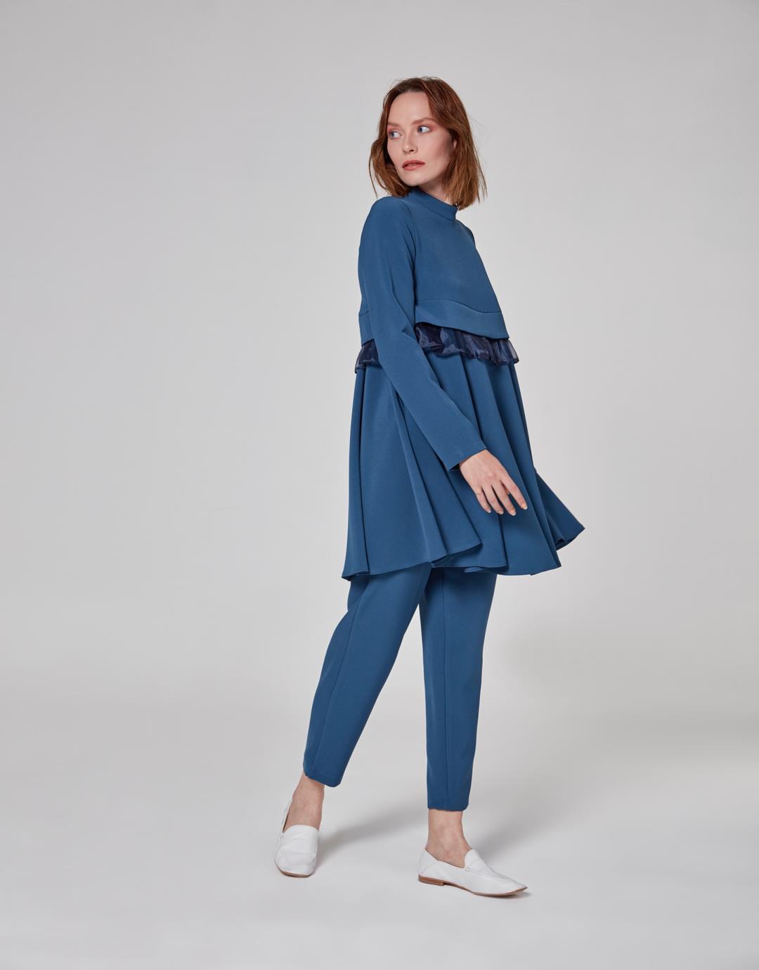 Home2020 Fall / WinterOrganza Frilly Ella Suit – Indigo – 1065 Organza Frilly Ella Suit – Indigo – 1065 Category: 2020 Fall / Winter Product ID: 22708 Description Description Sample Size : 36 Fabric Information : Crepe 98% Pes 2% Lycra Usage and Washing Instructions: Dry clean.