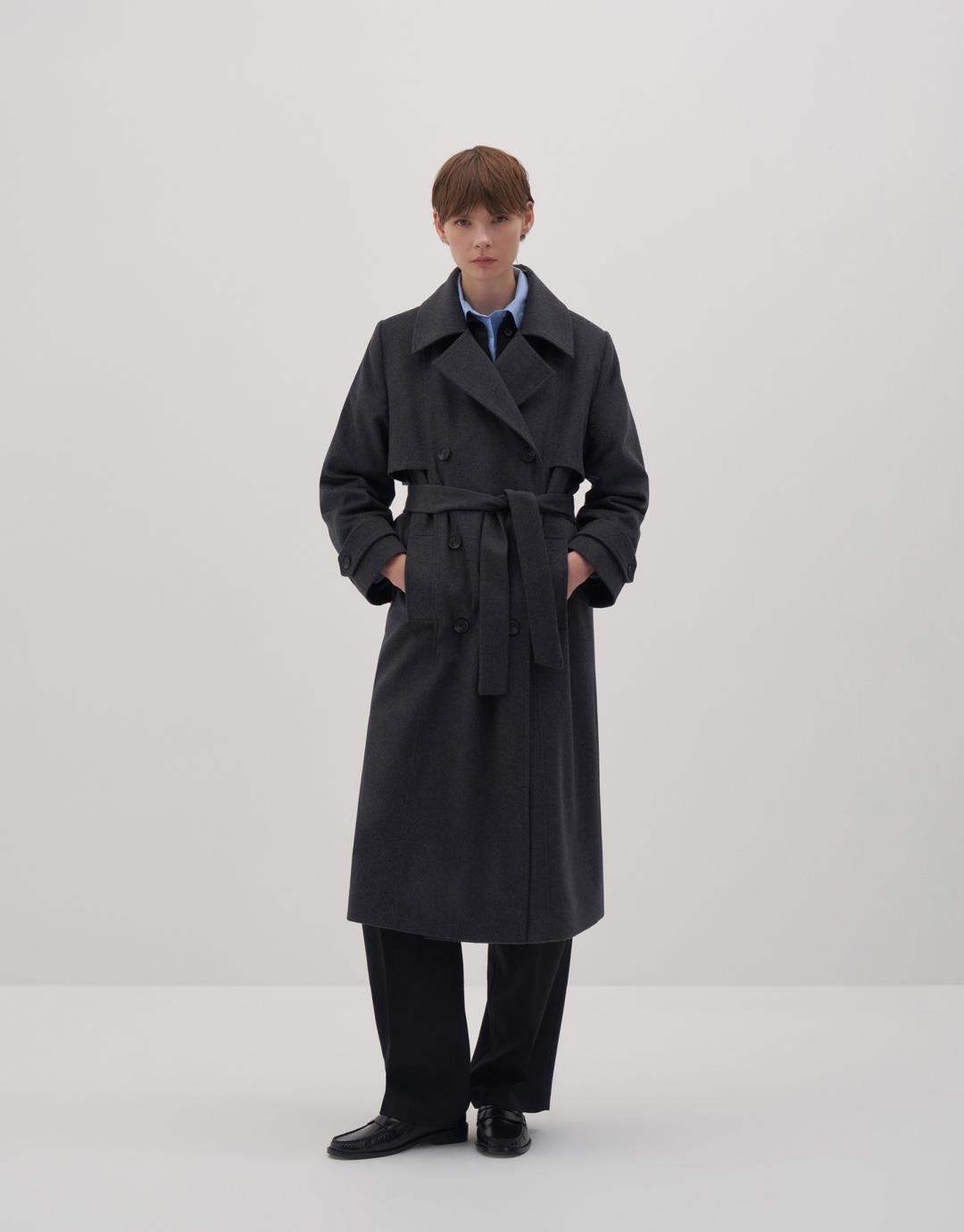 Fabric Content: %60 WOOL %40 PES Product Details: Double-breasted button closure. Folded collar. Belted. Front welt pockets. Long sleeves with buttoned bands. Model Size: 36 Model Height: 1.78 The product on the model is Size 36. Usage and Washing Instructions: Tetrachloroethylene Dry Cleaning. Roller cleaning is not allowed. Tumble drying is not allowed. Bleach and bleach are not used.