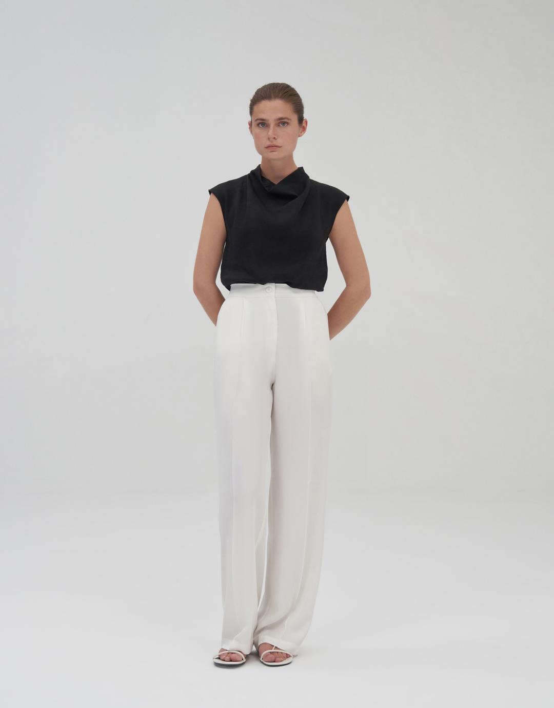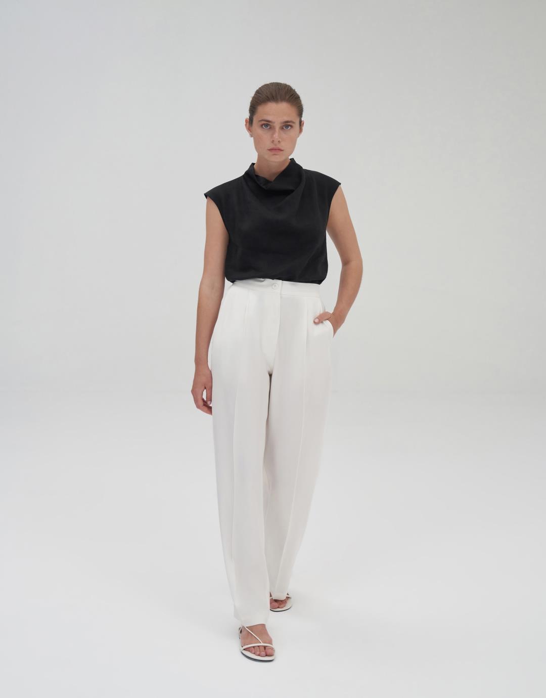 Fabric Content: 100%CV Product Details: Pleated detail at waist. Zipper closure at front. Model Size: 36 Model Height: 1.78 The product on the model is size 36. Usage and Washing Instructions: Hand wash at maximum 30ºC. Bleach bleach is not used. Roller Cleaning is Not Made. Wash inside out. Tetrachlorethylene Dry Cleaning. Dryer is not used.