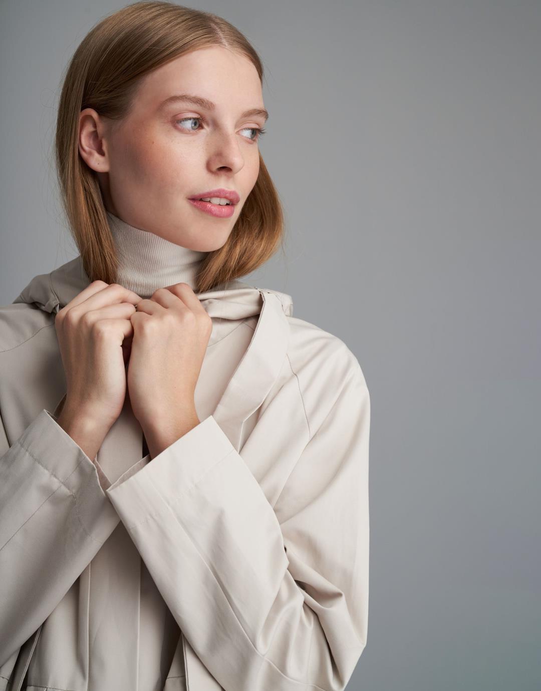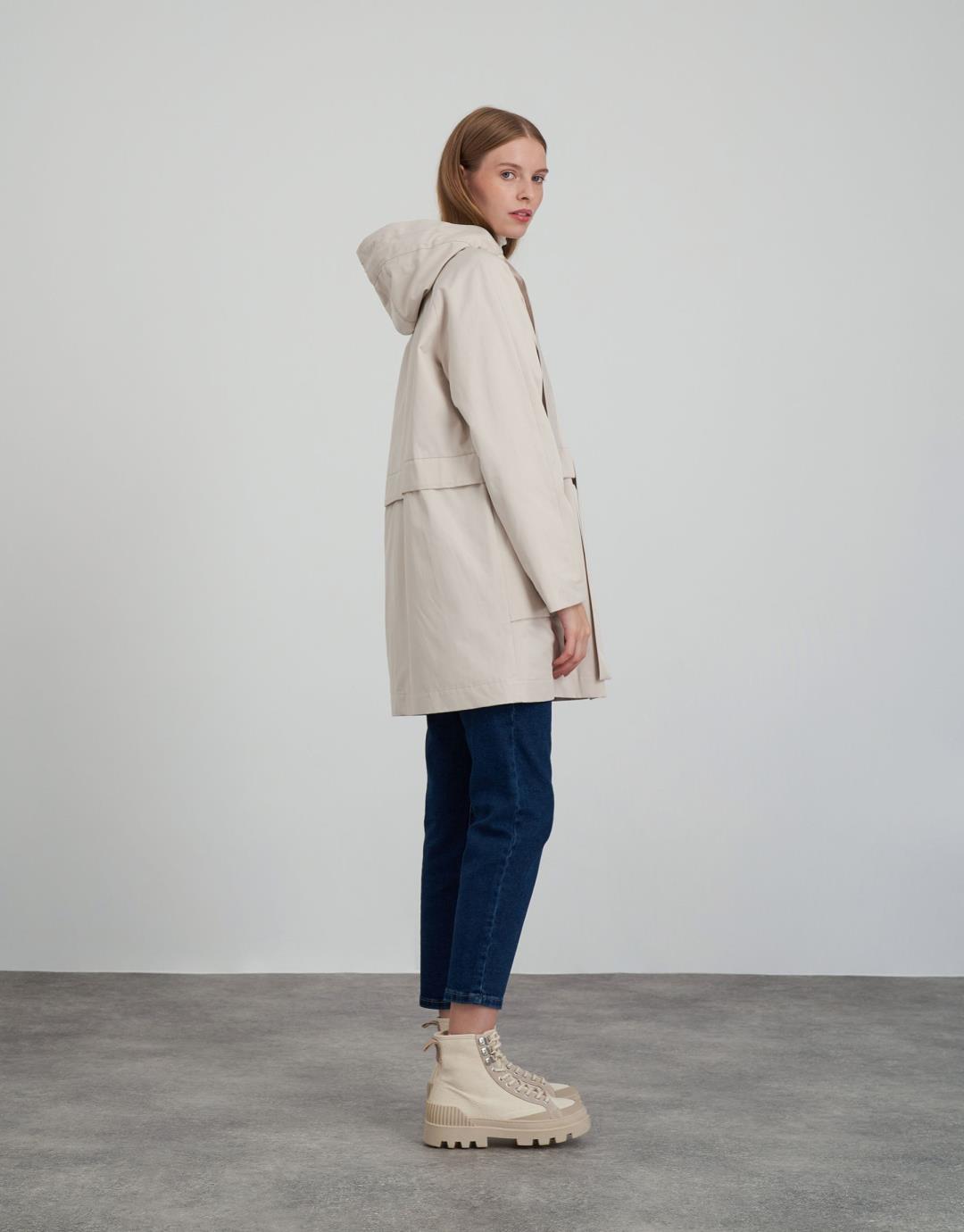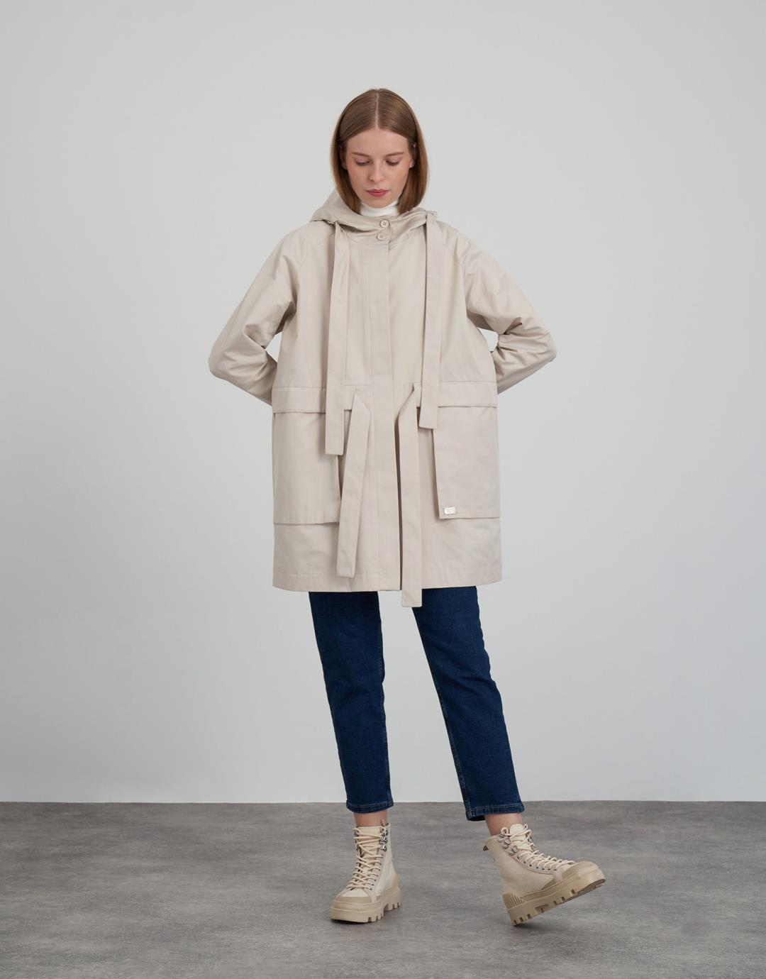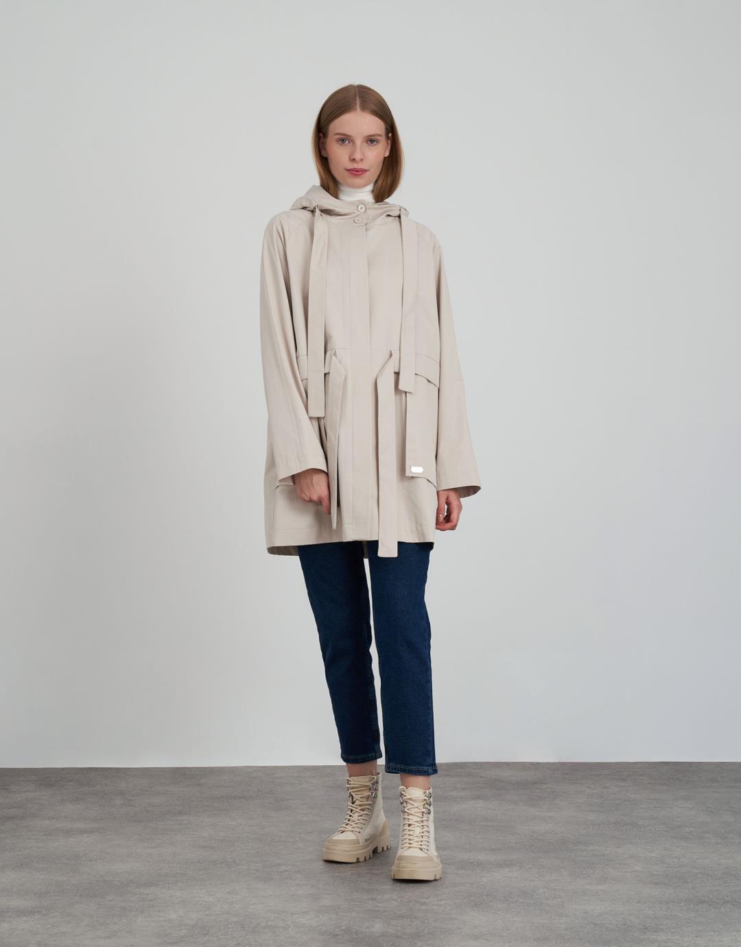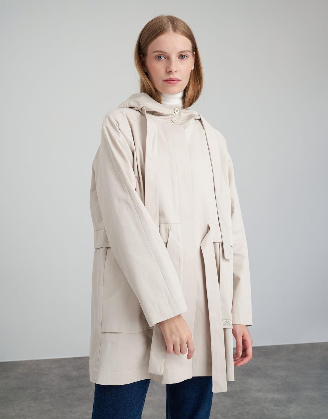 Fabric Content: 55%cotton 45% pes Fabric Information: Woven Pocket Info : 2 Pockets Lining Information: 100% cotton Sleeve Detail Long sleeve Product Details: Waist and hood lace-up Mould Information: Loose Model Size : 36 Model Height : 1.78 The product on the Model is size 1. Usage and Washing Instructions : Recommended Dry cleaning.