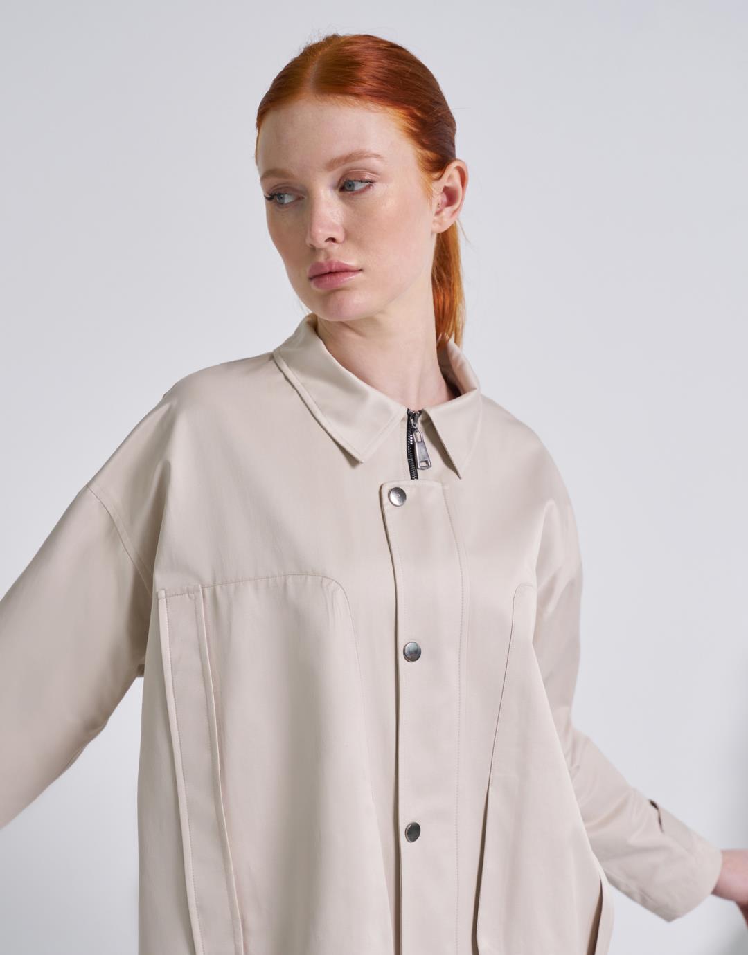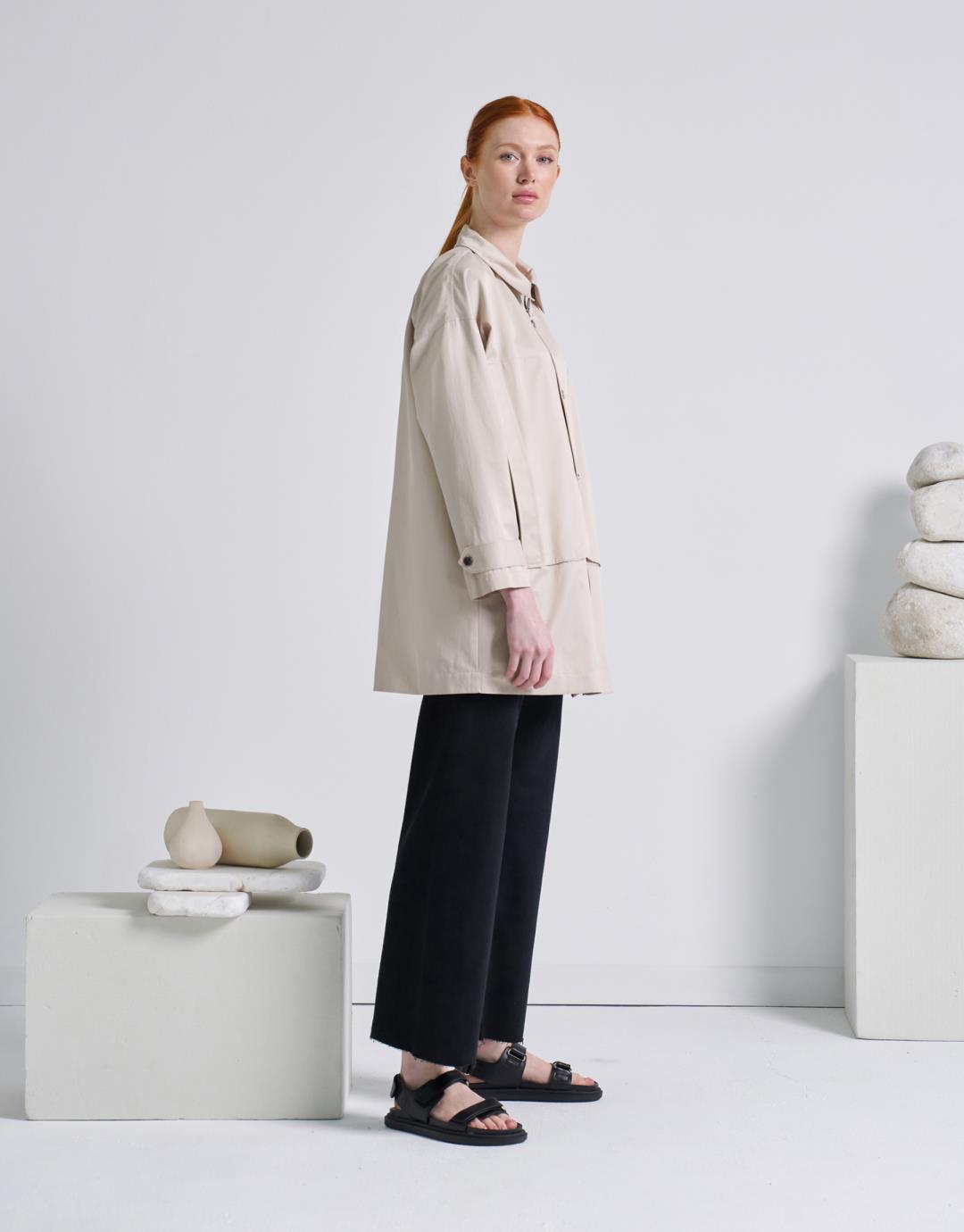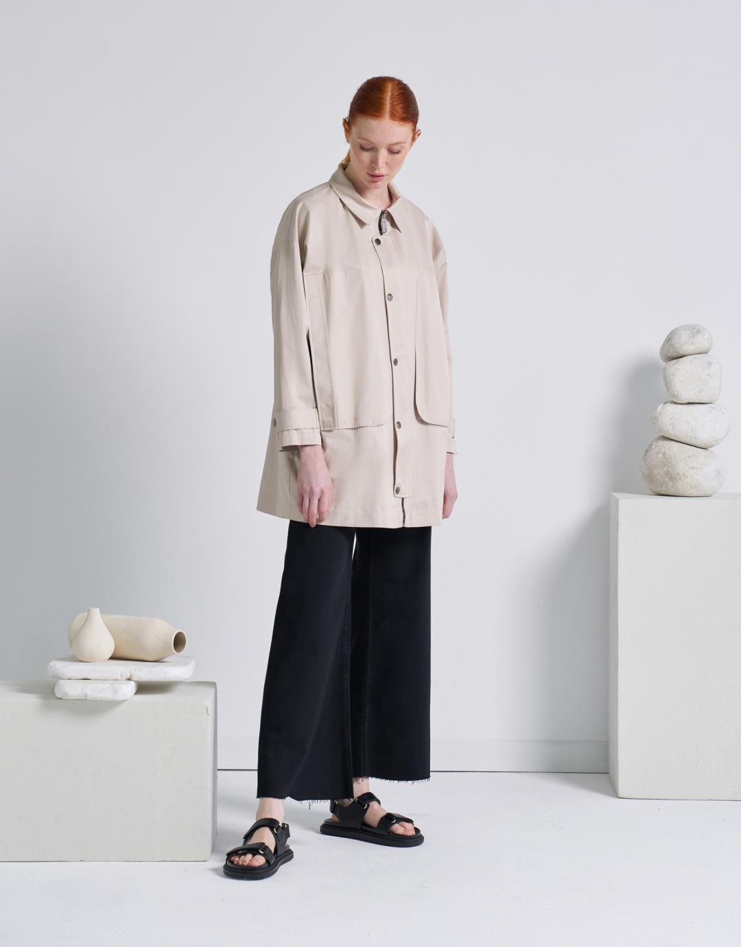 Fiber Content : 55% COTTON 45% PES Model Size : 36 Model Height : 1.78 The product on the model is size S/M. Usage and Washing Instructions : Recommended Dry clean.