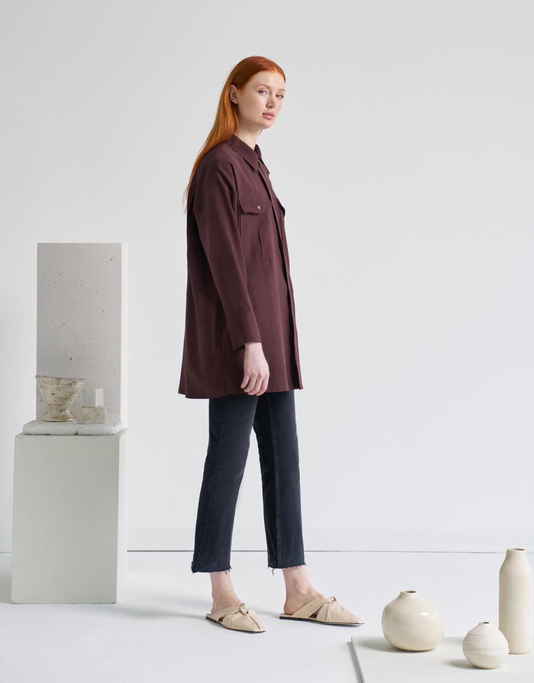 Fiber Content : 88% TENCEL 12% PES Model Size : 36 Model Height : 1.78  The product on the model is size S/M. Usage and Washing Instructions : Recommended Dry clean.