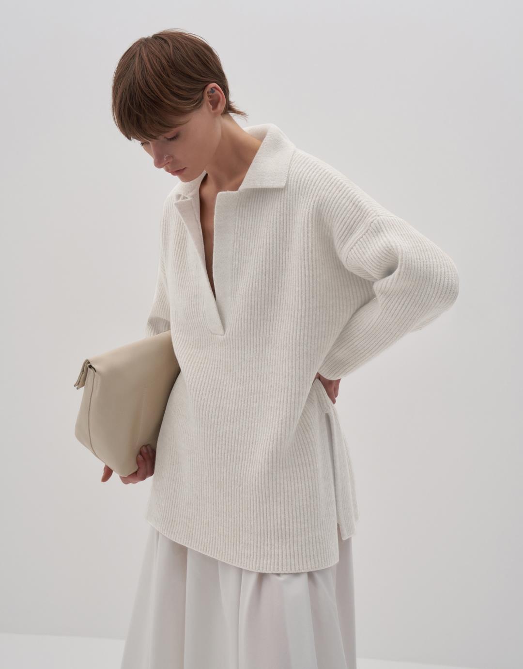 Polo Collar Sweater – Ecru – 7140