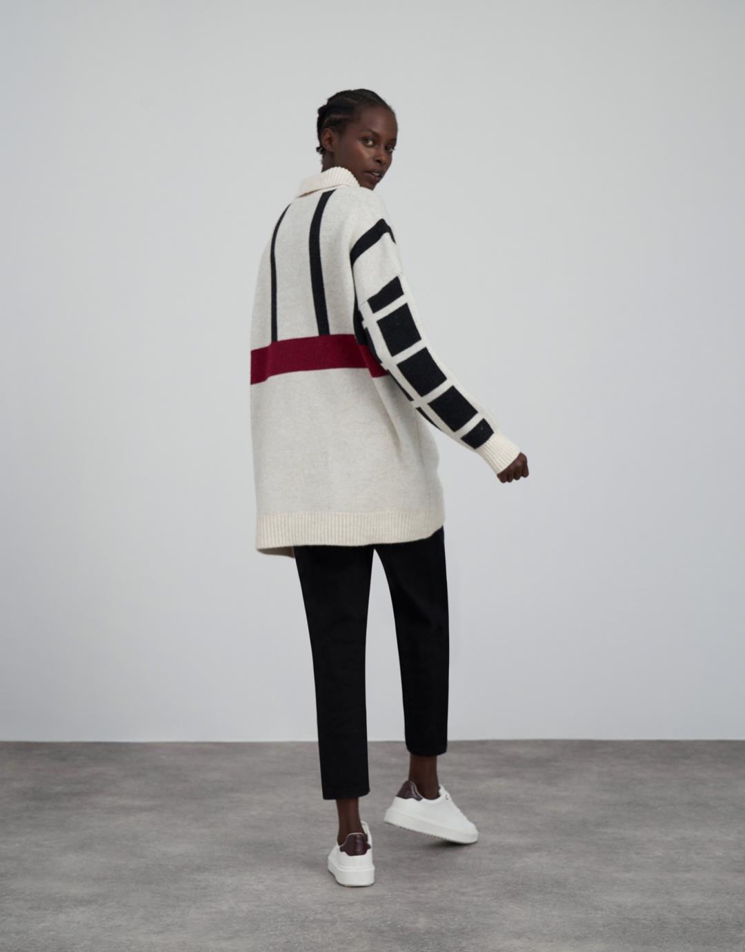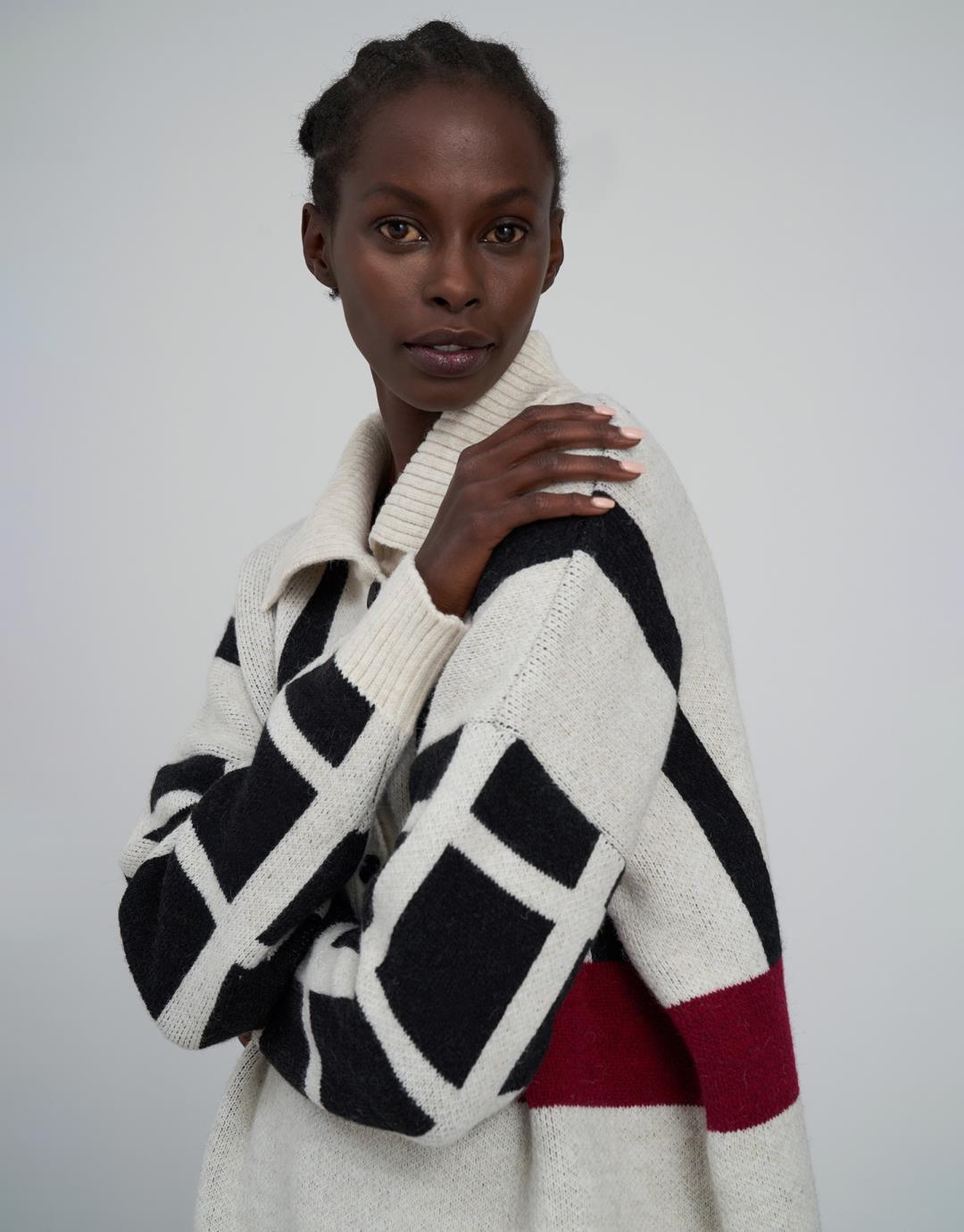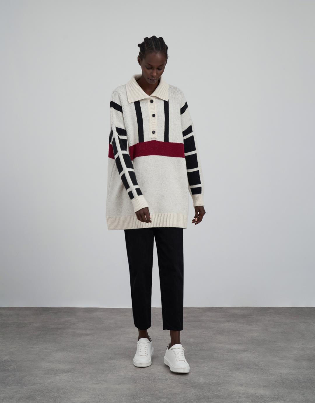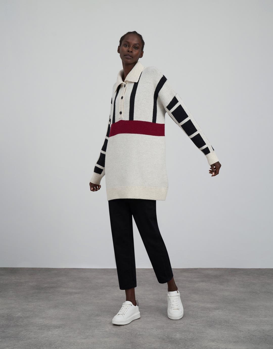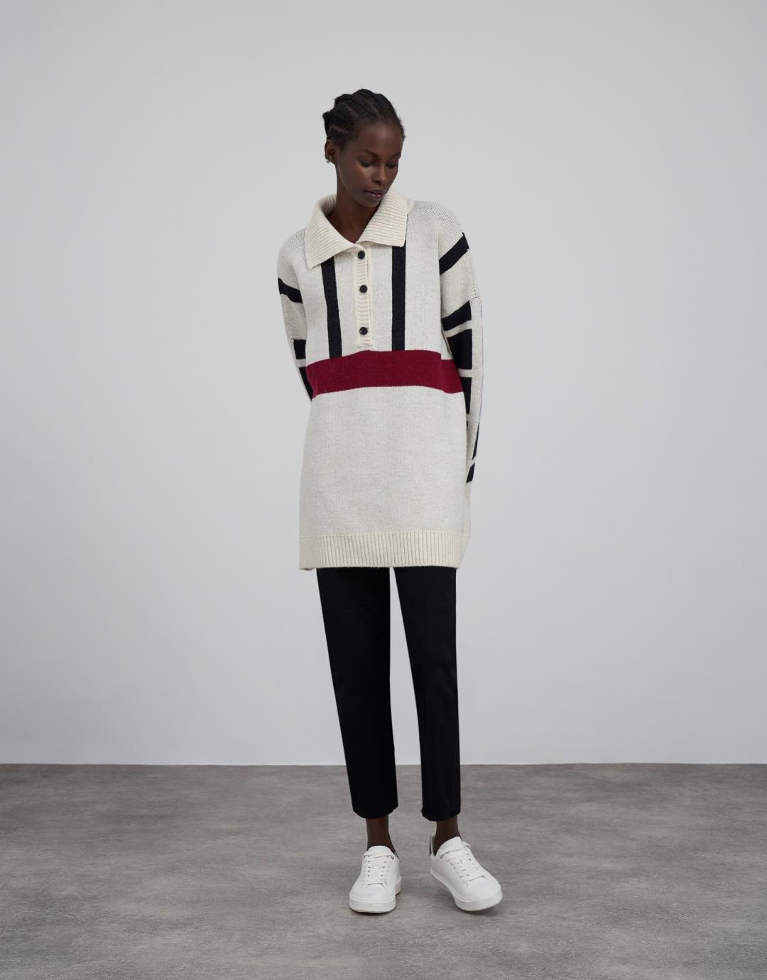 Fabric Content: 85% acrylic 6% polyamide 9% elite Fabric Info: Knitted Arm Detail Long Product Details: Polo collar Mould Information: Loose Model Size : 36 Model Height : 1.78 The product on the Model is size 1. Usage and Washing Instructions: Recommended Dry cleaning.
