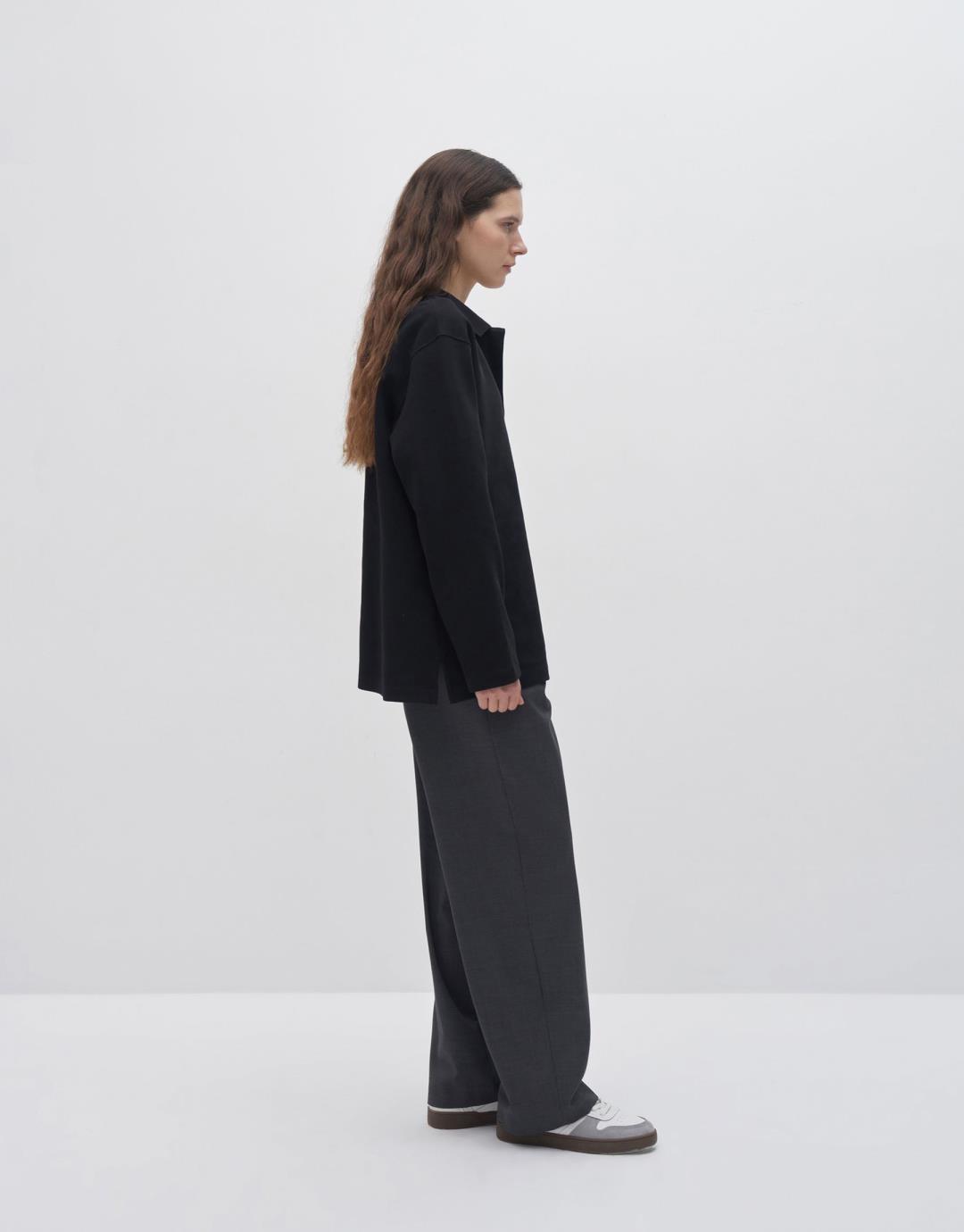 Fabric Content: 85%COT 15%PES Product Details:  Polo collar. Front button closure. Dropped shoulder. Side slit. Model Size: 36 Model Height: 1.78 The product on the model is size S/M. Usage and Washing Instructions: Hand wash at maximum 30ºC. Bleach bleach is not used. Roller Cleaning is Not Made. Wash inside out. Tetrachlorethylene Dry Cleaning. Dryer is not used. It is a sensitive product. Do not use with metal accessories.