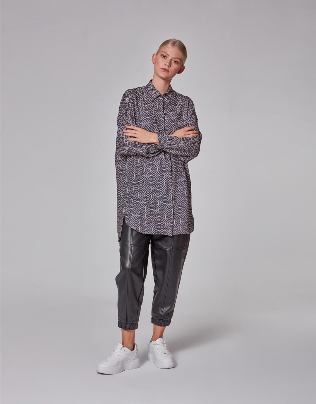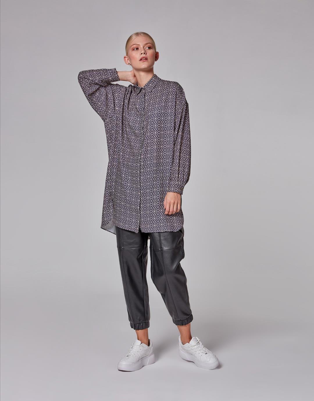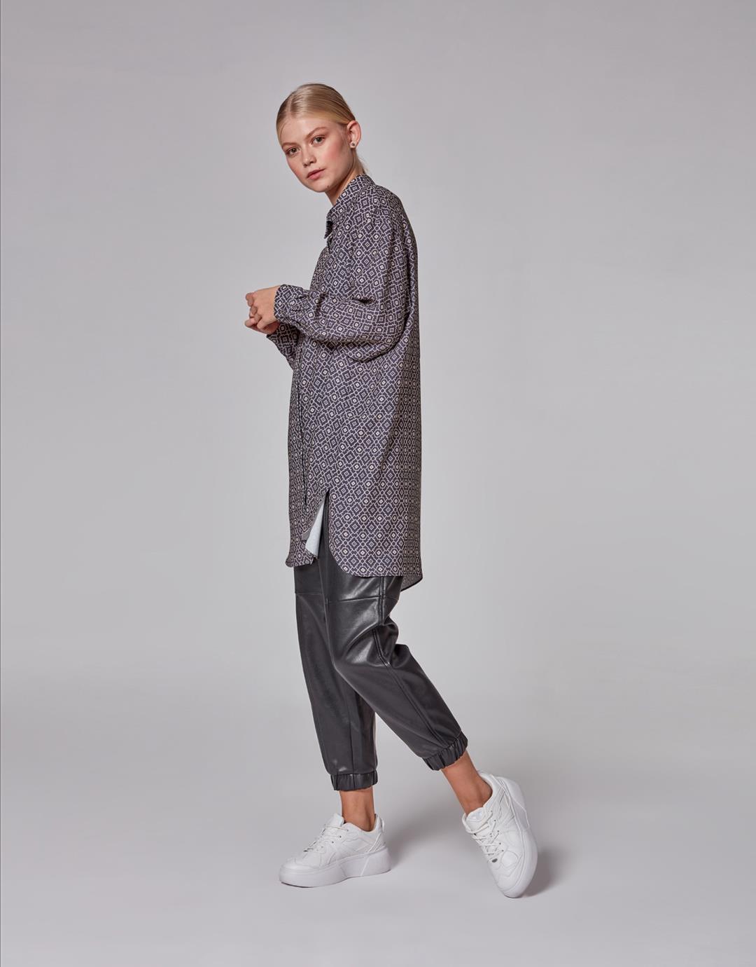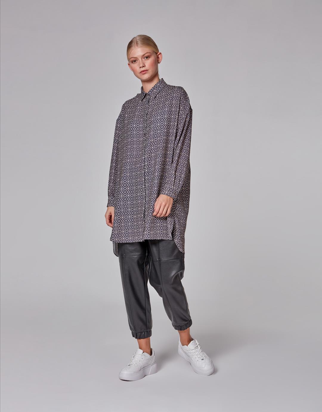 Home2020 Fall / WinterPrint Eva Patterned Shirt – Black – 1007 Print Eva Patterned Shirt – Black – 1007 Category: 2020 Fall / Winter Product ID: 23107 Description Description Sample Size : 36 Fabric Information : 100% Pes Usage and Washing Instructions: Recommended Dry clean.
