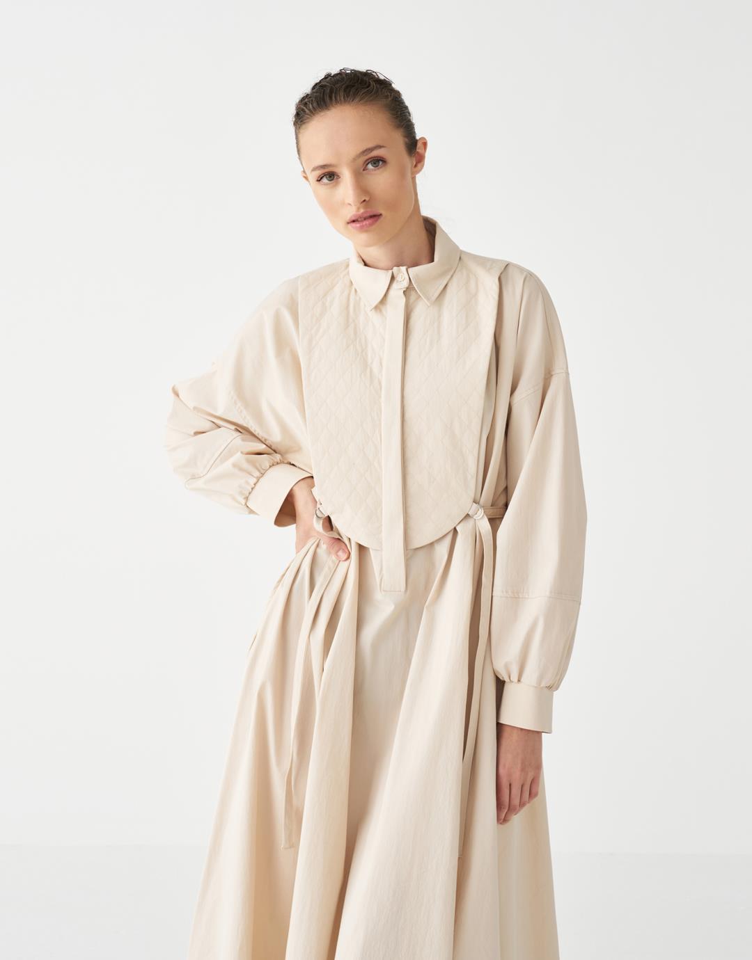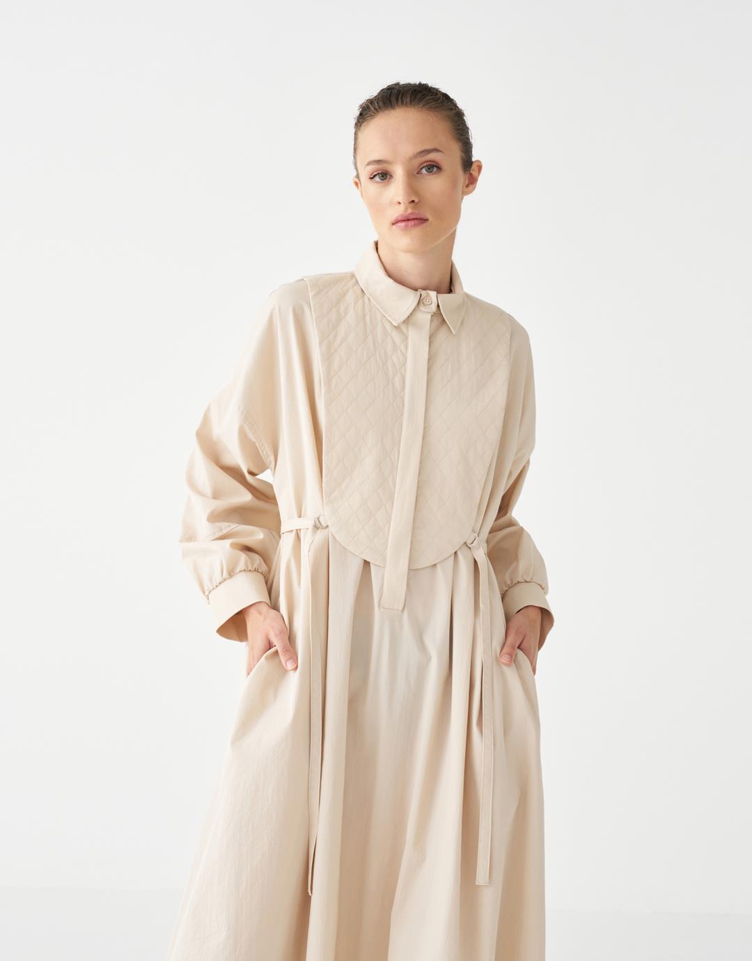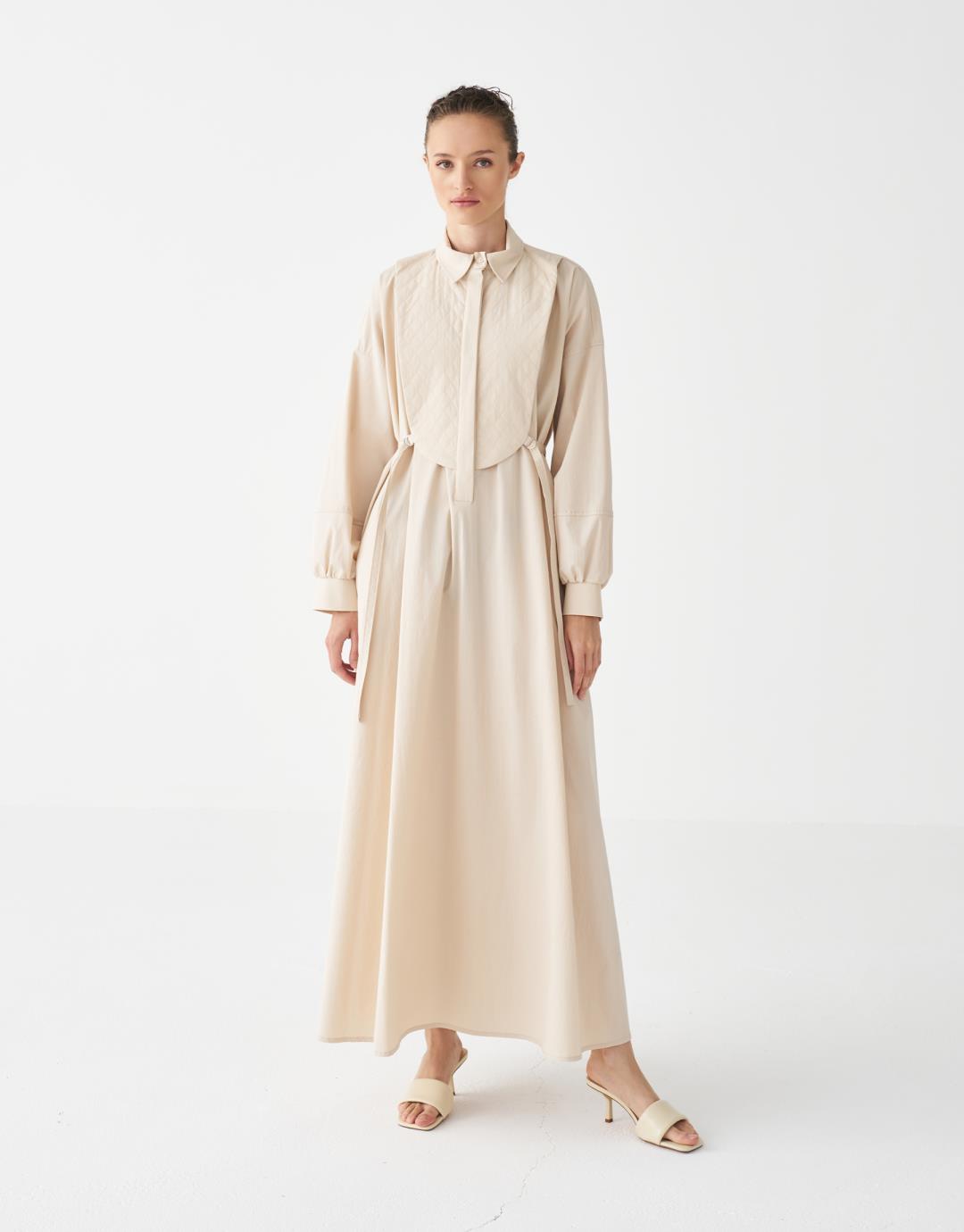 Quilted Detailed Dress – Beige – 3813