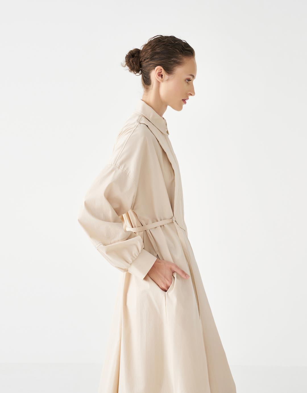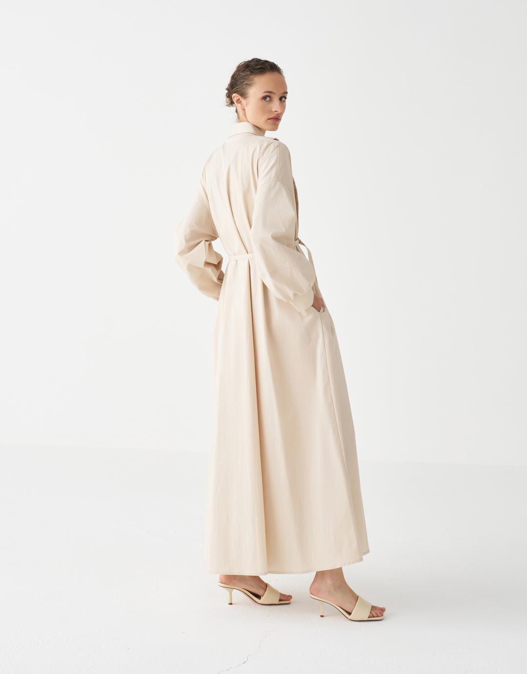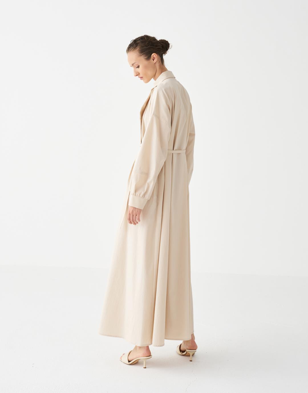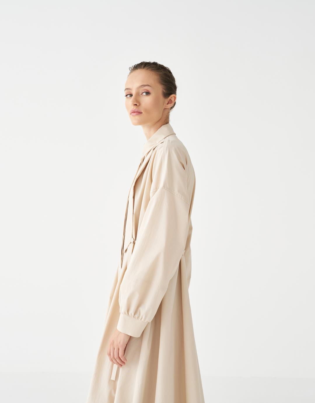 Quilted Detailed Dress – Beige – 3813