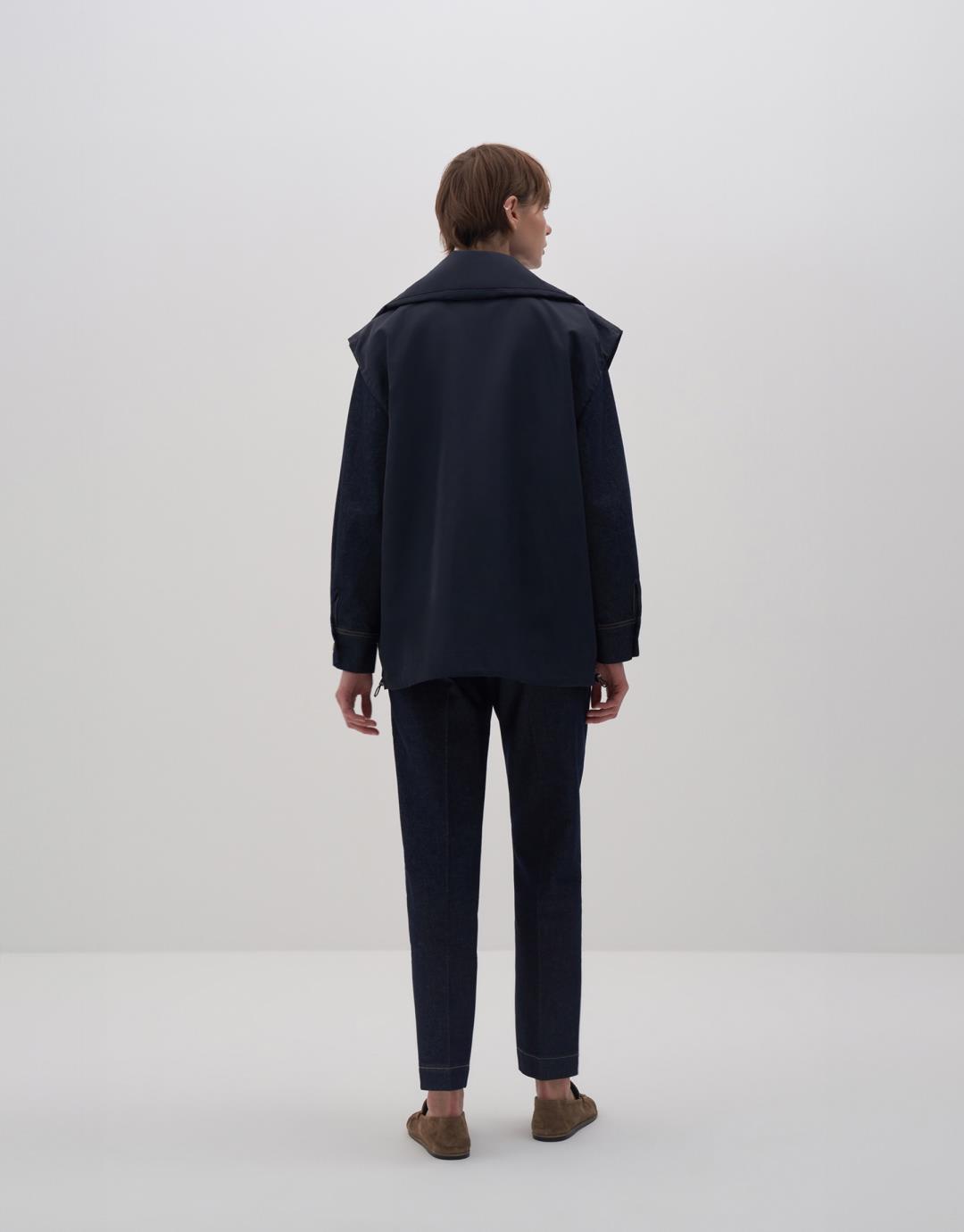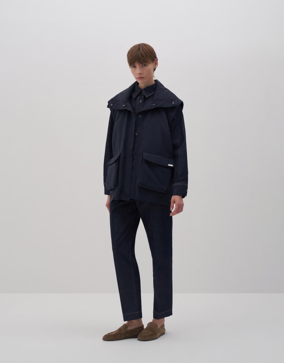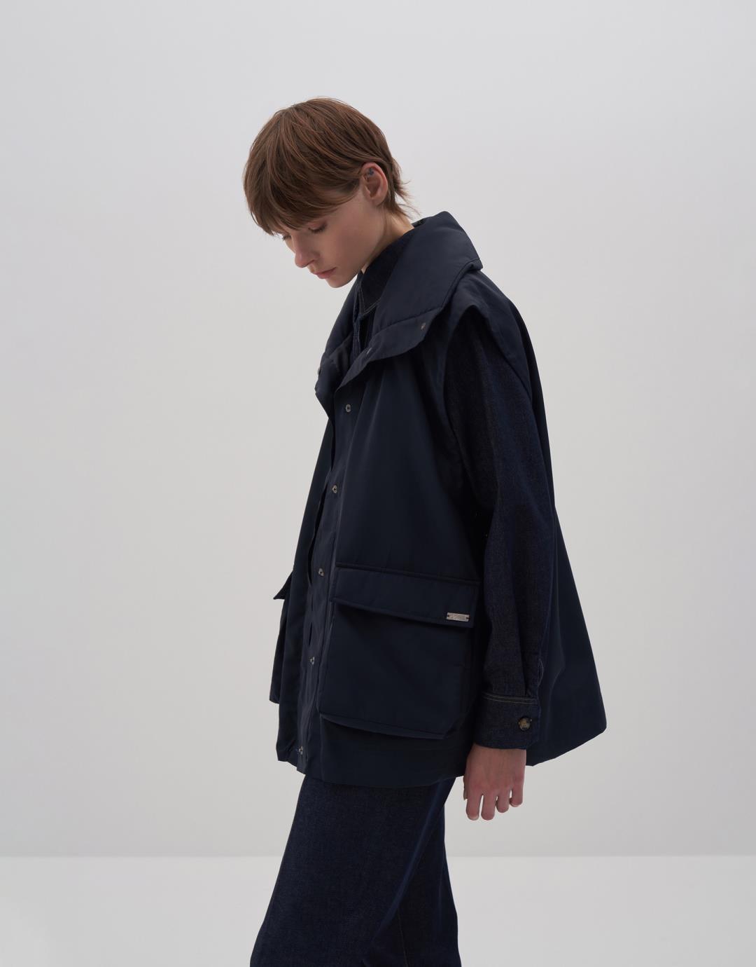 Fabric Content: 100% PES Product Details: Stand collar. Snap closure on the front. Two side pockets with bellows. Adjustable with elastic cord and stopper. Model Size: 36 Model Height: 1.78 The product on the model is S/M size. Usage and Washing Instructions: Tetrachloroethylene Dry Cleaning. No roller cleaning. No tumble drying. No bleach whitener.