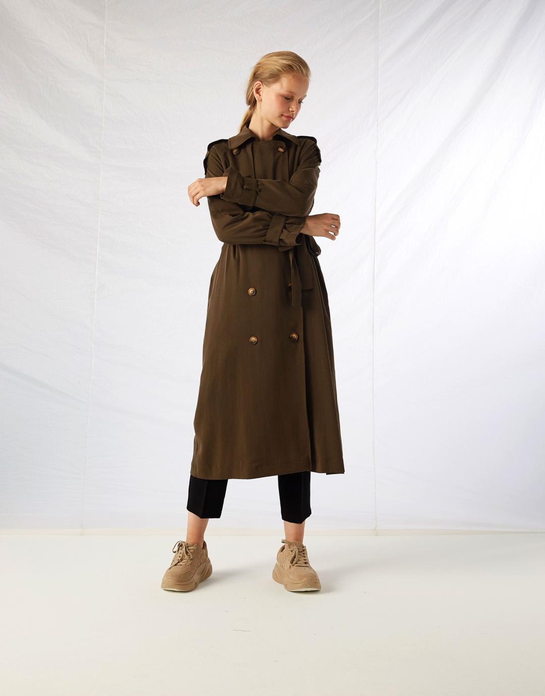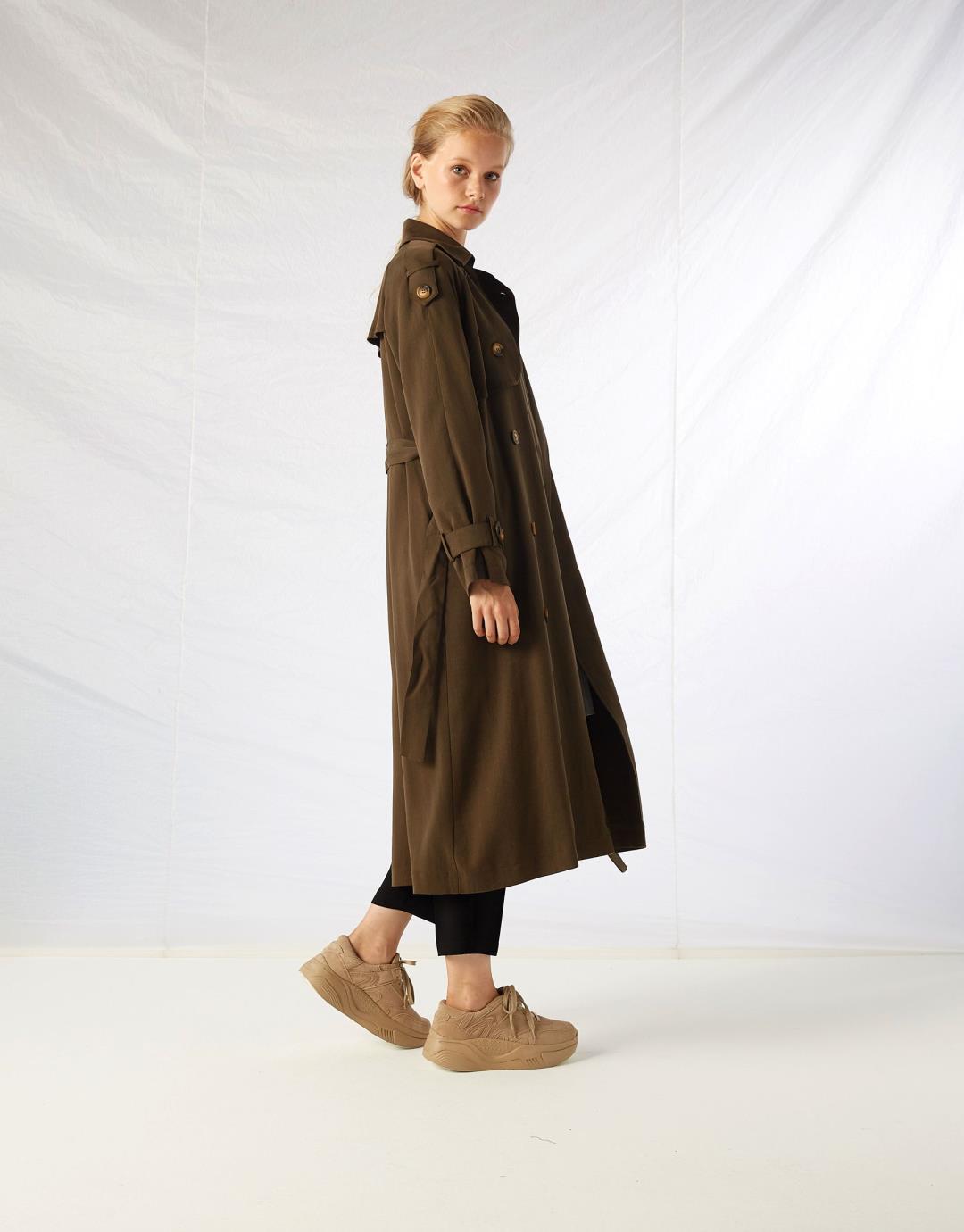 Product Length: 120cm Size on Model: 1 Model Sizes: Khaki-Navy Blue Height: 1,77 Size:36 Chest:80 / Waist:58 / Hips :89 Model Dimensions: Black Height: 1,72 Size: 36 Chest:84 / Waist:61 / Hips:92