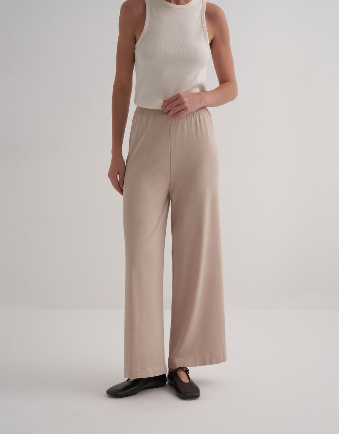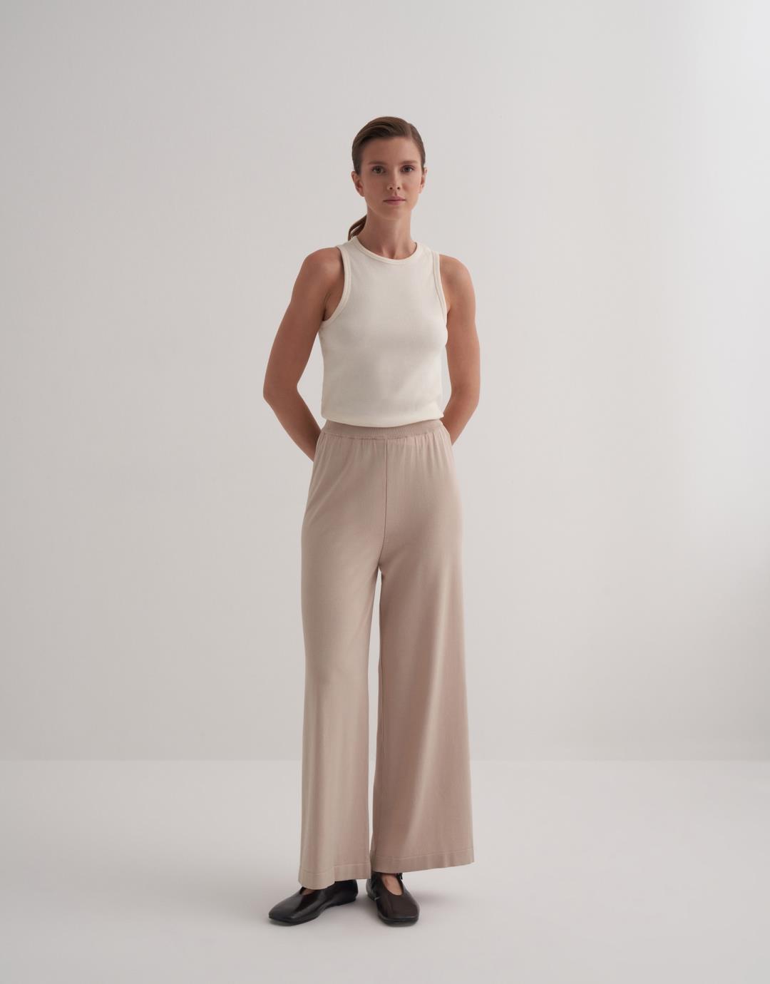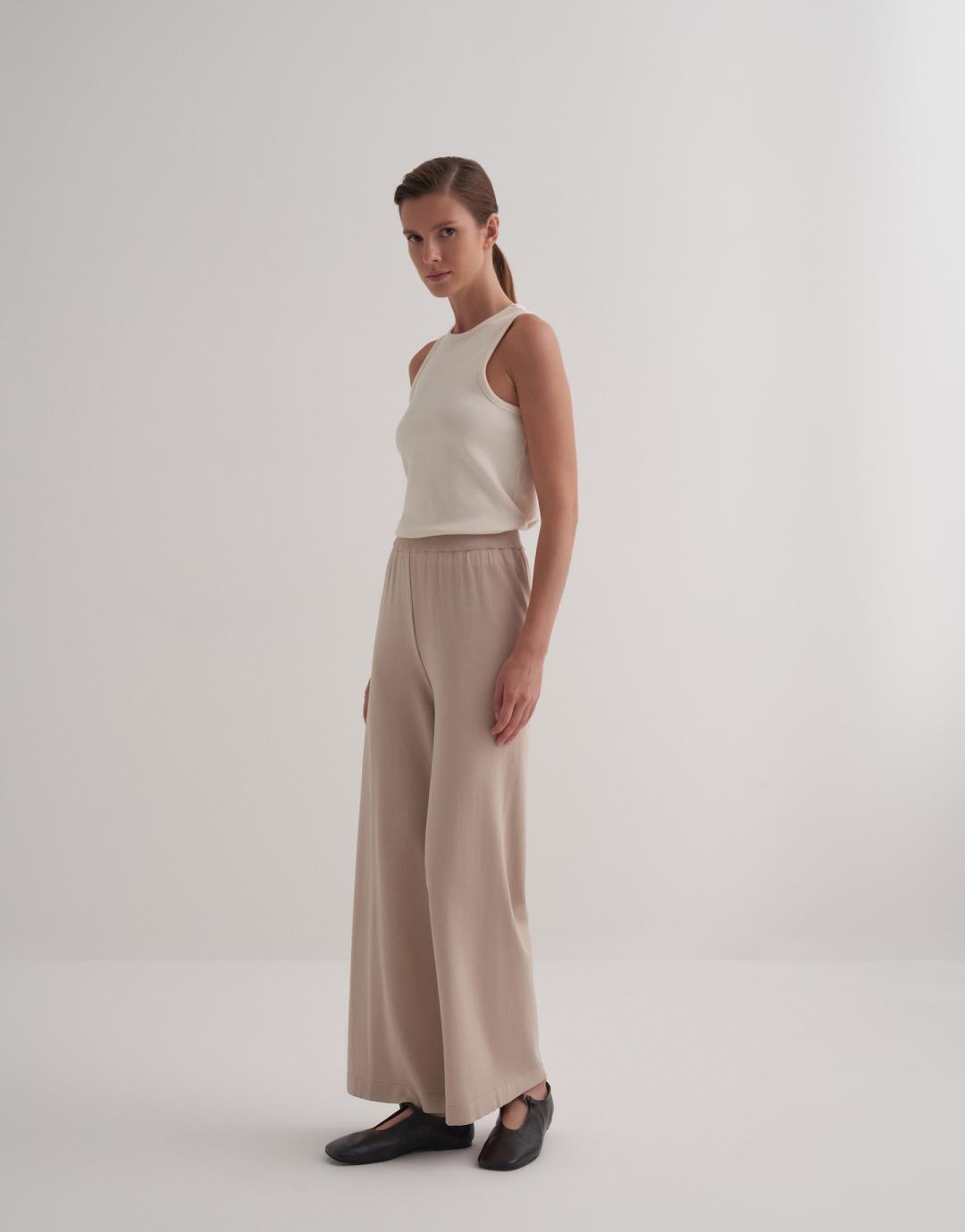 Rayon Mercerized Loose Trousers – Beige – 38001